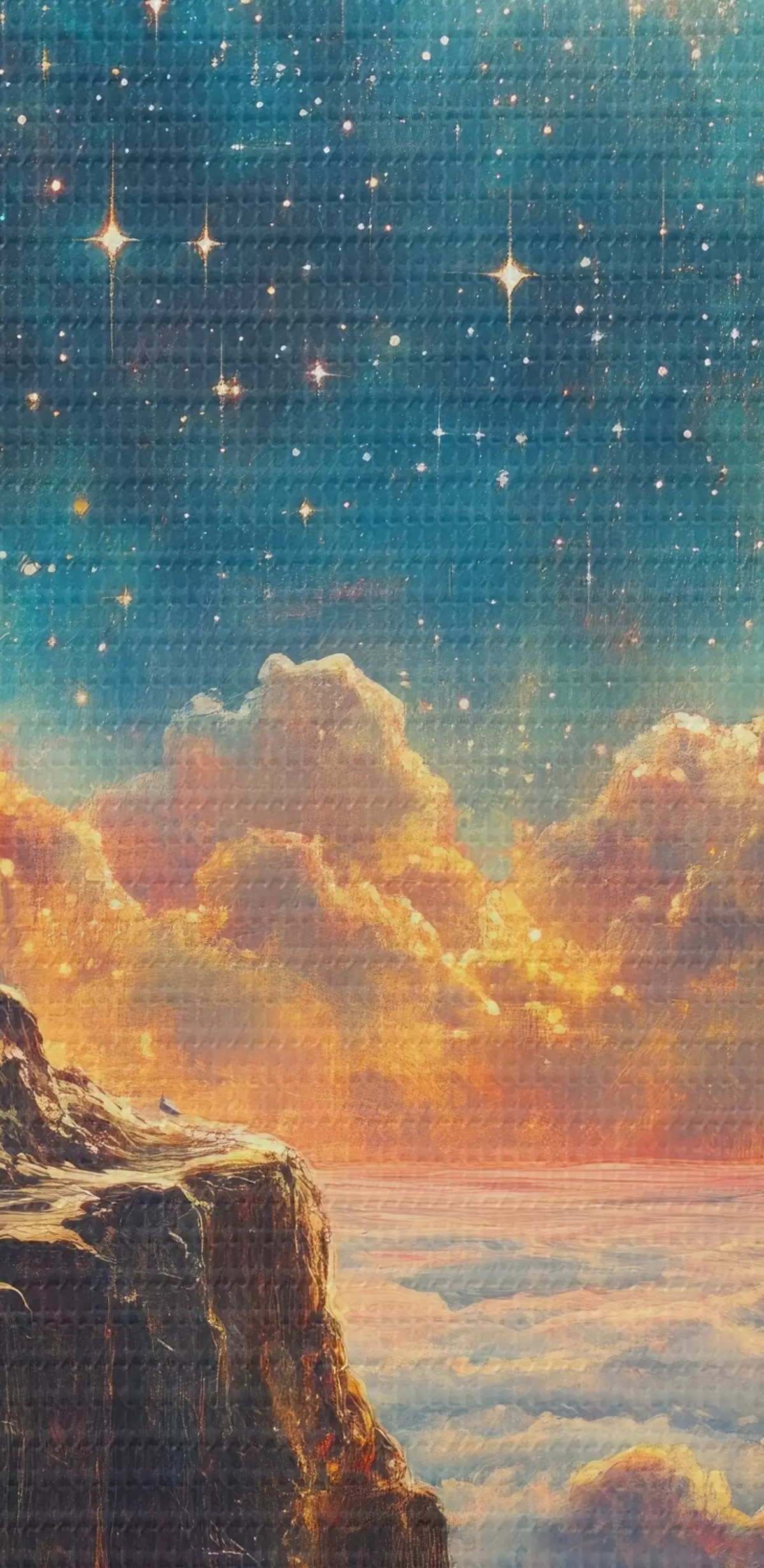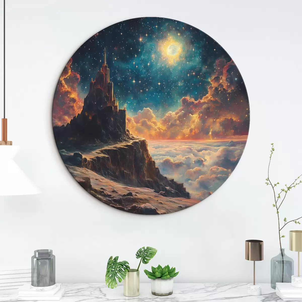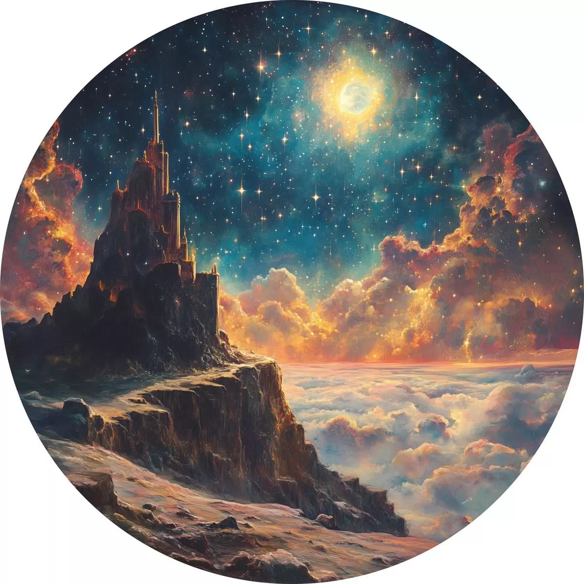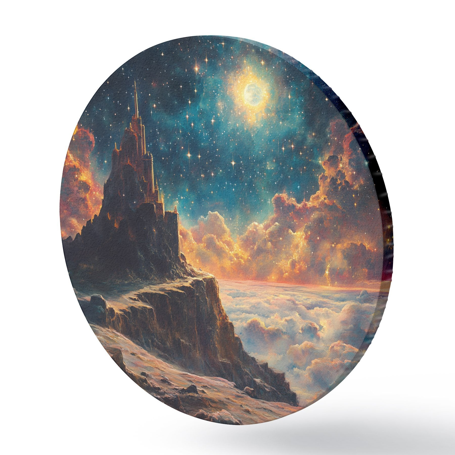 Runde Gemälde Berge und nächtlicher Sternenhimmel r42500
