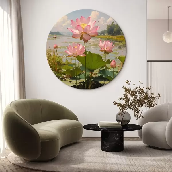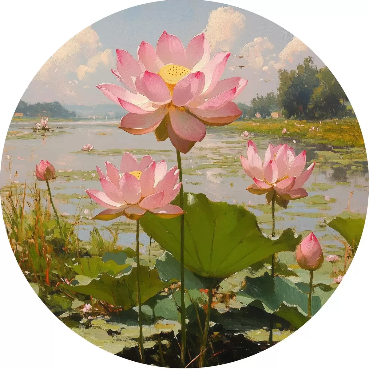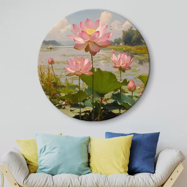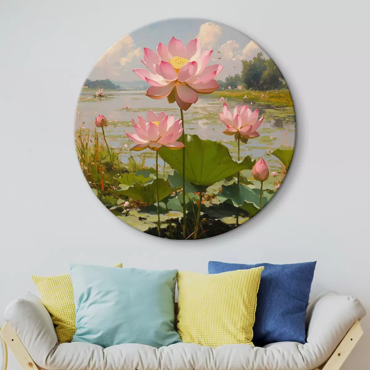 Runde Gemälde Lotosblumen auf dem Wasser r42502