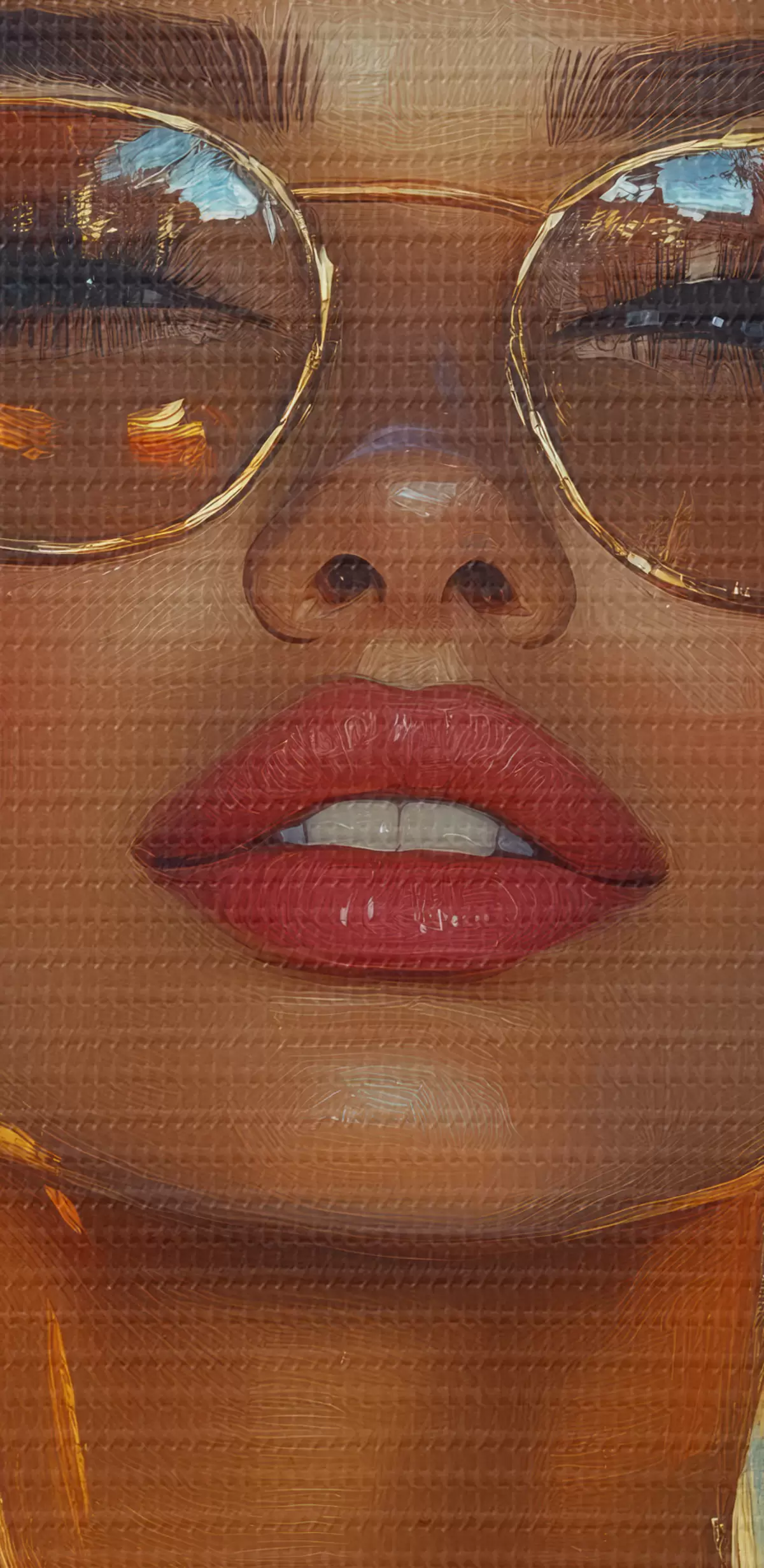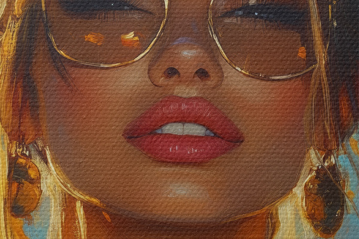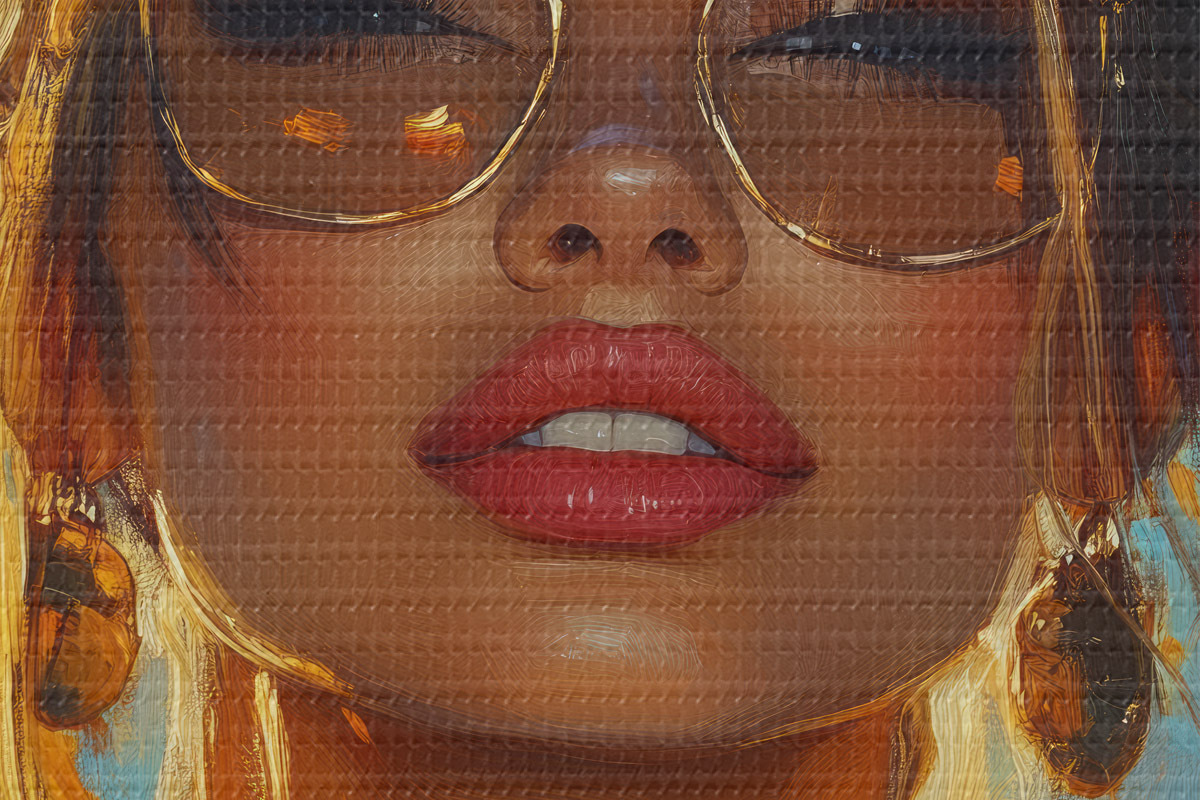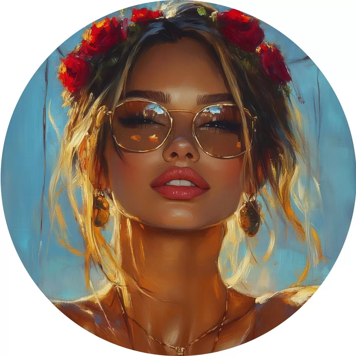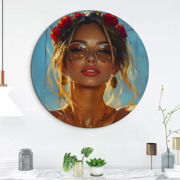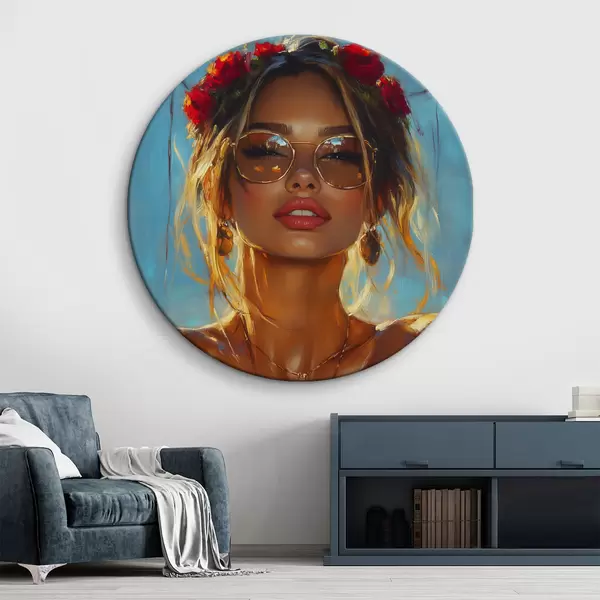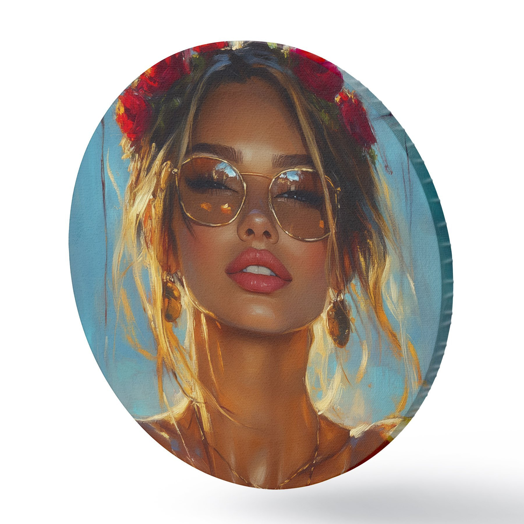 Runde Gemälde Porträt eines Mädchens mit Sonnenbrille r42503