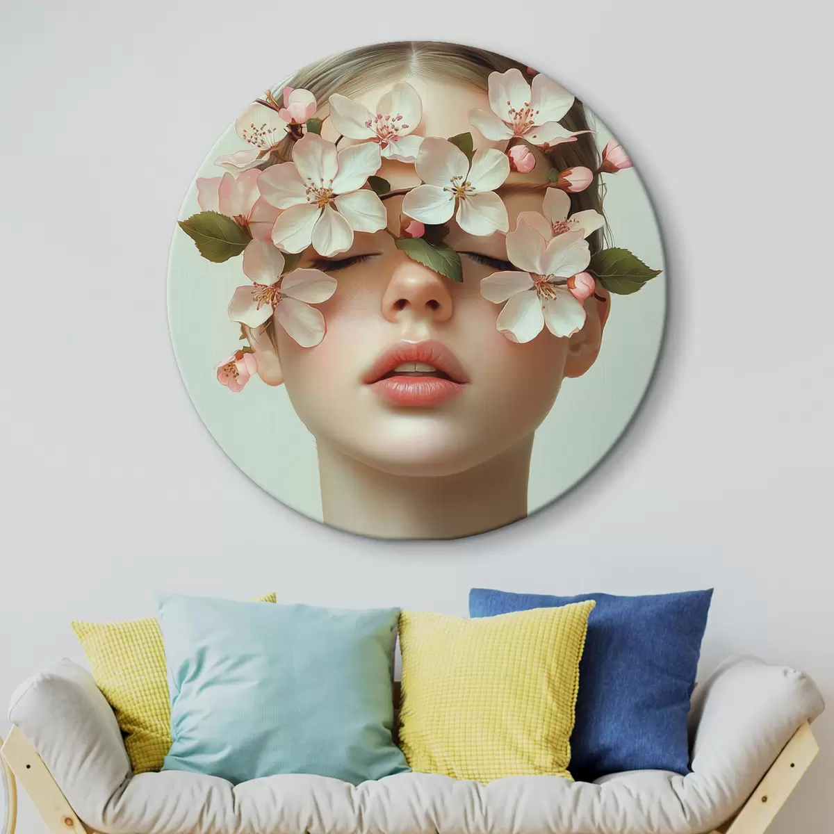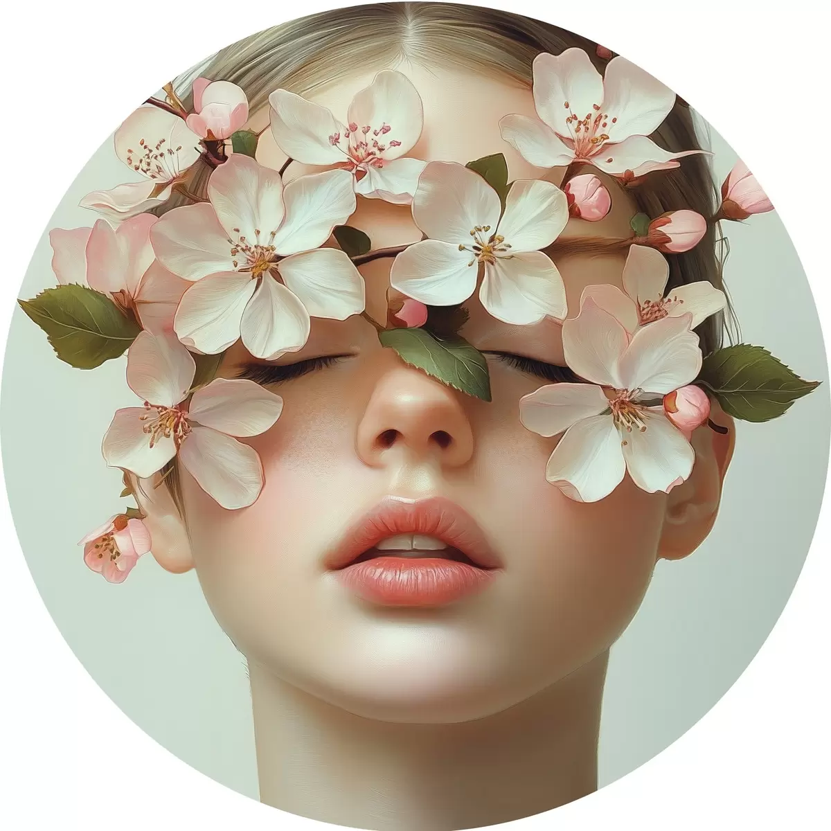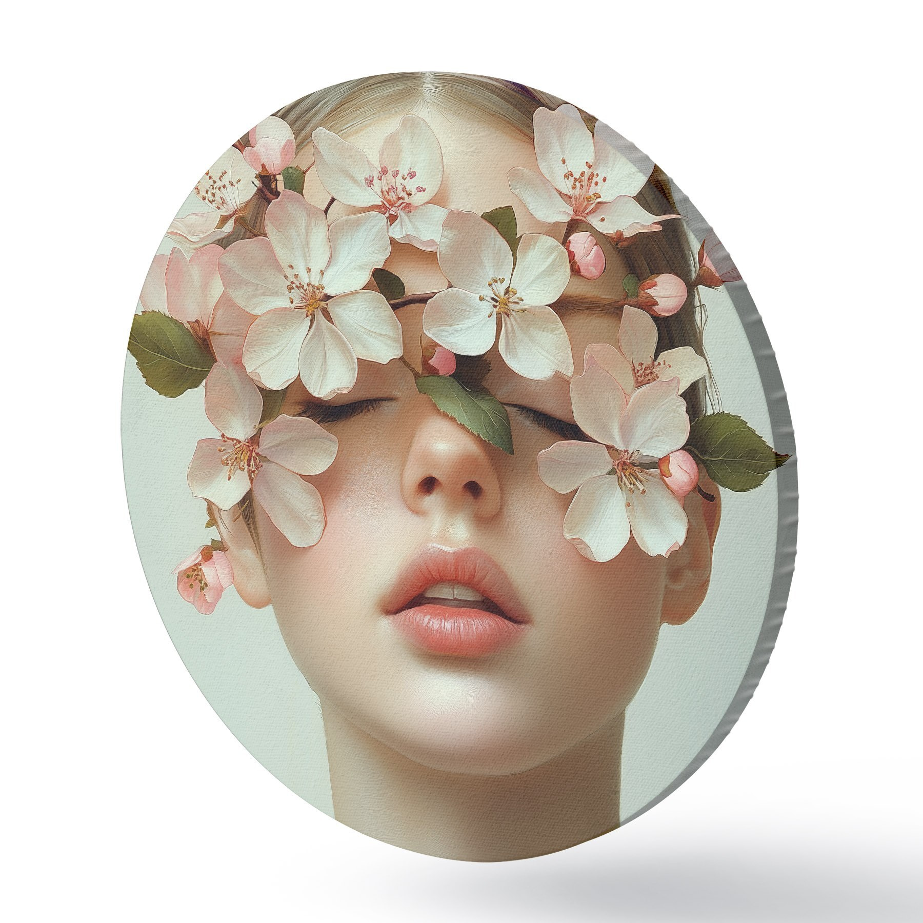 Runde Gemälde Porträt eines Mädchens mit Blumen im Gesicht r42506