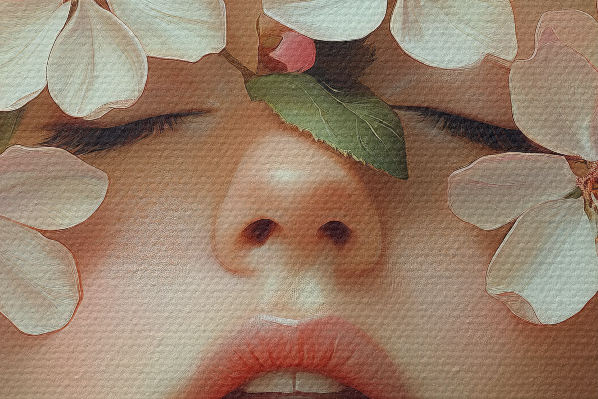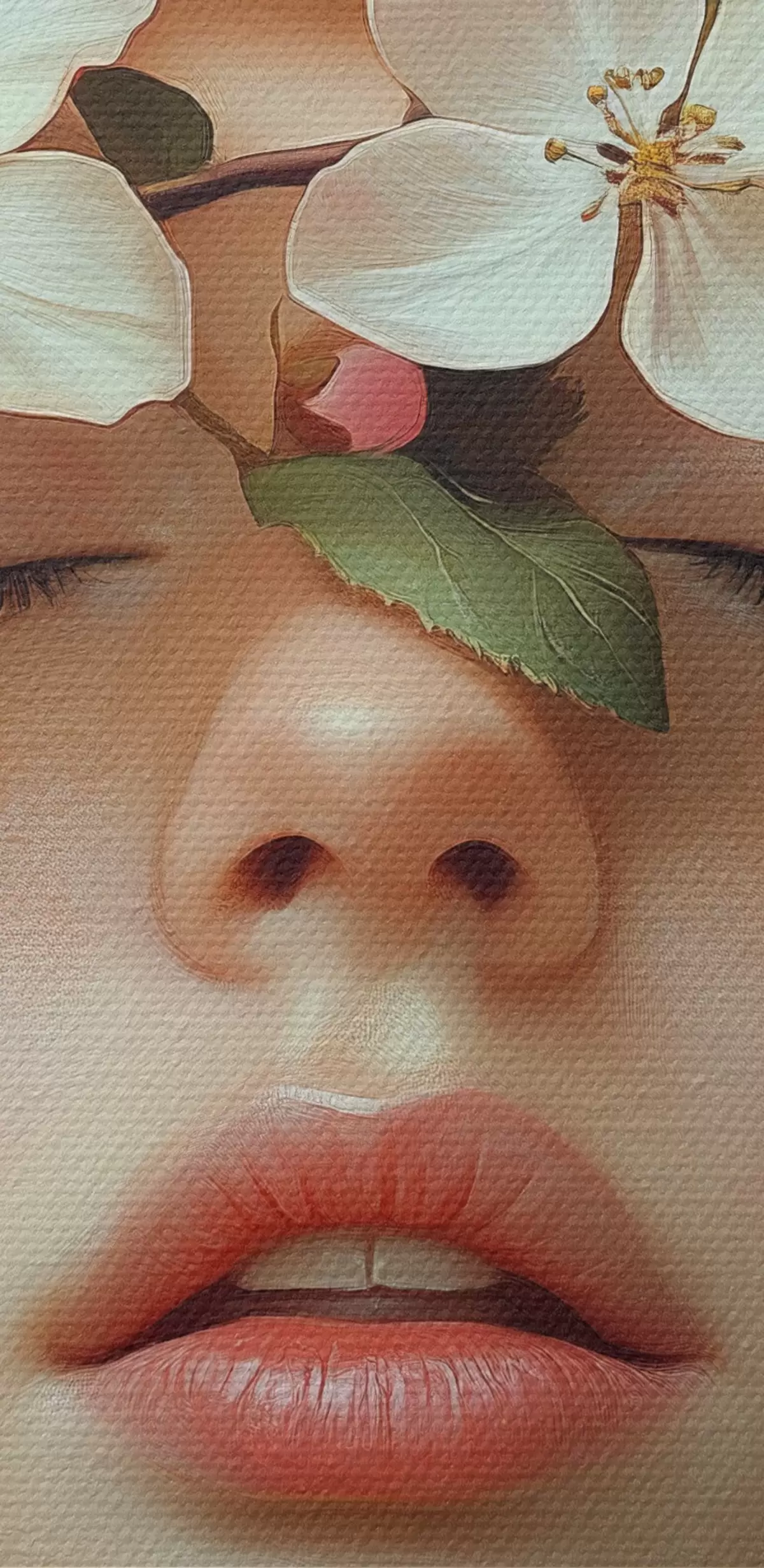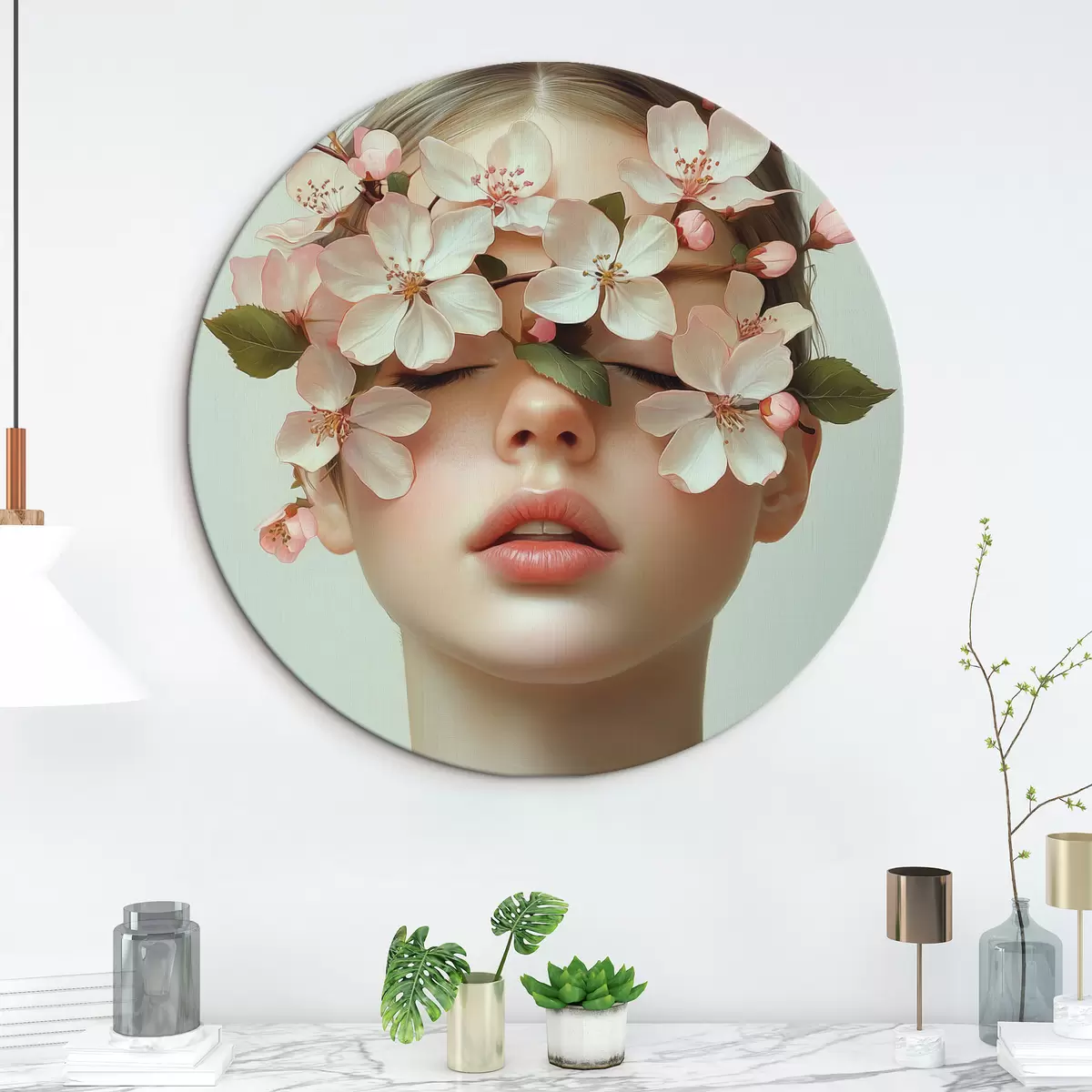 Runde Gemälde Porträt eines Mädchens mit Blumen im Gesicht r42506