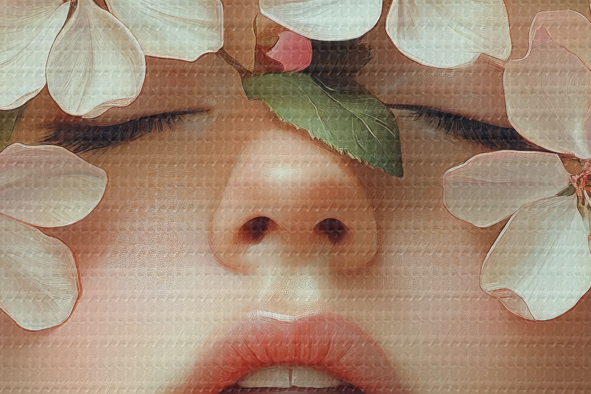 Bild Porträt eines Mädchens mit Blumen im Gesicht Nr r42506
