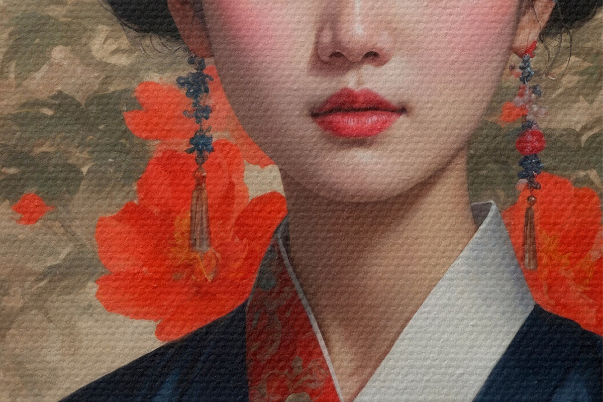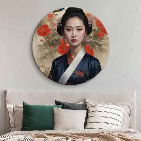 Runde Gemälde Japanisches Mädchen im Kimono r42511