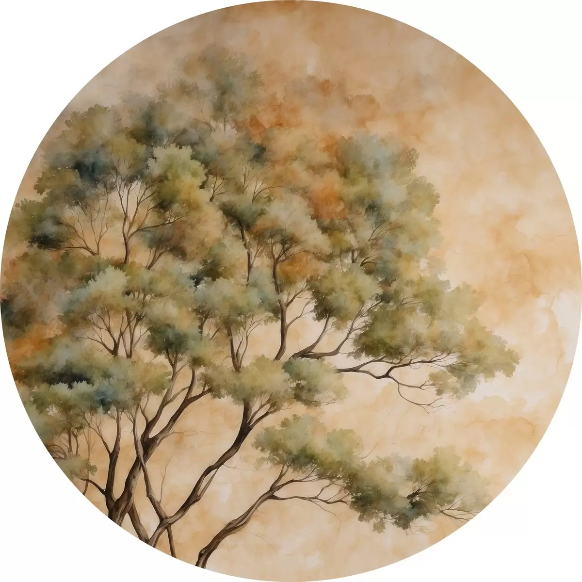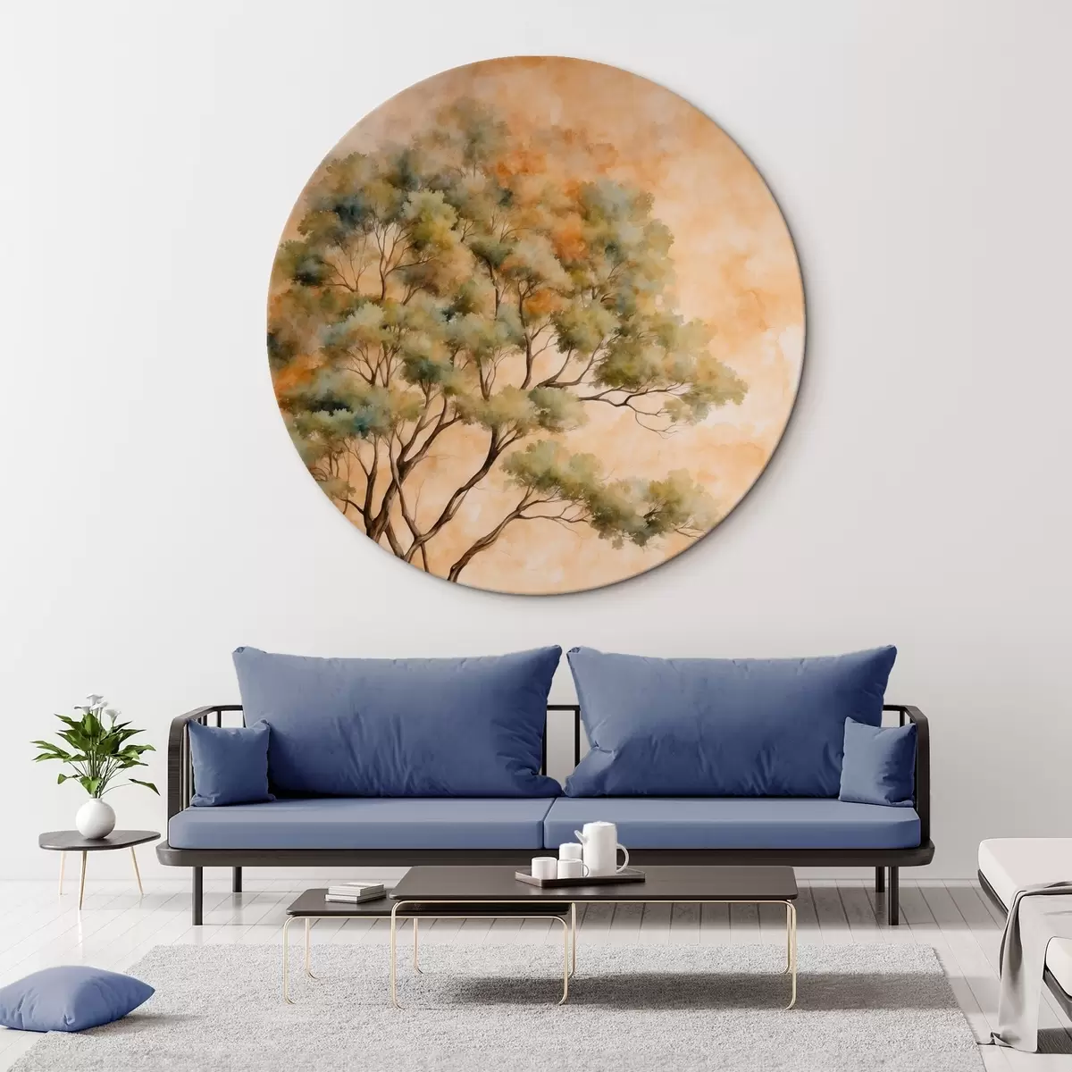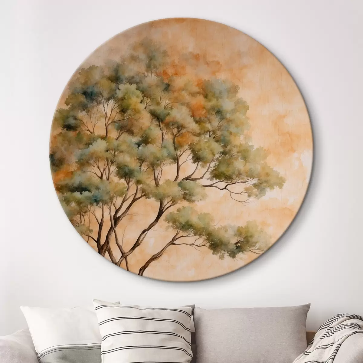 Runde Gemälde Baum auf orange und weißem Hintergrund in Aquarellmalerei Stil r42514