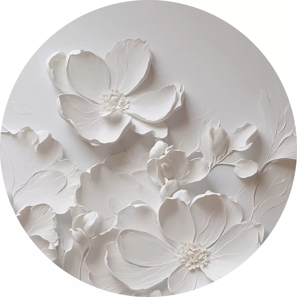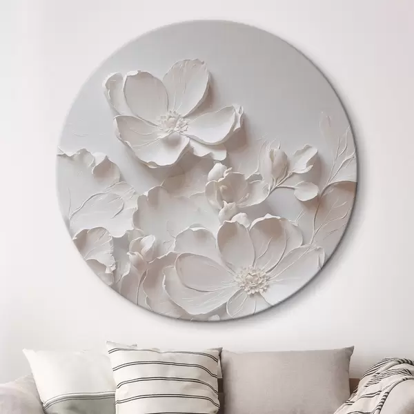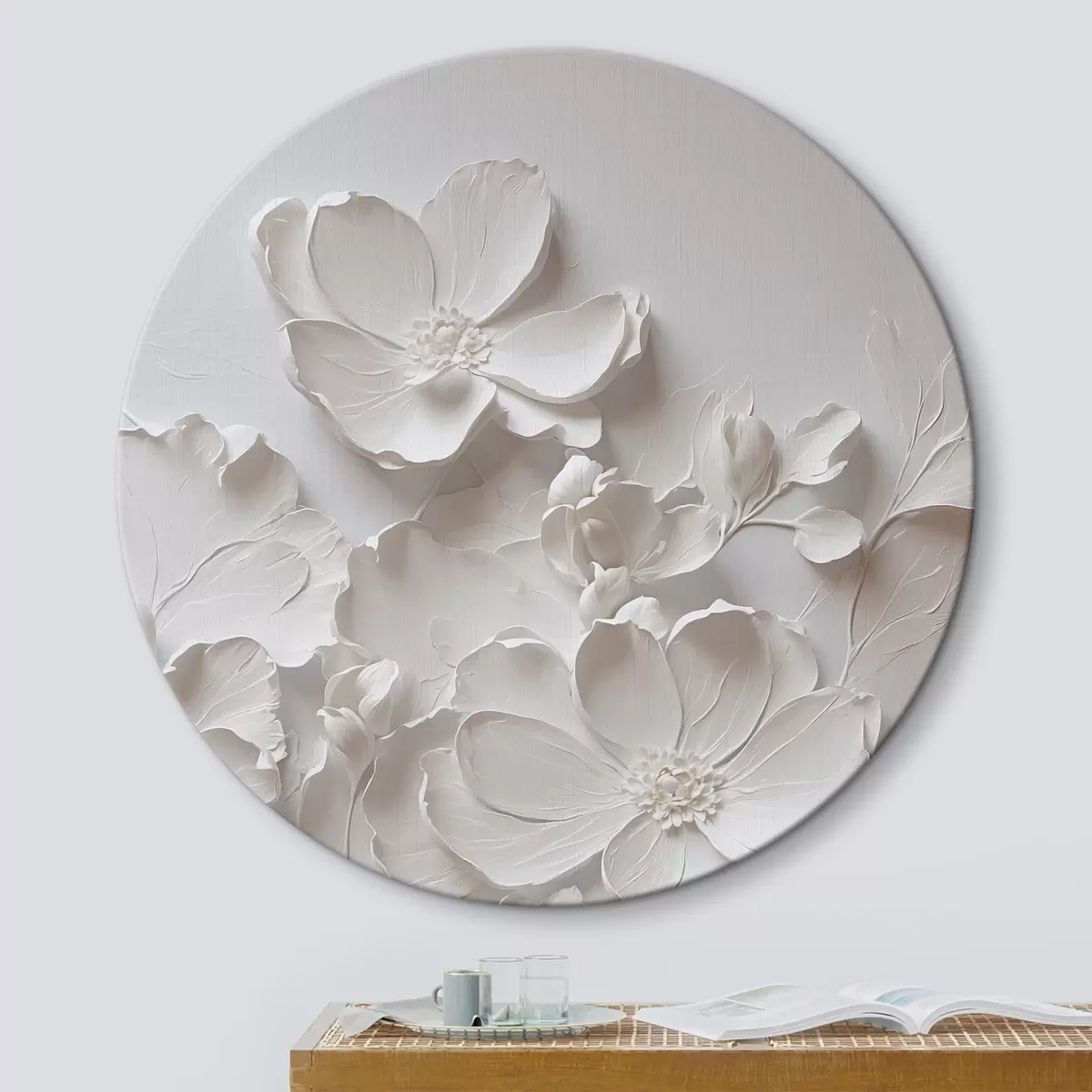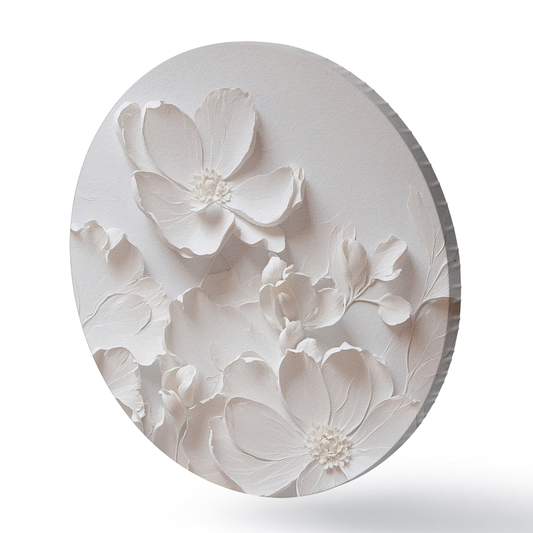 Runde Gemälde Weiße Blumen auf weißem Hintergrund im Stil der Ölmalerei r42516