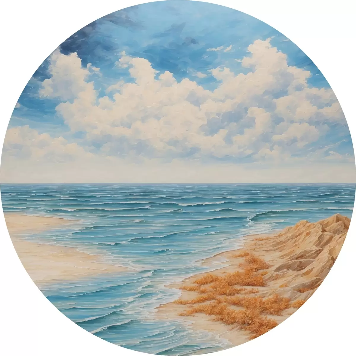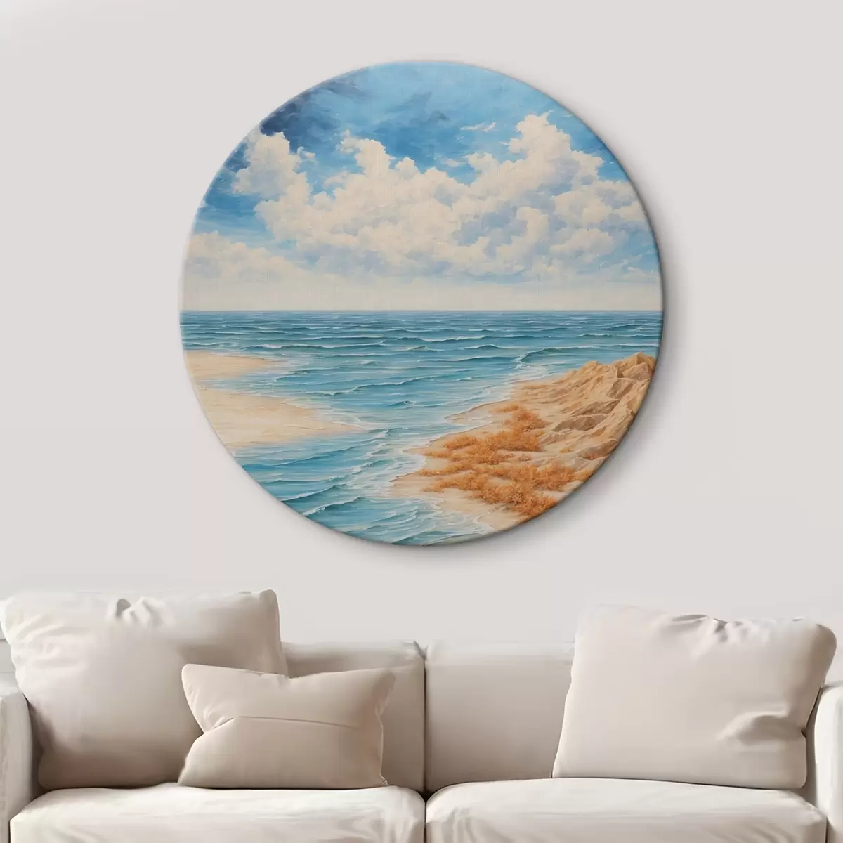 Runde Gemälde Strand und blauer Himmel in Acrylmalerei Stil r42518