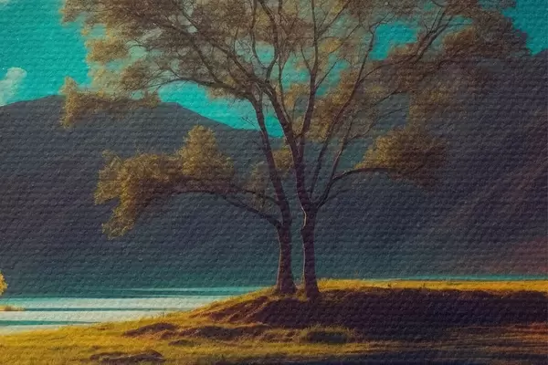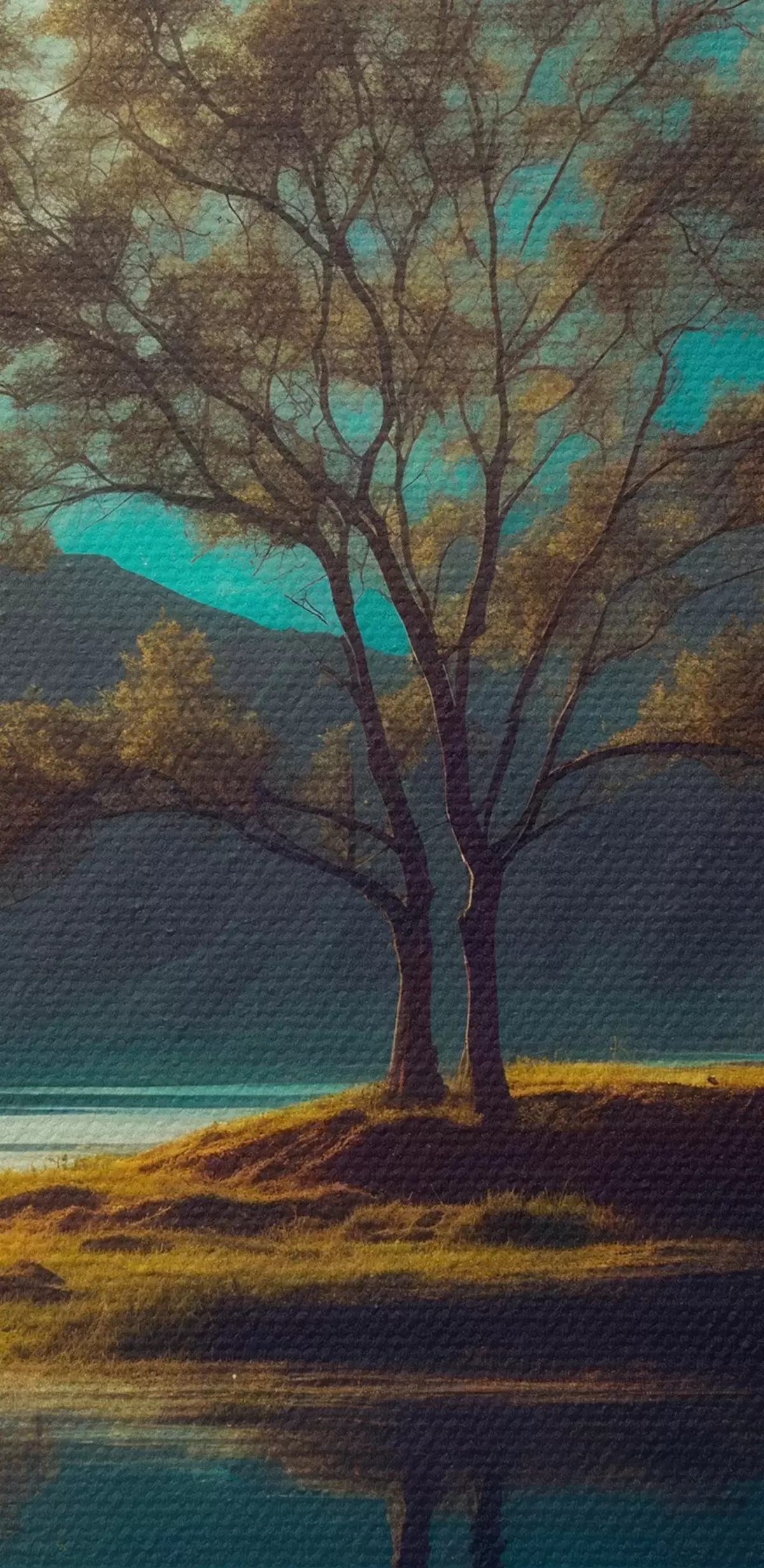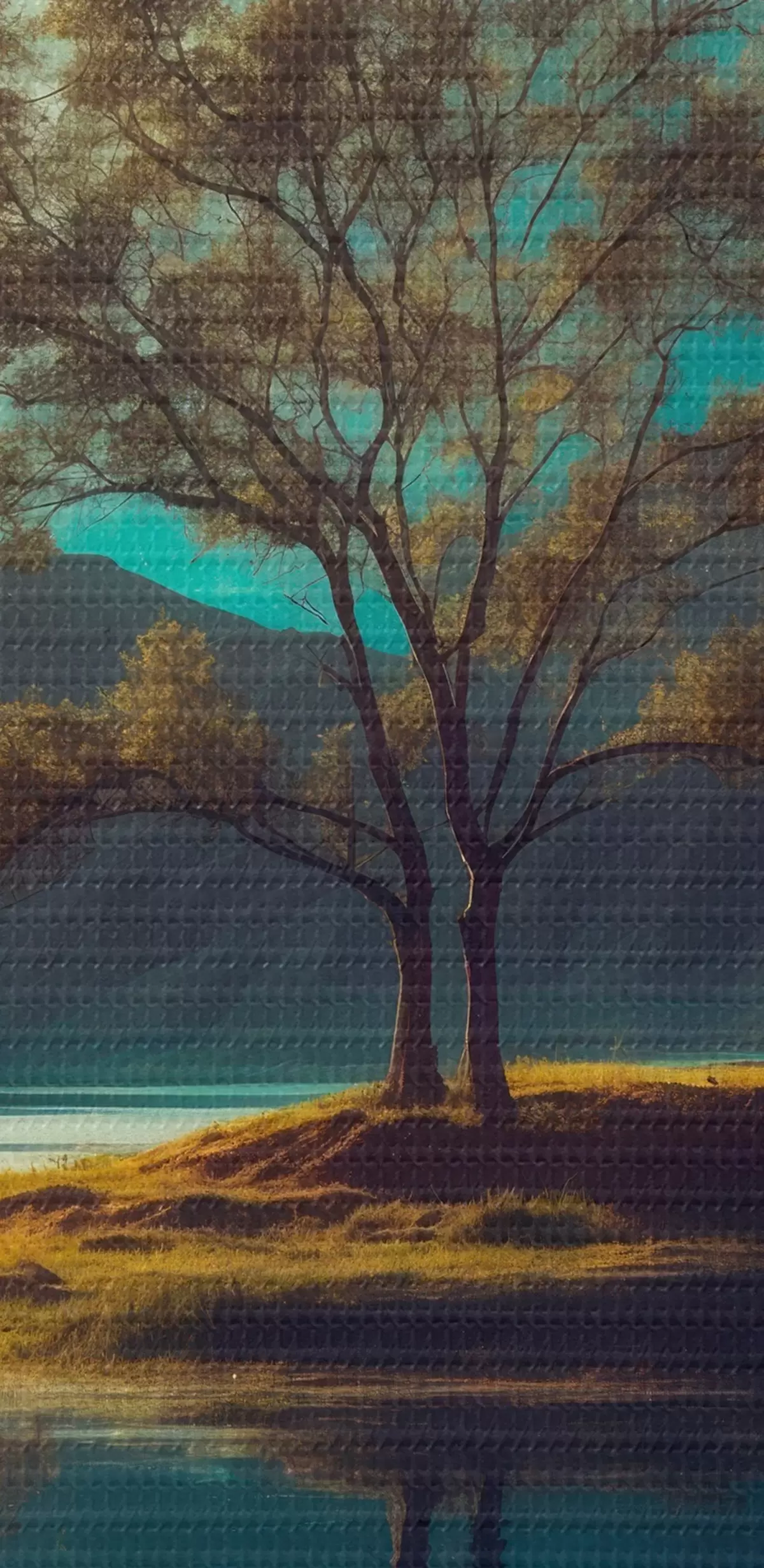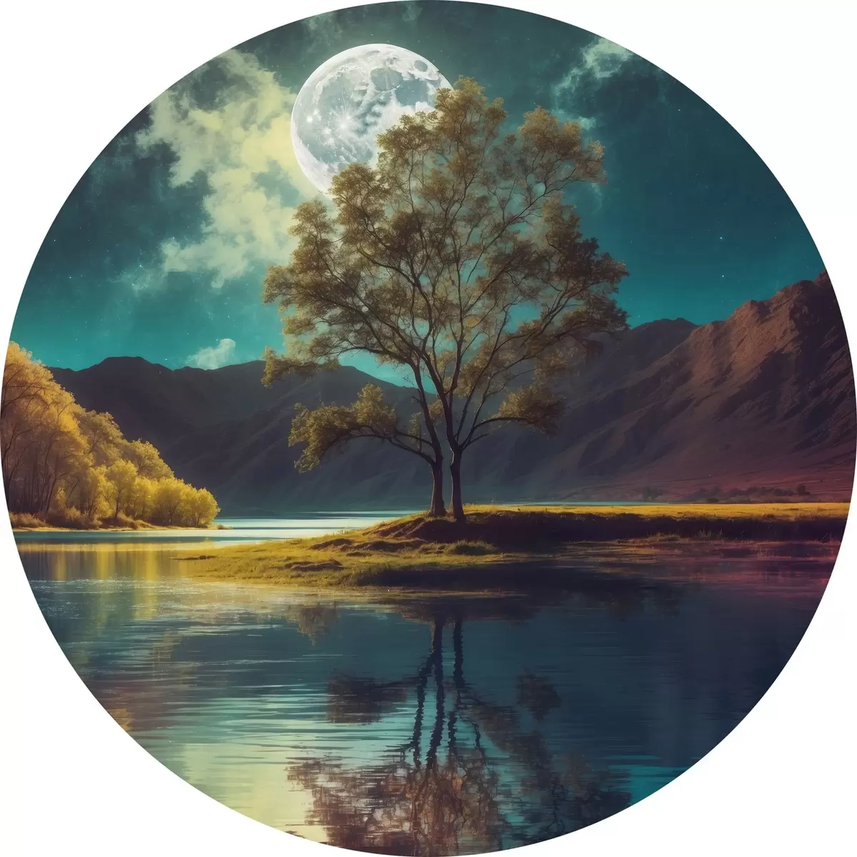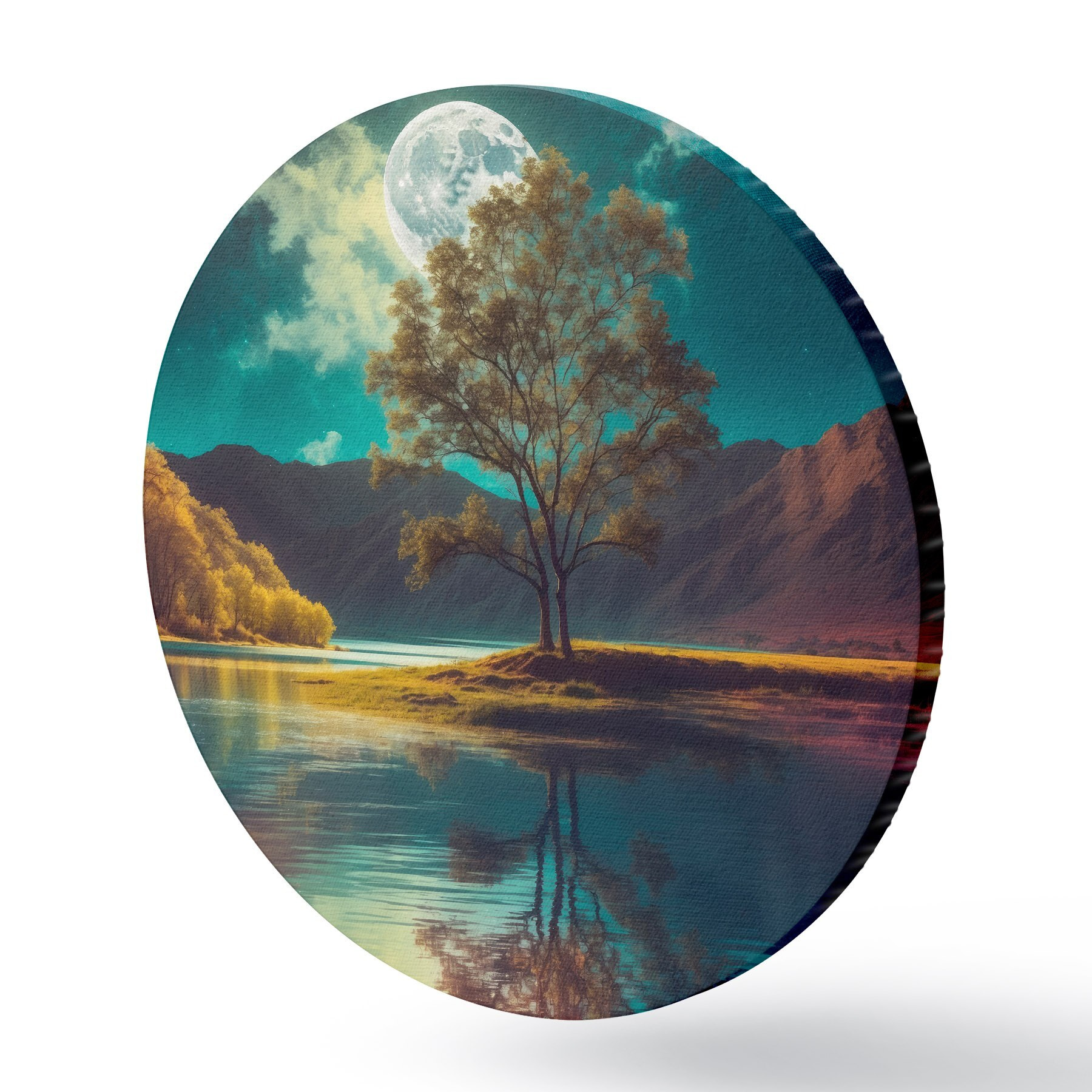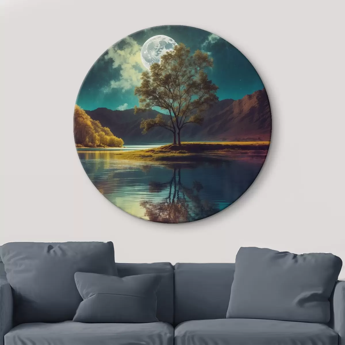 Runde Gemälde Baum in der Mitte des Sees r42520