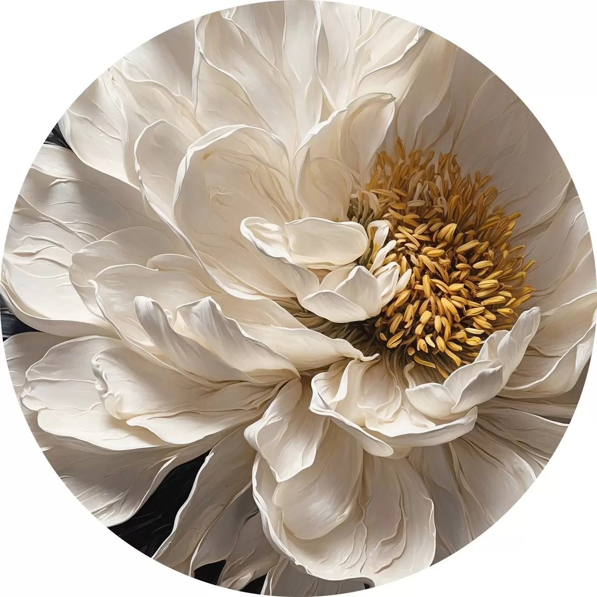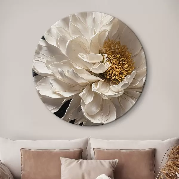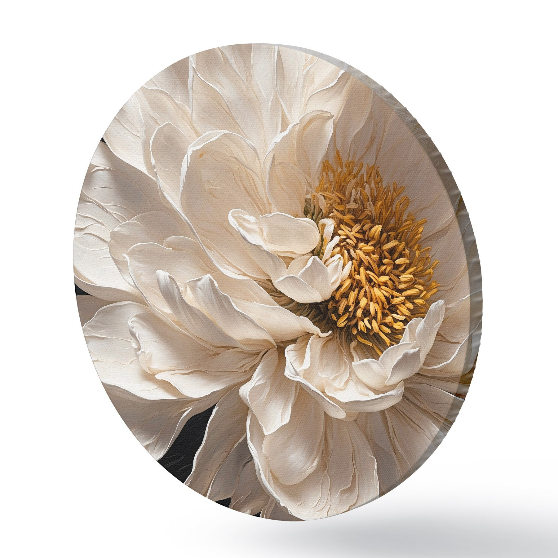 Runde Gemälde Weiße Blume auf blau-beigem Hintergrund r42523