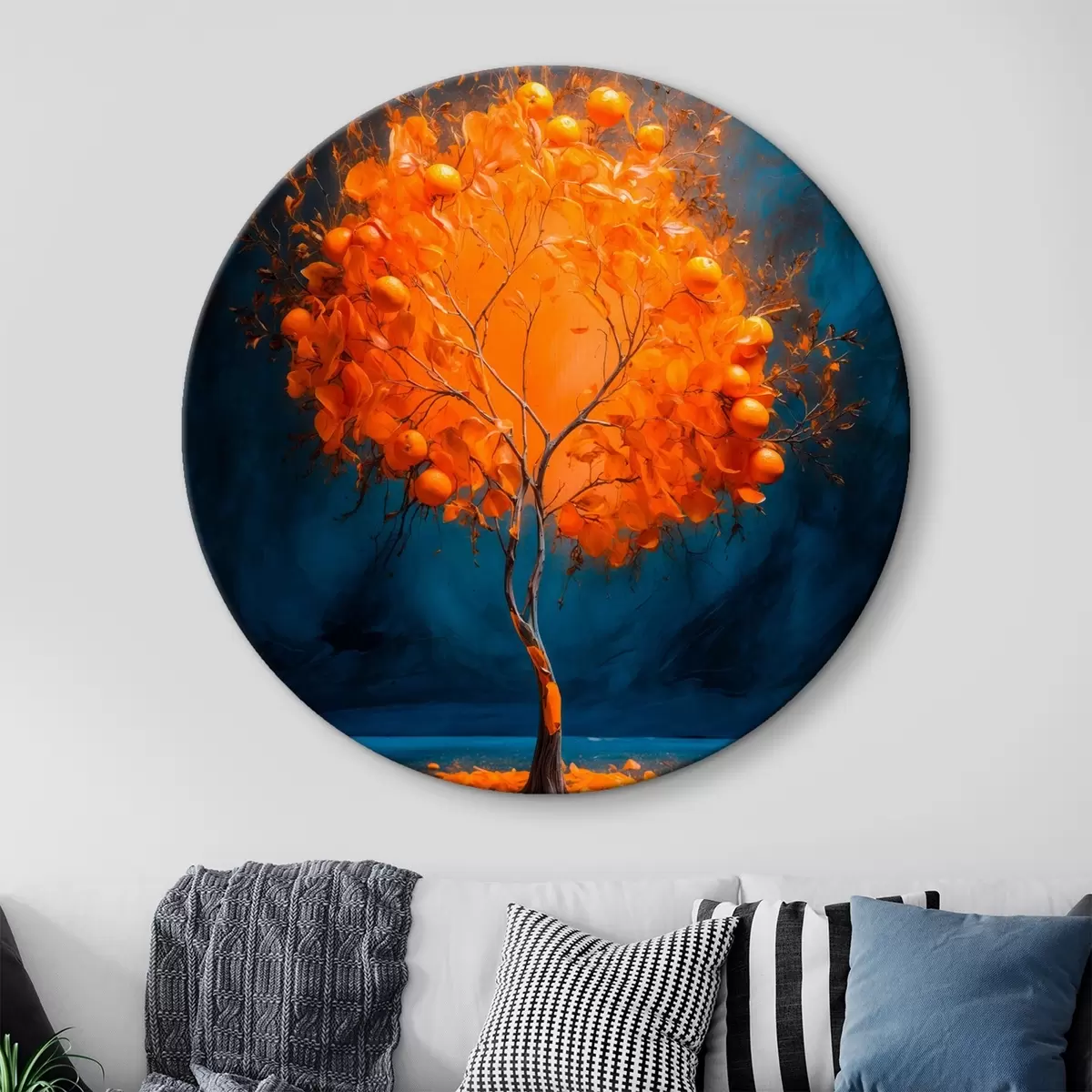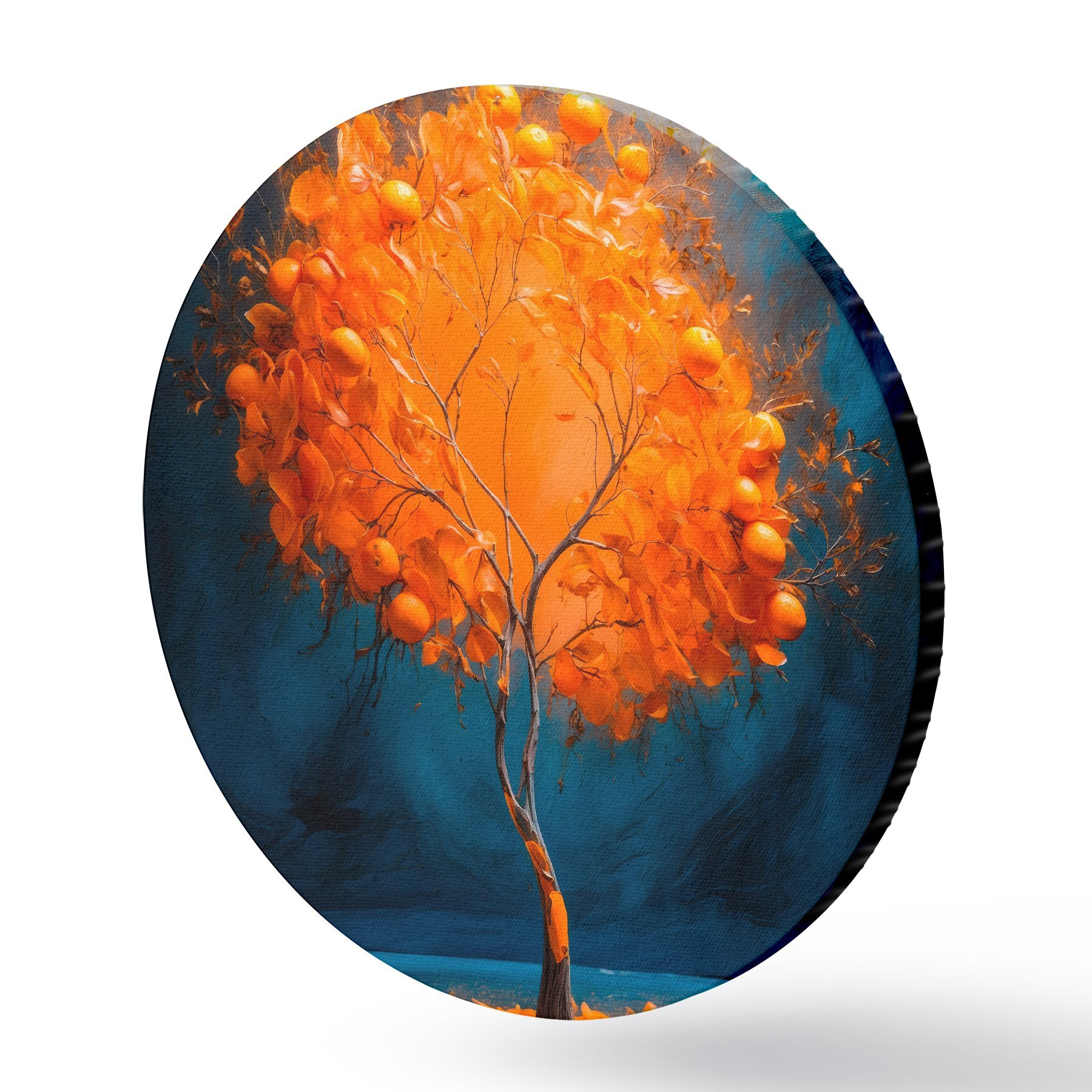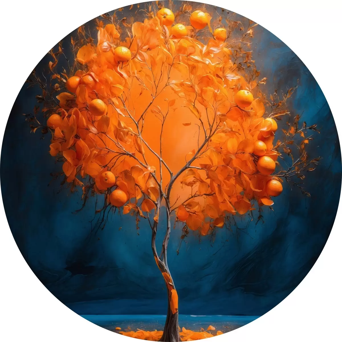 Runde Gemälde Orange Baum auf blauem Hintergrund in Acrylmalerei Stil r42525