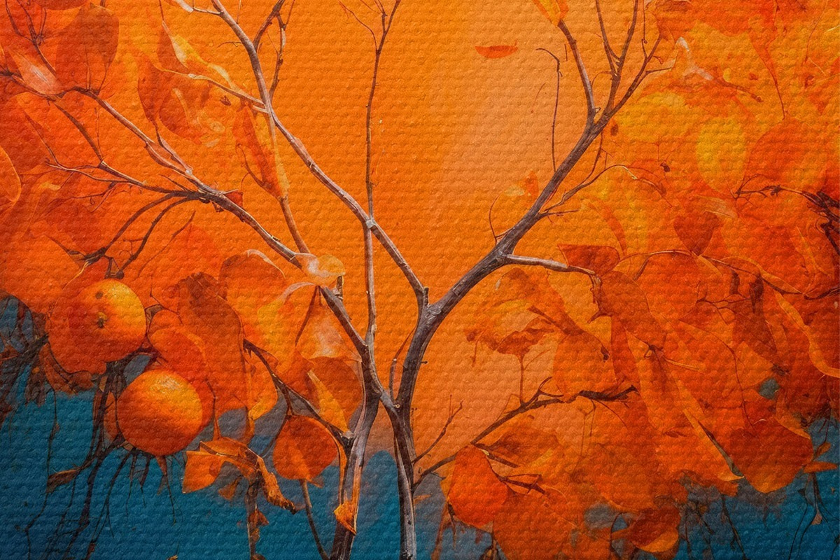 Bild Orange Baum auf blauem Hintergrund in Acrylmalerei Stil Nr r42525