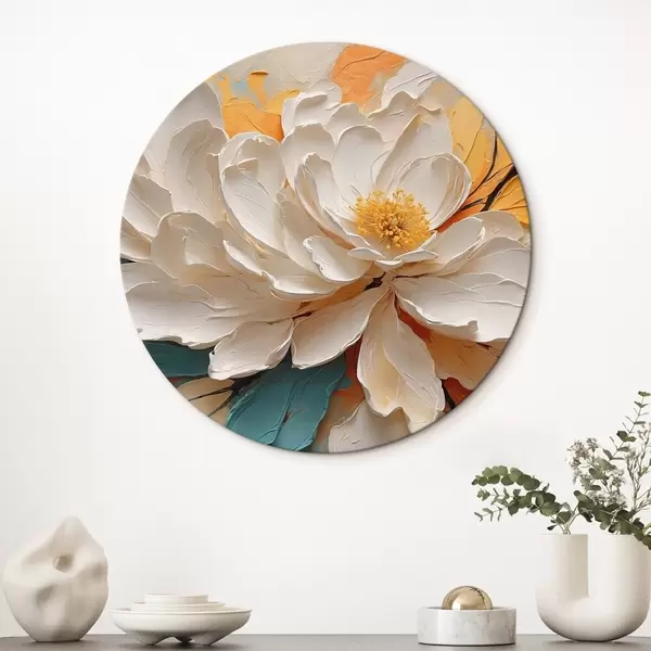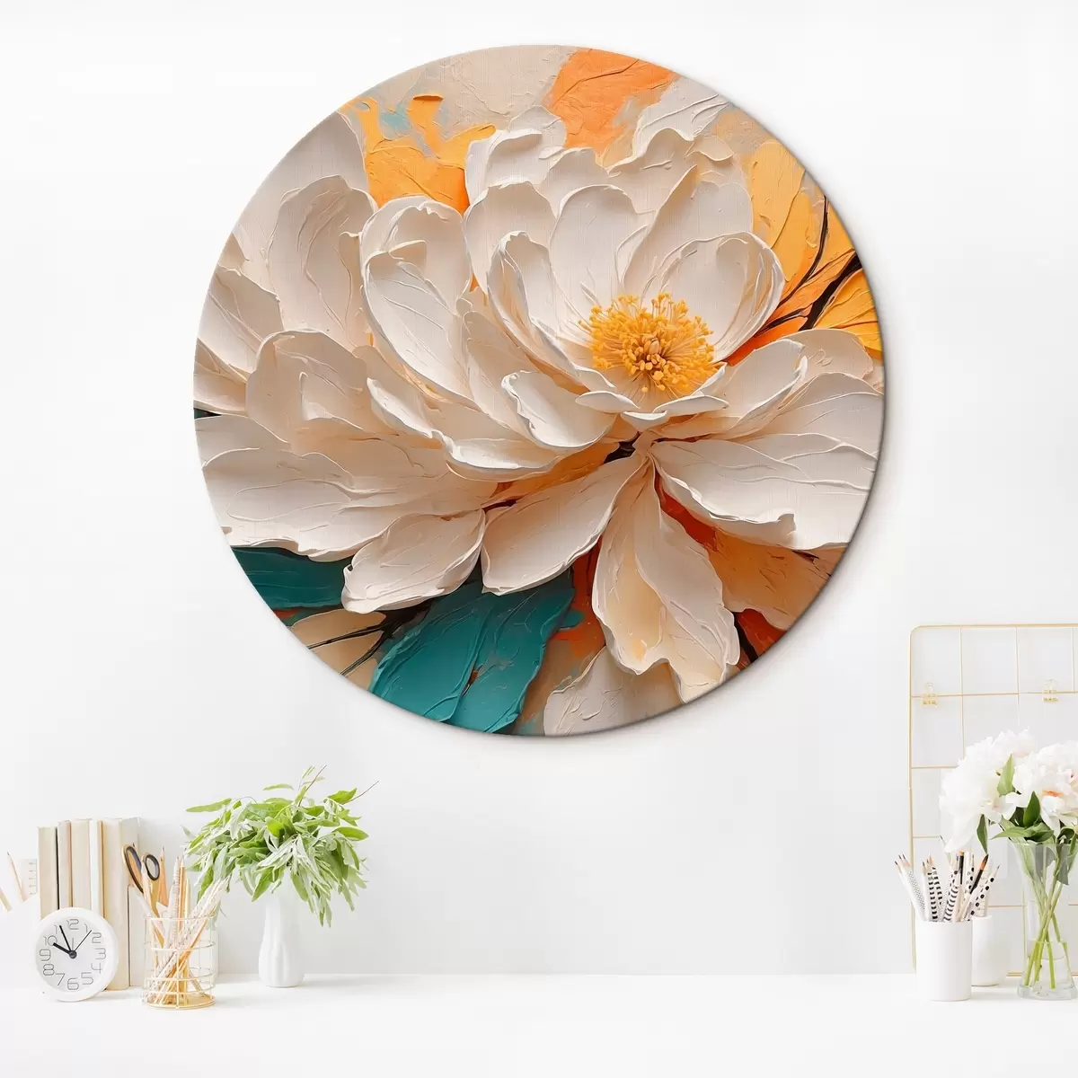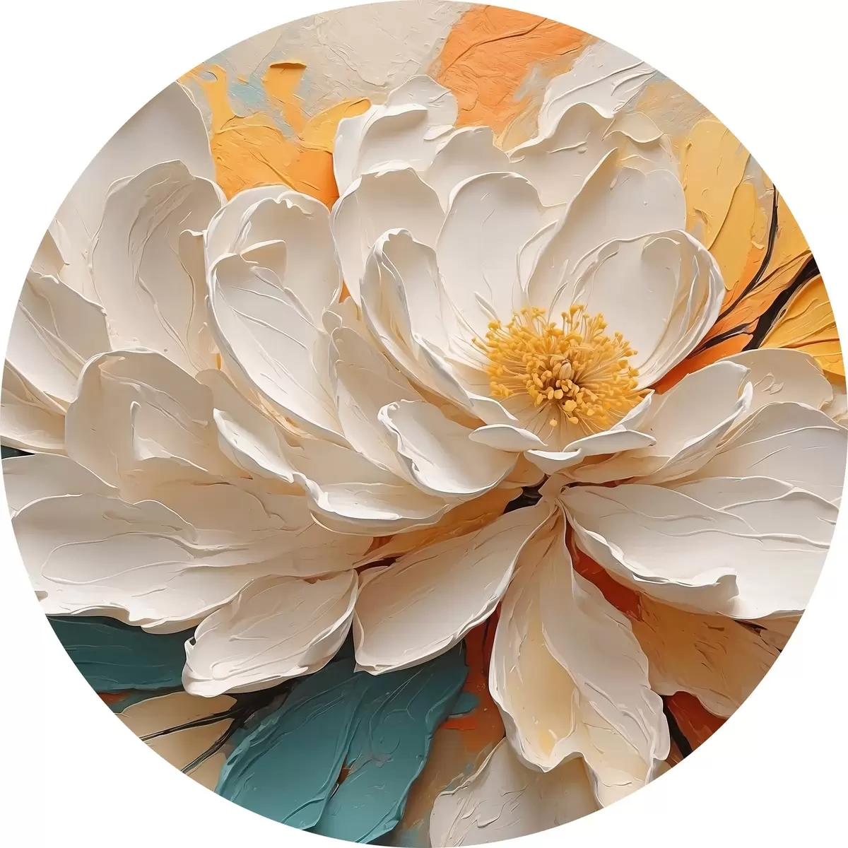 Runde Gemälde Weiße Blume im Stil der Ölmalerei r42528