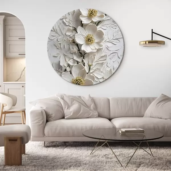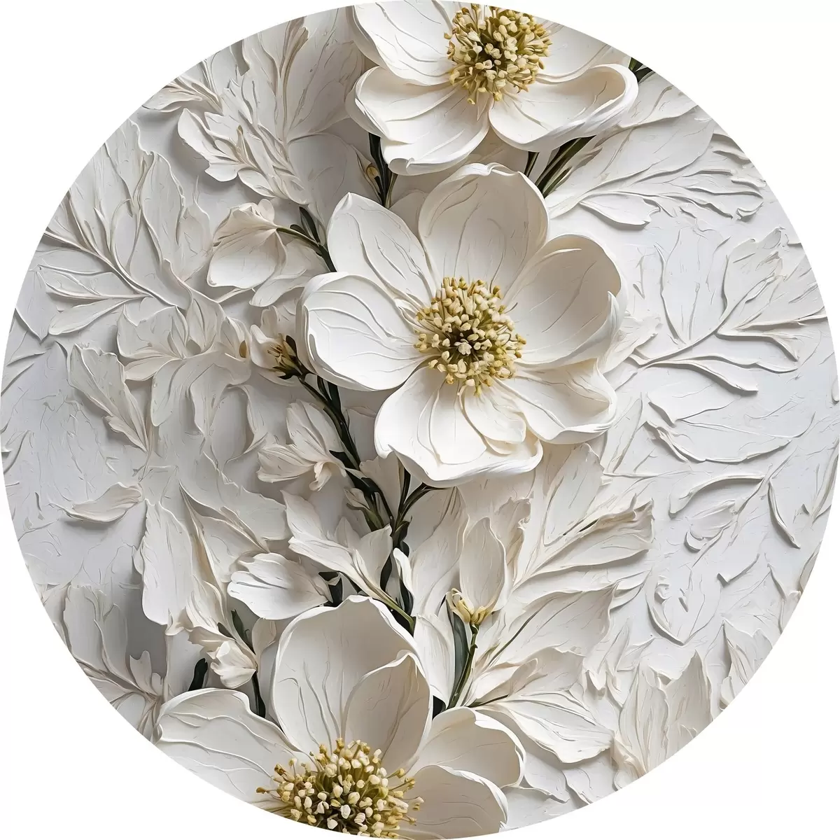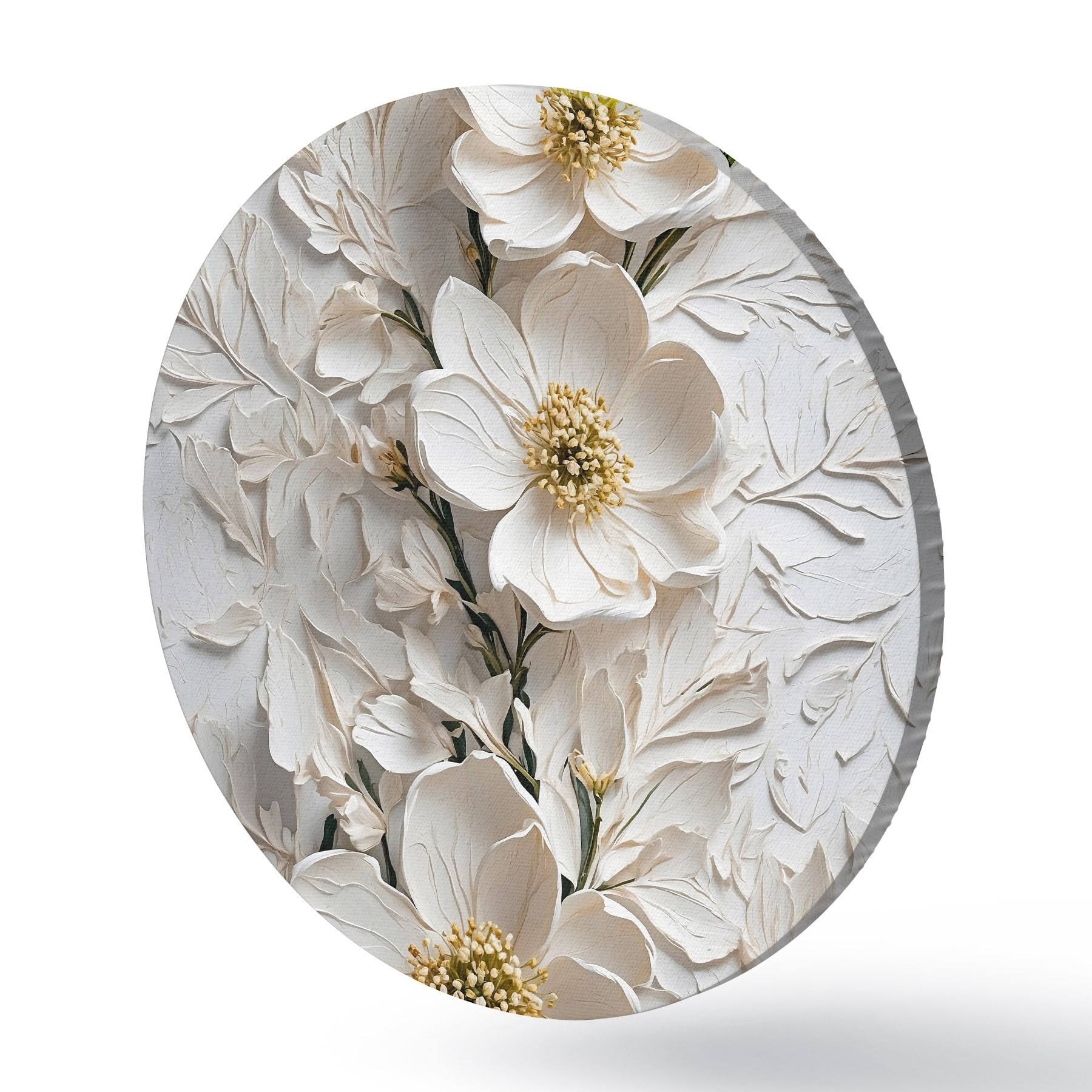 Runde Gemälde Weiße Blumen und Stängel im Stil der Ölmalerei r42546