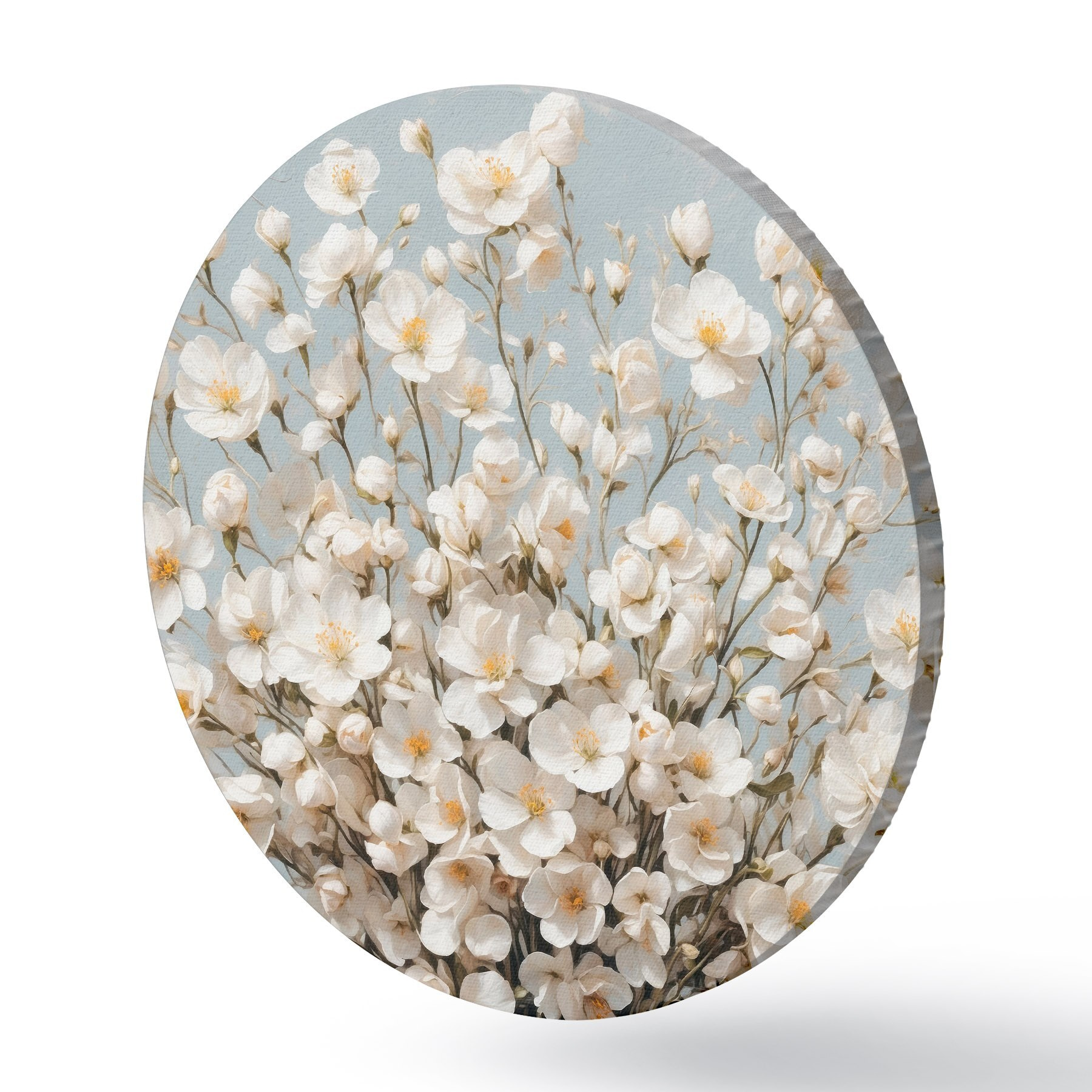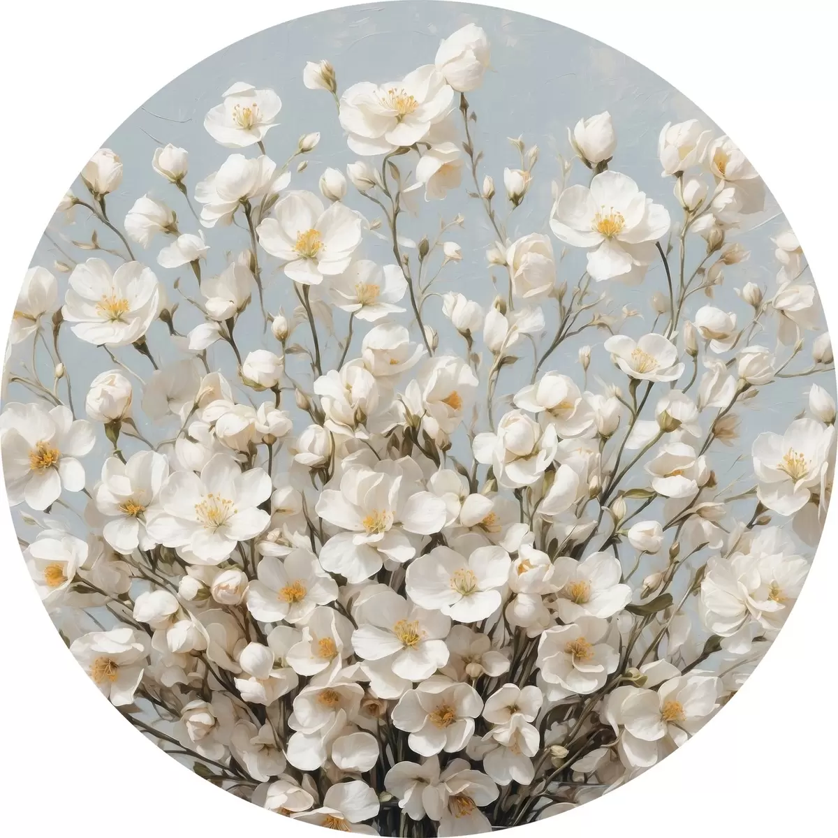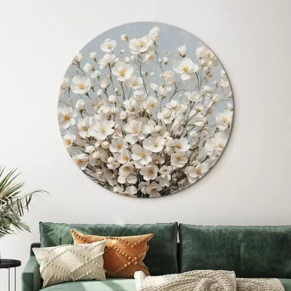 Runde Gemälde Weiße Blumen in transparenter Vase r42547