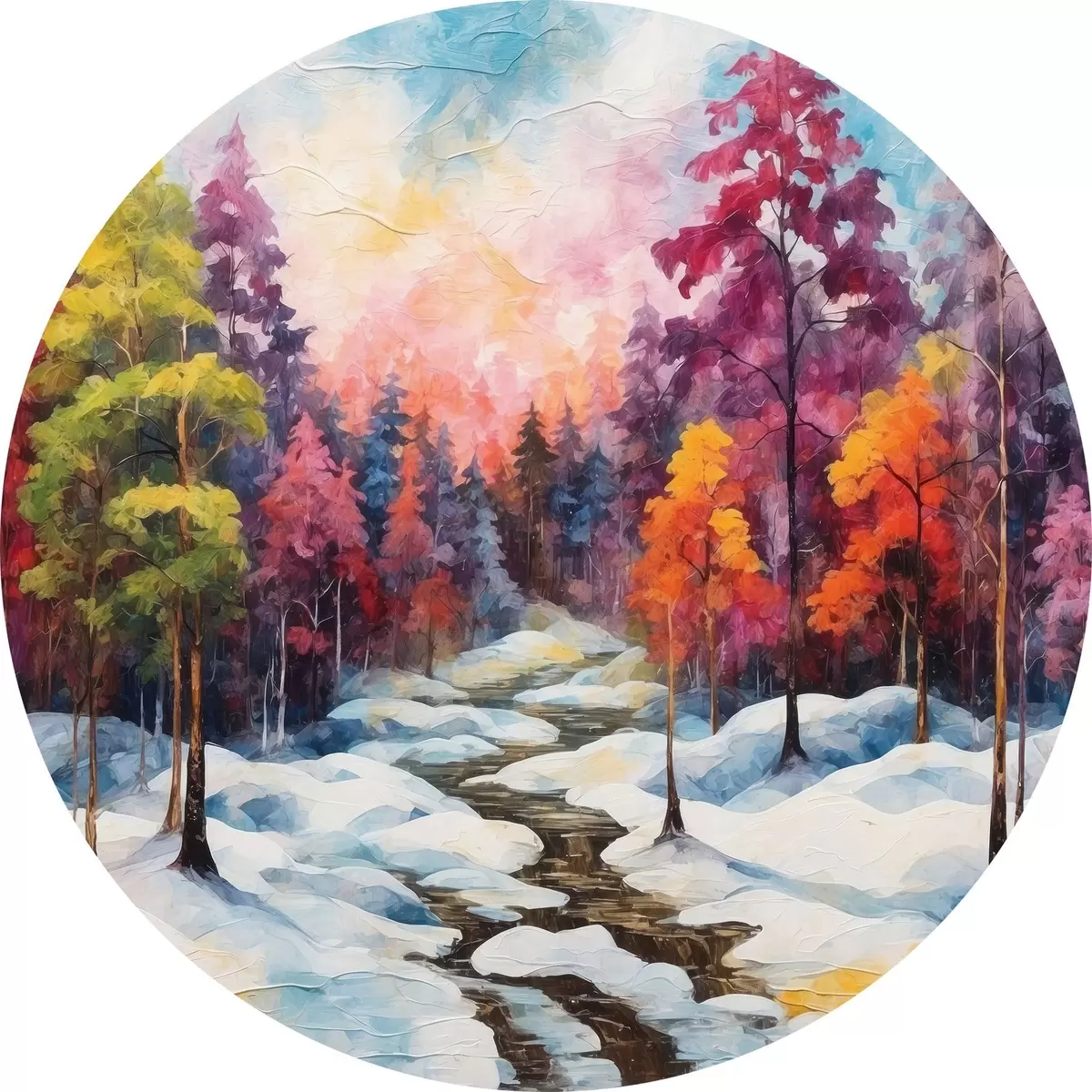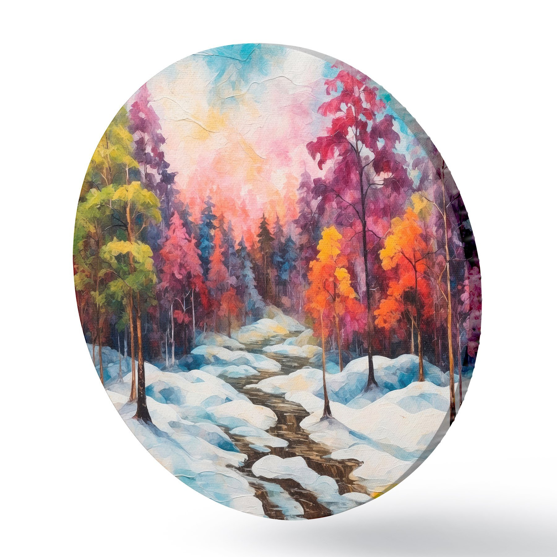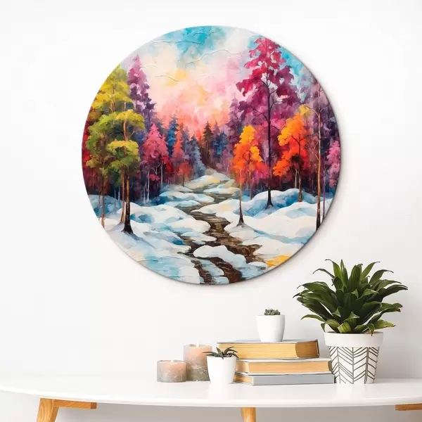 Runde Gemälde Wald im Winter Stil Malerei in Aquarell r42549