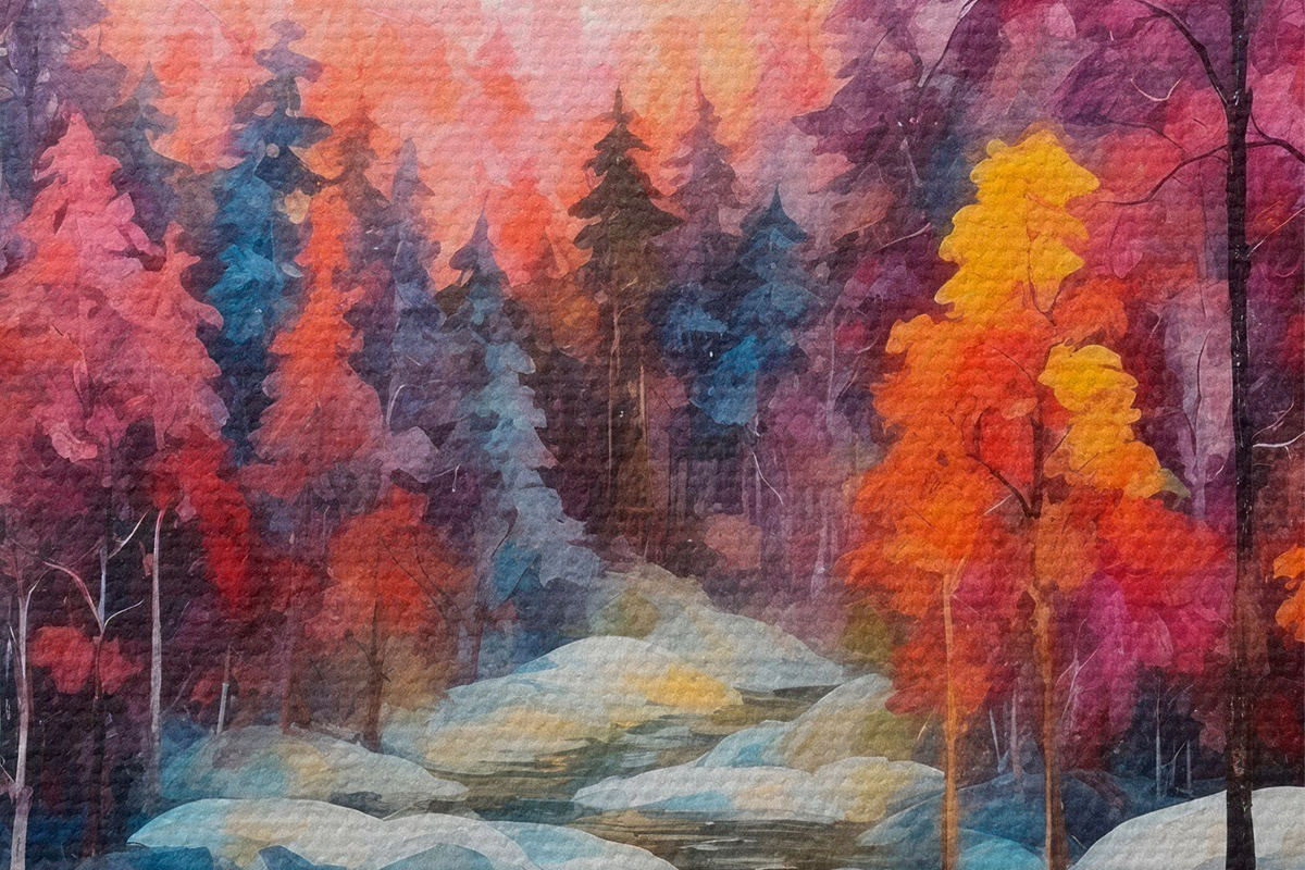 Bild Wald im Winter Stil Malerei in Aquarell Nr r42549