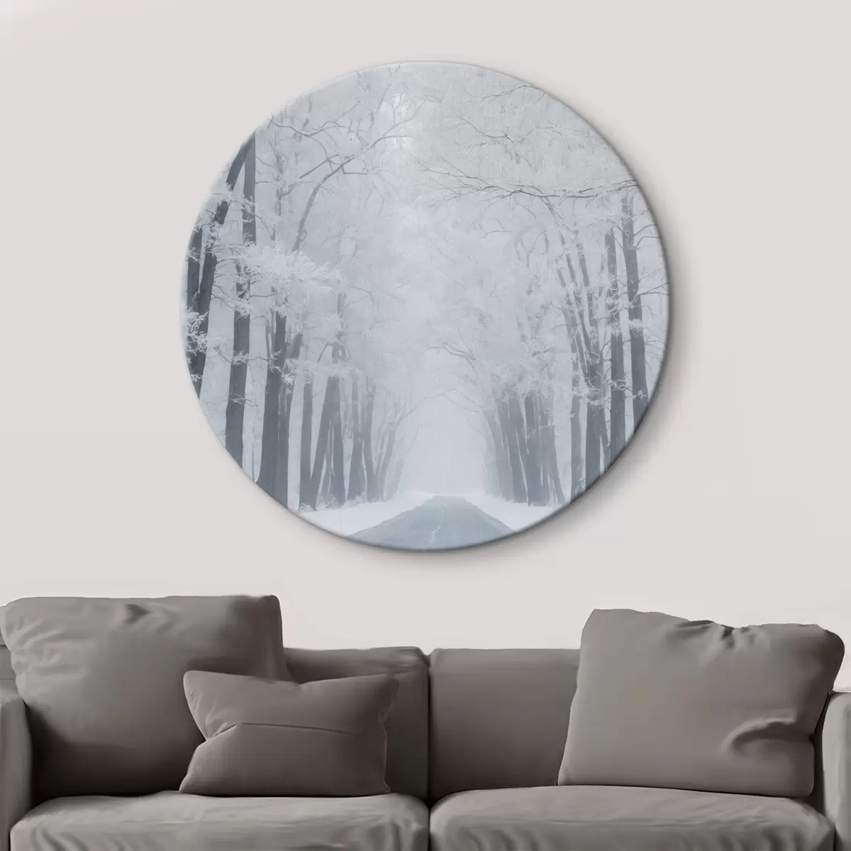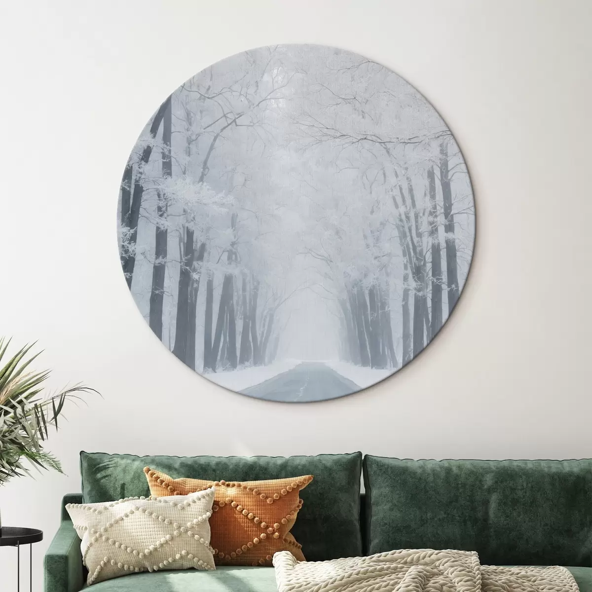 Runde Gemälde Straße durch den Wald im Winter r42551