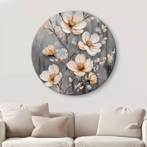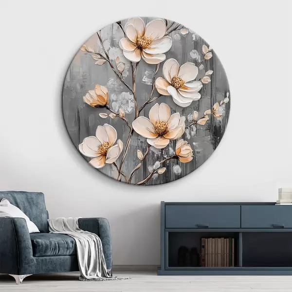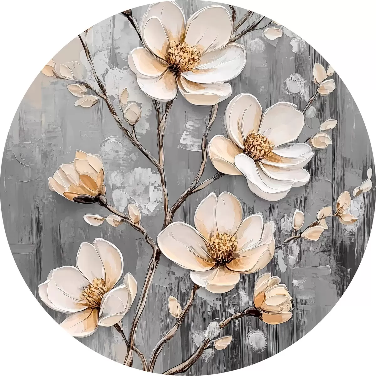Runde Gemälde Abstrakter Zweig mit Blumen r42555