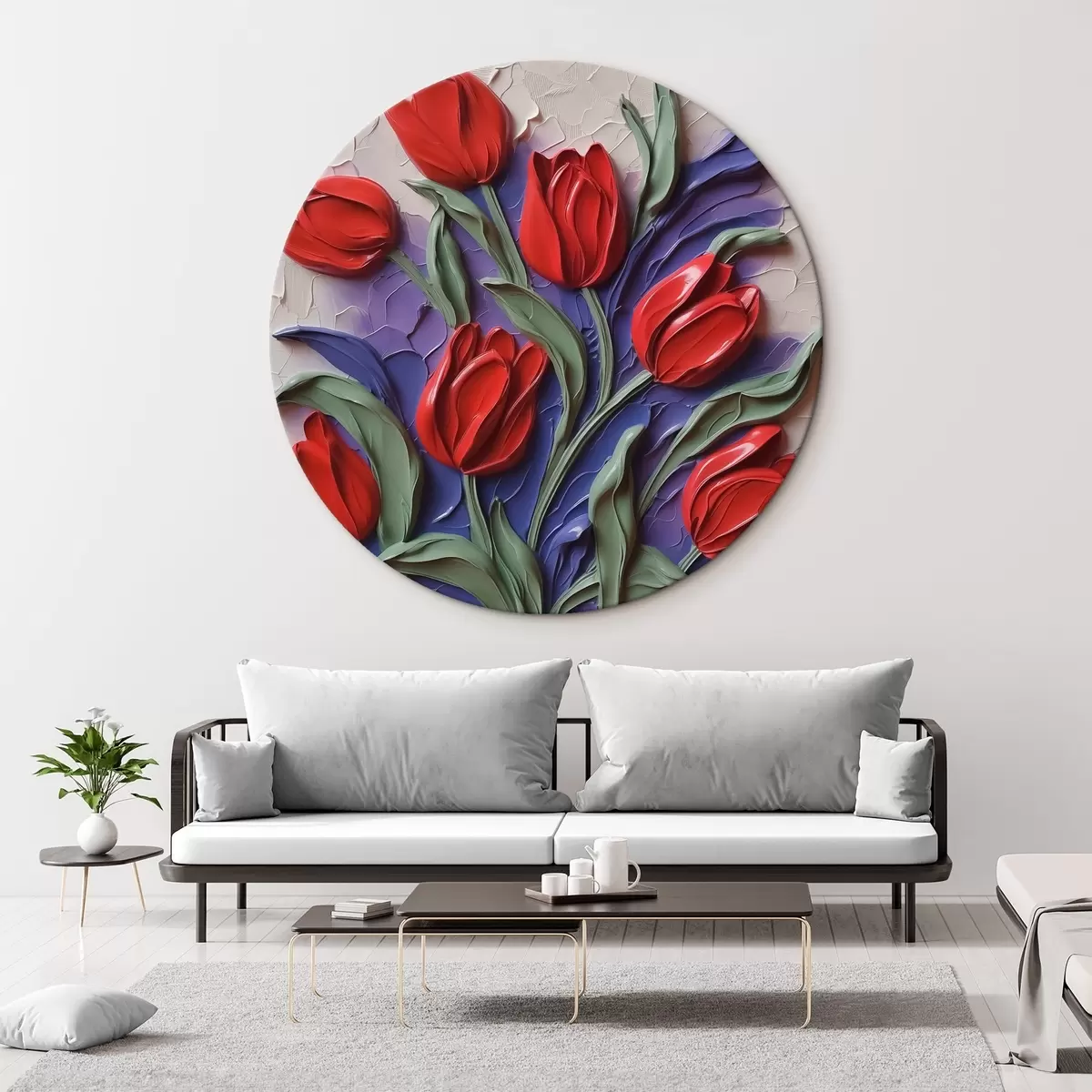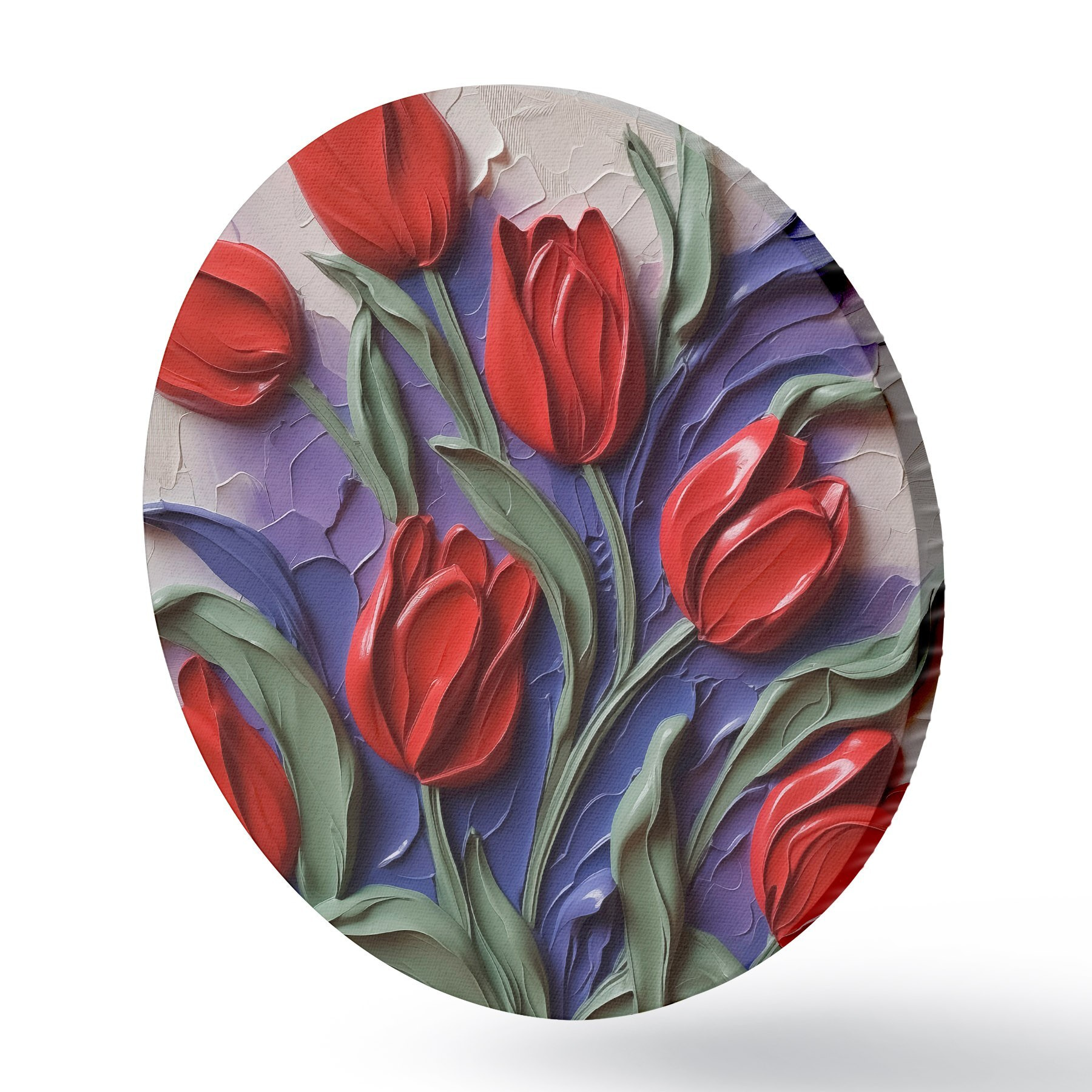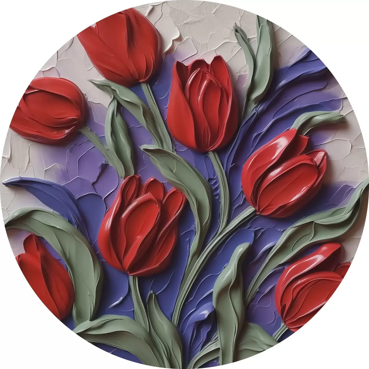 Runde Gemälde Rote Tulpen auf lila Imitationspinselstrichen r42584