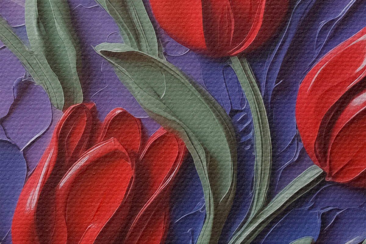 Bild Rote Tulpen auf lila Imitationspinselstrichen Nr r42584
