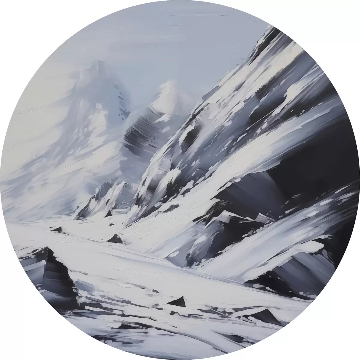 Runde Gemälde Schneebedeckte Felsen imitieren Pinselstriche der Malerei r42585