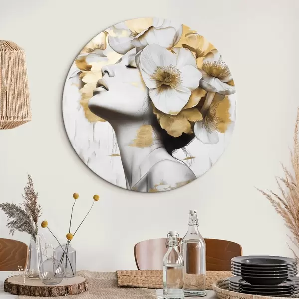 Runde Gemälde Ein Mädchen mit Blumen auf dem Kopf r42606