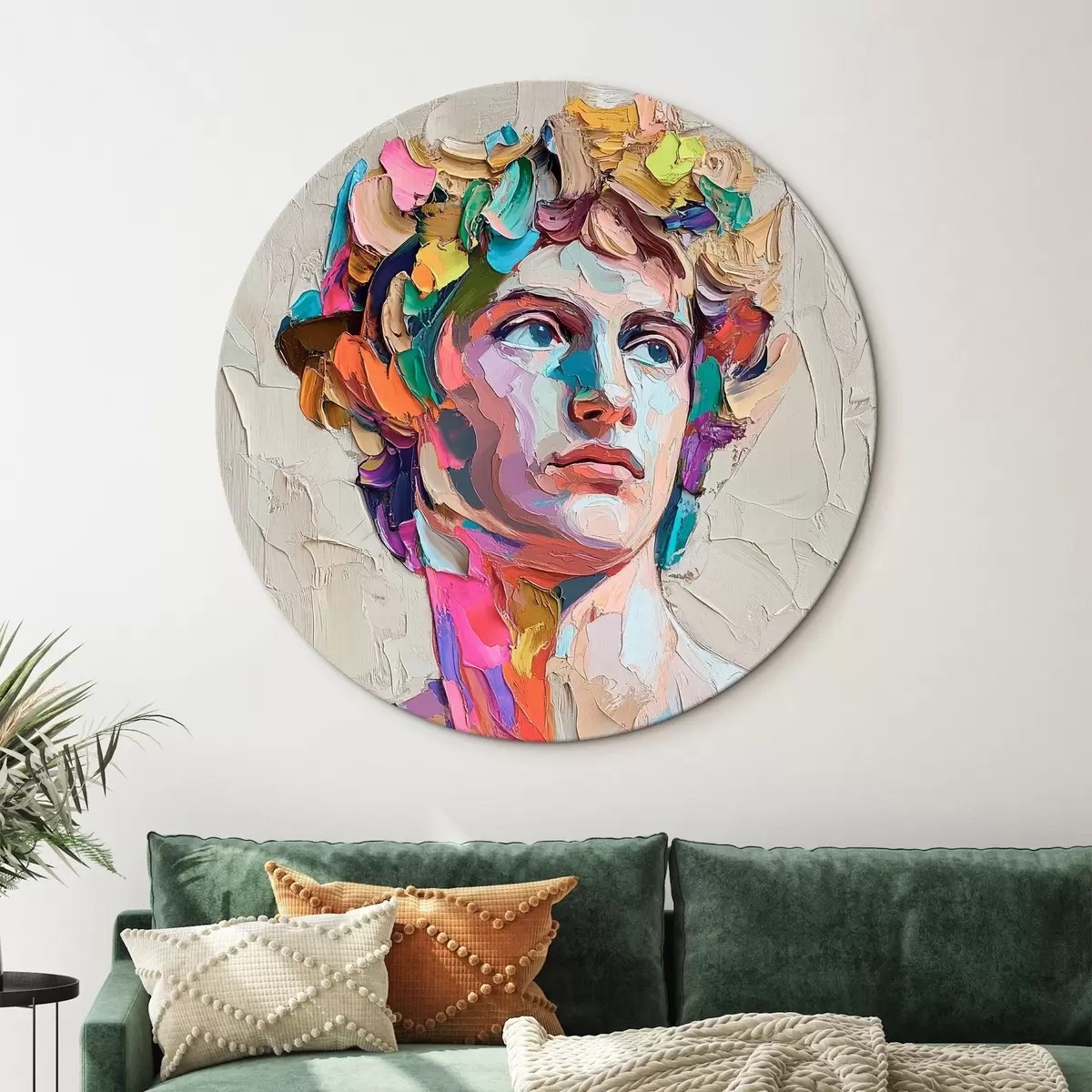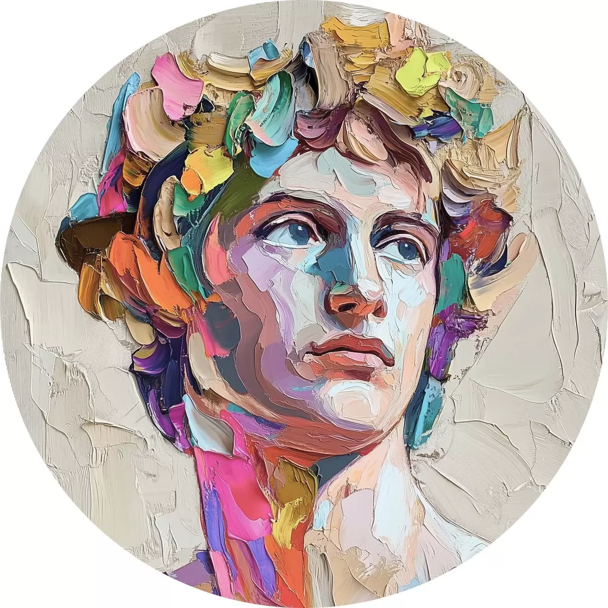 Runde Gemälde Kopf von David mit mehrfarbigen Strichen r42607