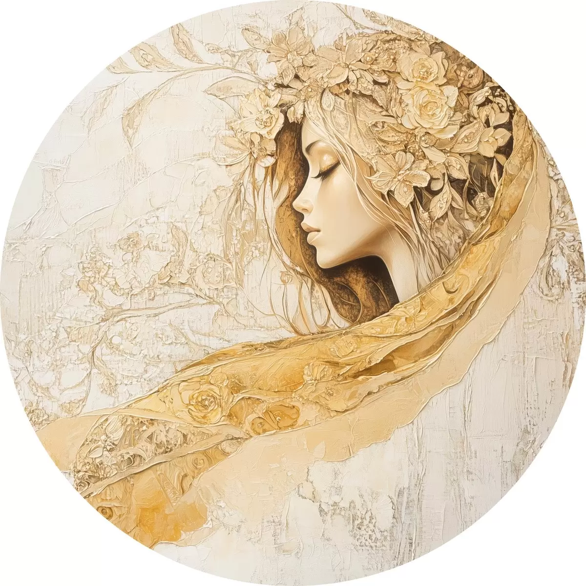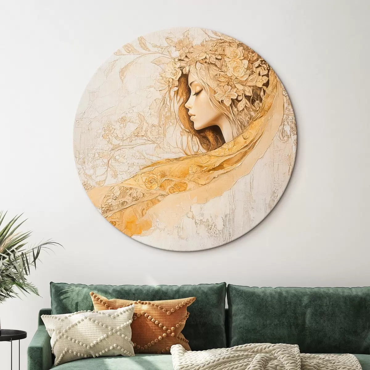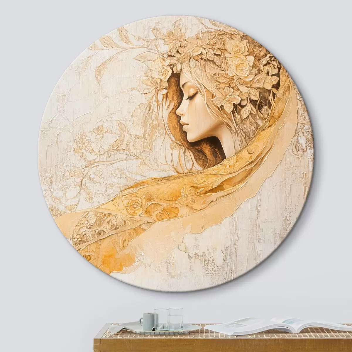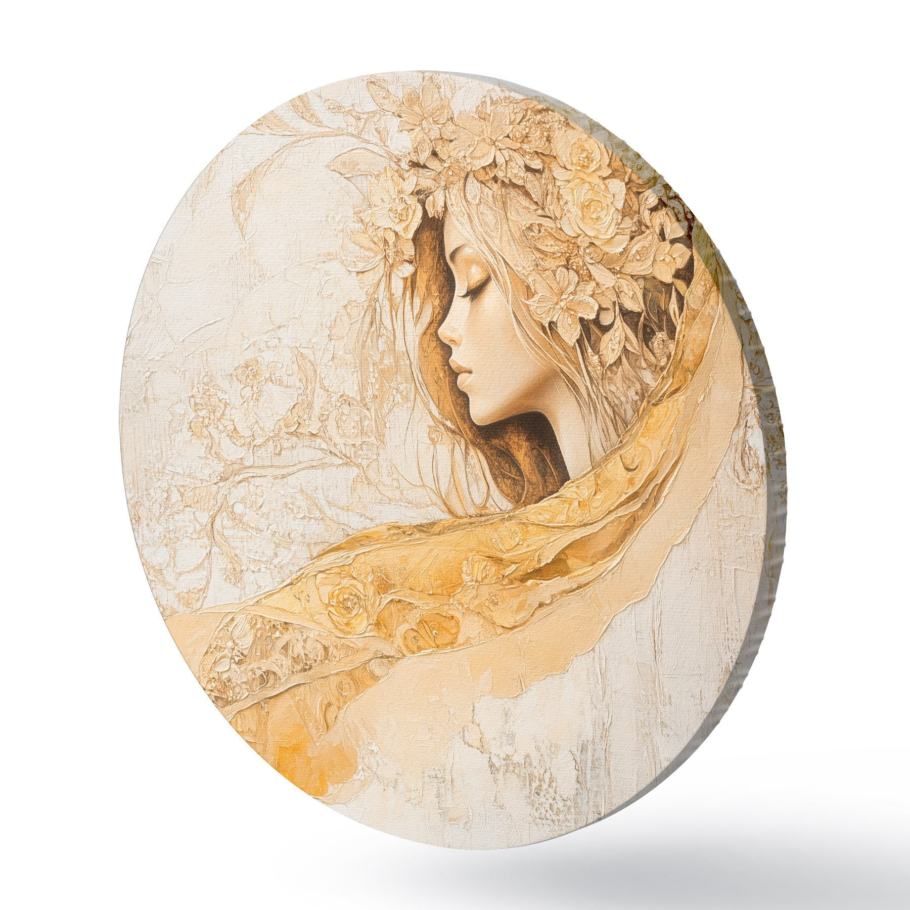 Runde Gemälde Sanftes Mädchen im Stil der Ölmalerei mit Blumen r42616