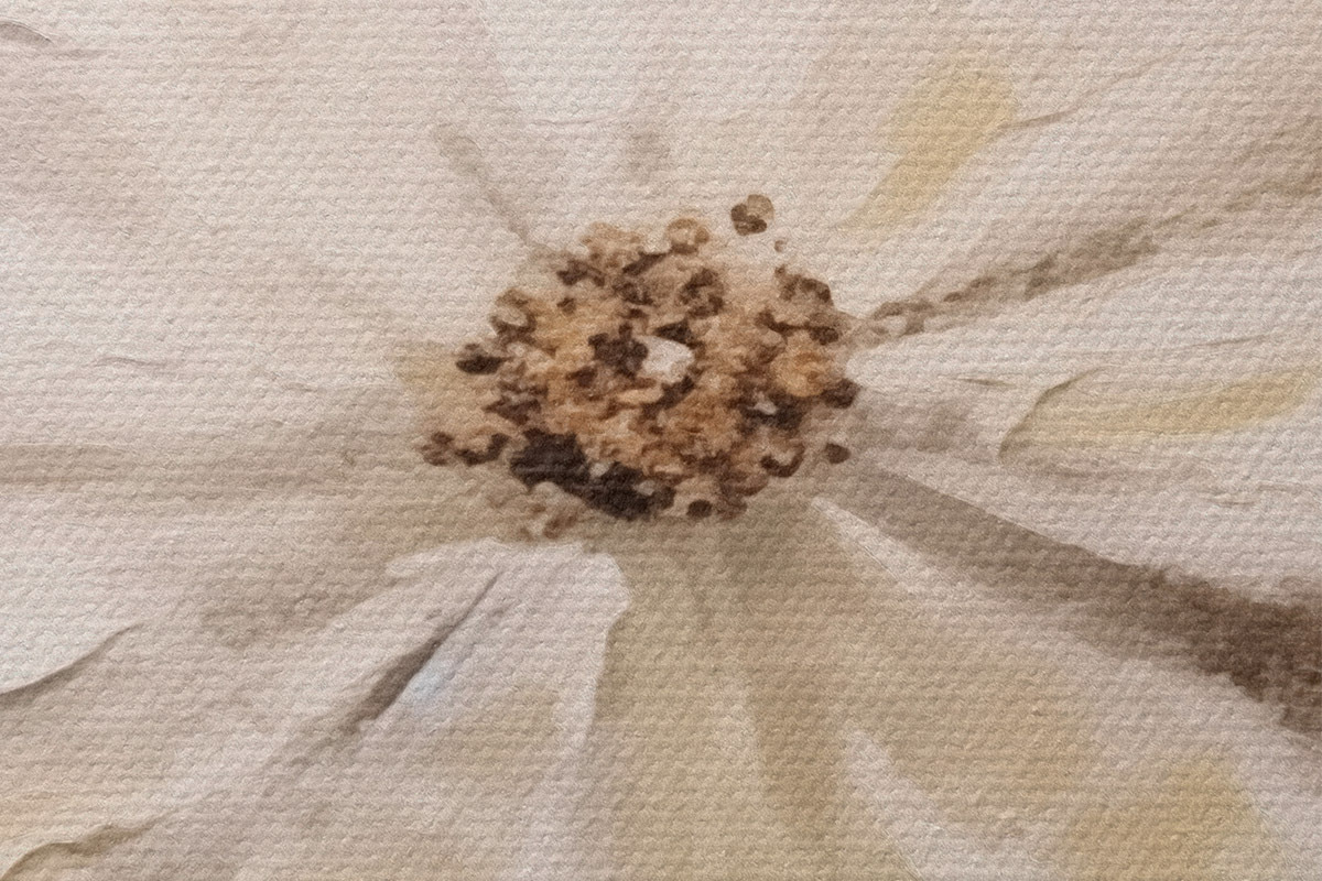 Das feine Fadengeflecht auf dieser Leinwand ähnelt der Oberfläche von professionellen Künstlerleinwänden.