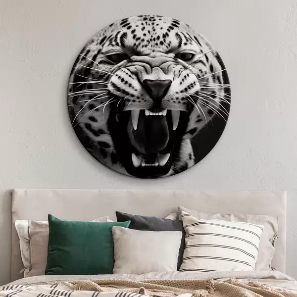 Runde Gemälde Leopard in schwarz-weißem Stil r42646