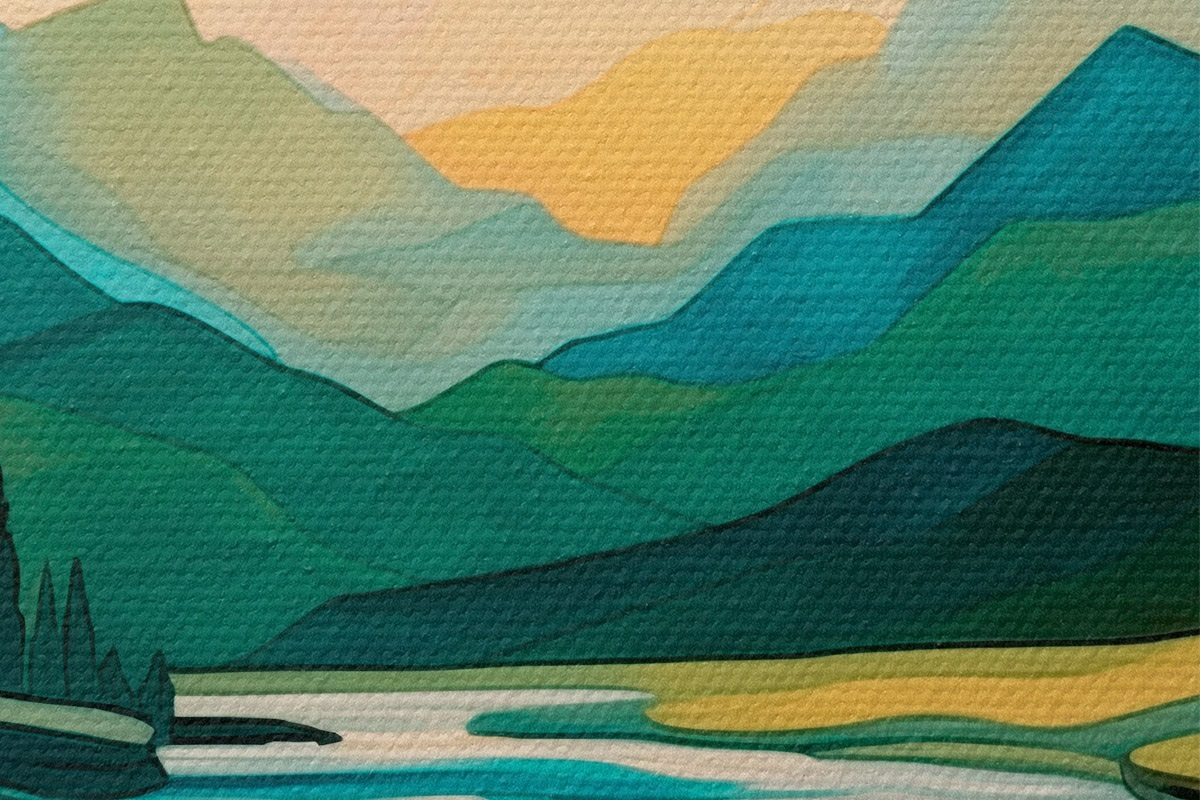 Bild Landschaft mit Fluss in abstraktem Stil Nr r42652