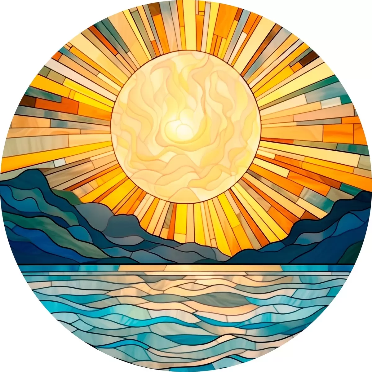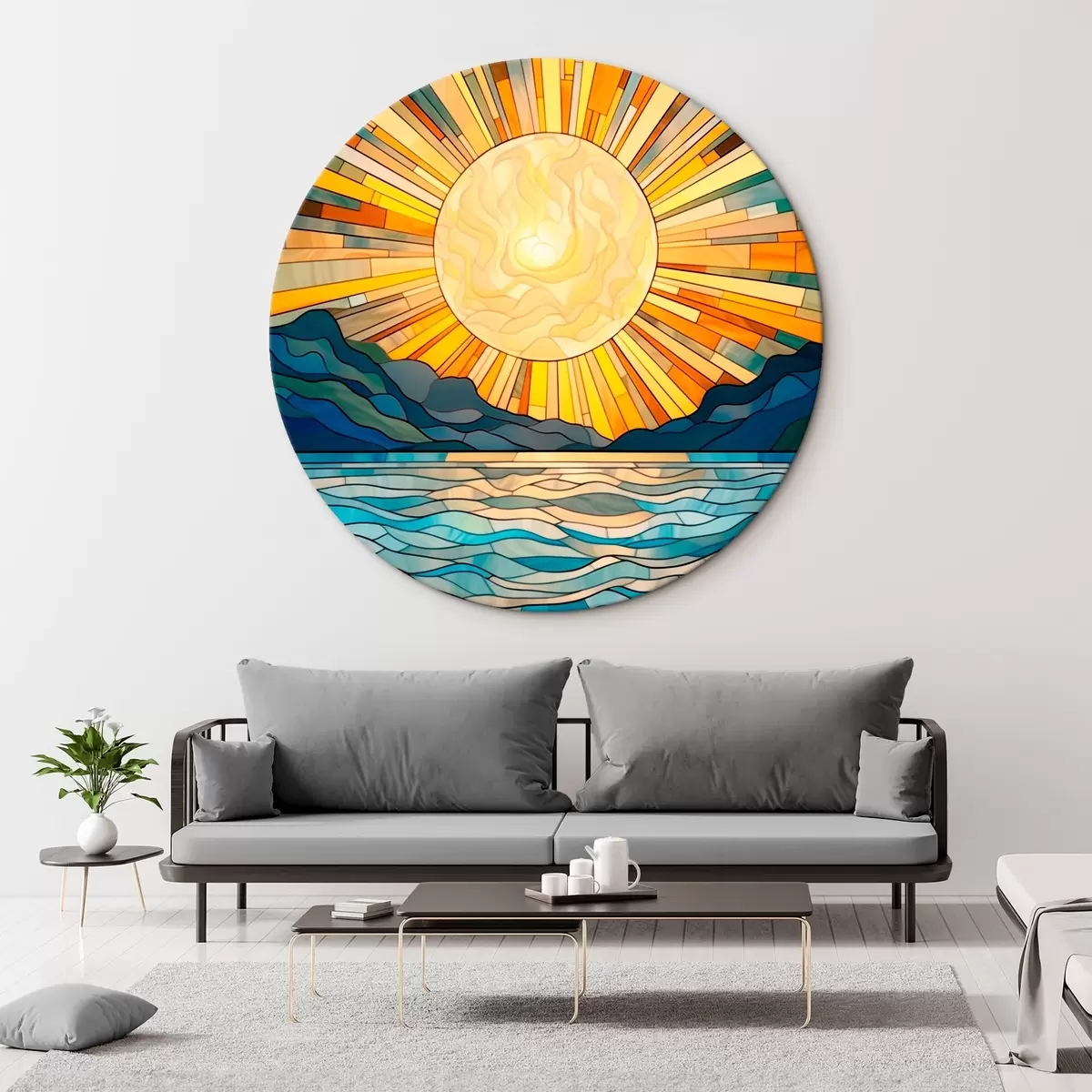 Runde Gemälde Sonne und Wellen im Stil der Glasmalerei r42654