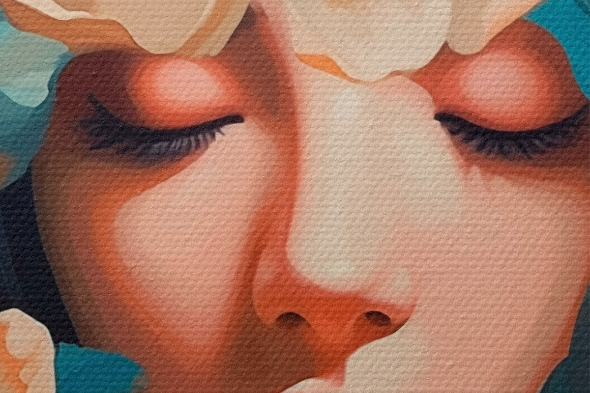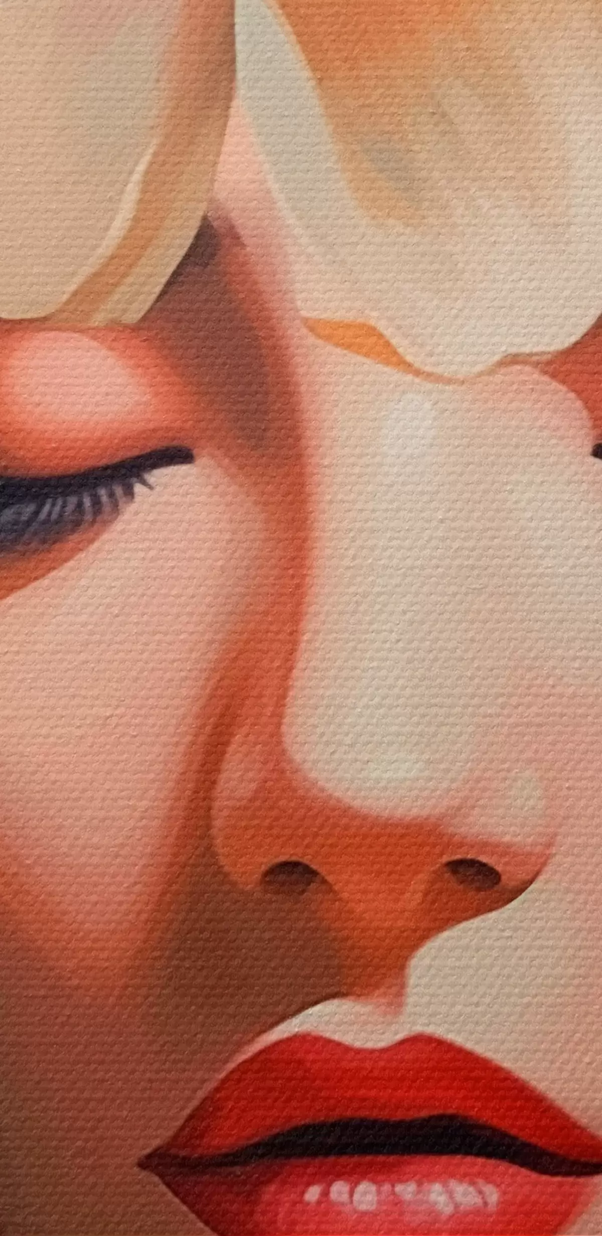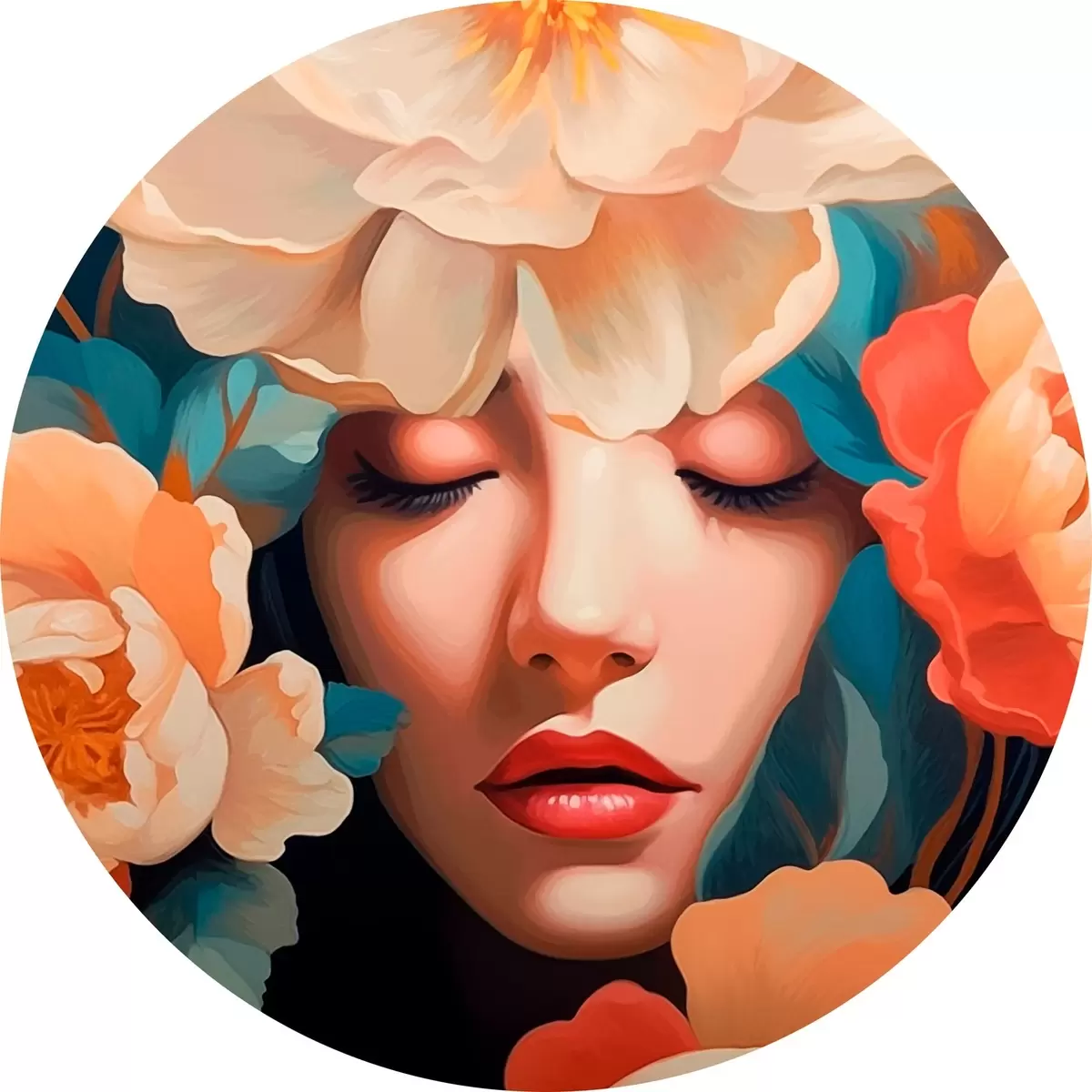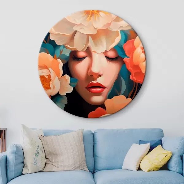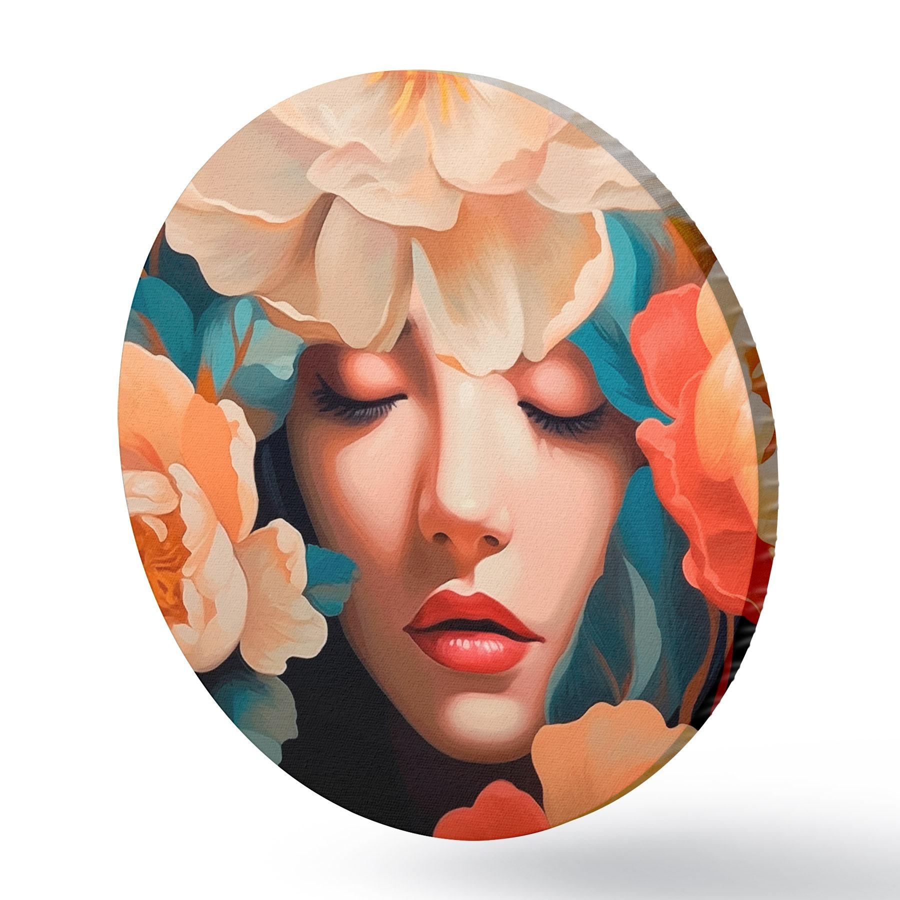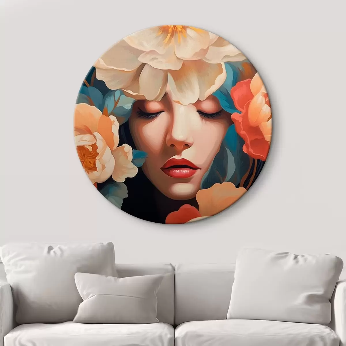 Runde Gemälde Frauenporträt mit Blumen r42659
