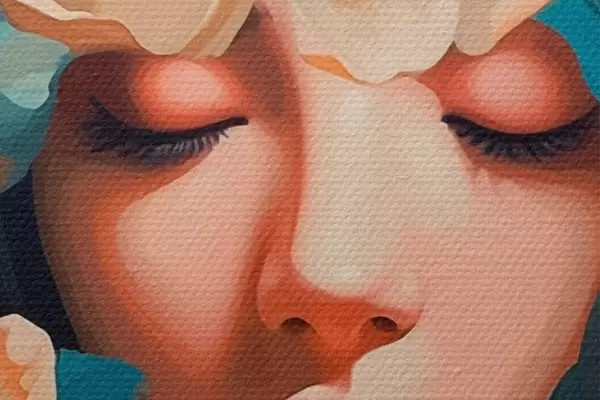 Um die Leinwand auf Keilrahmen zu spannen, ohne das Bild zu beschädigen, verwenden wir ein gespiegeltes Bild.