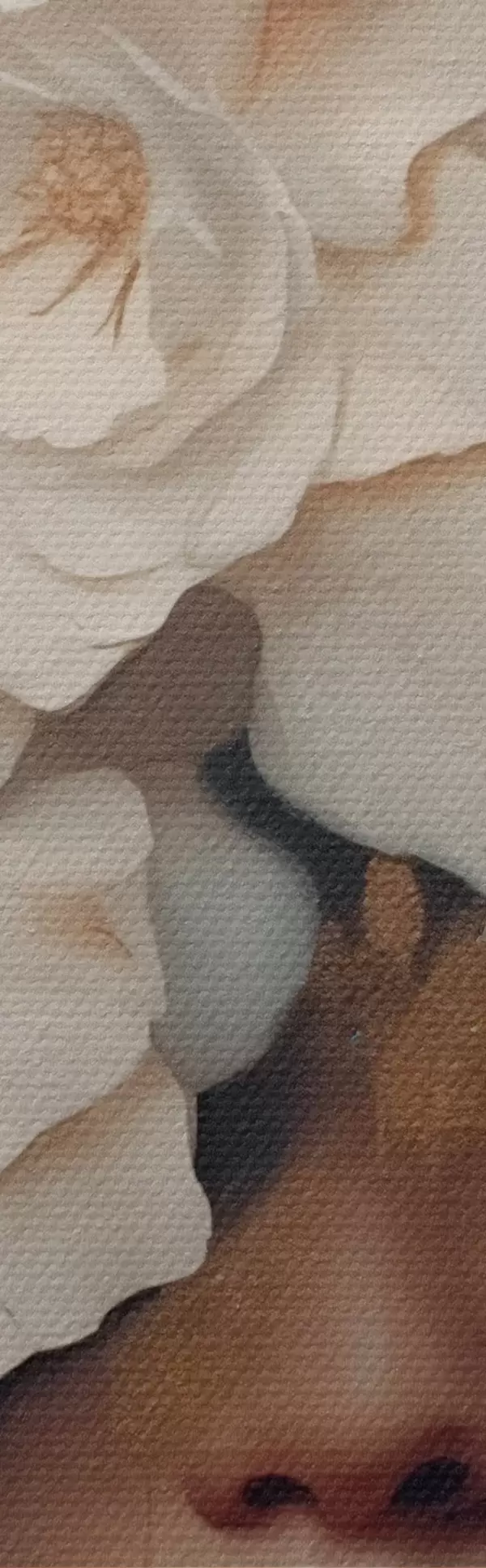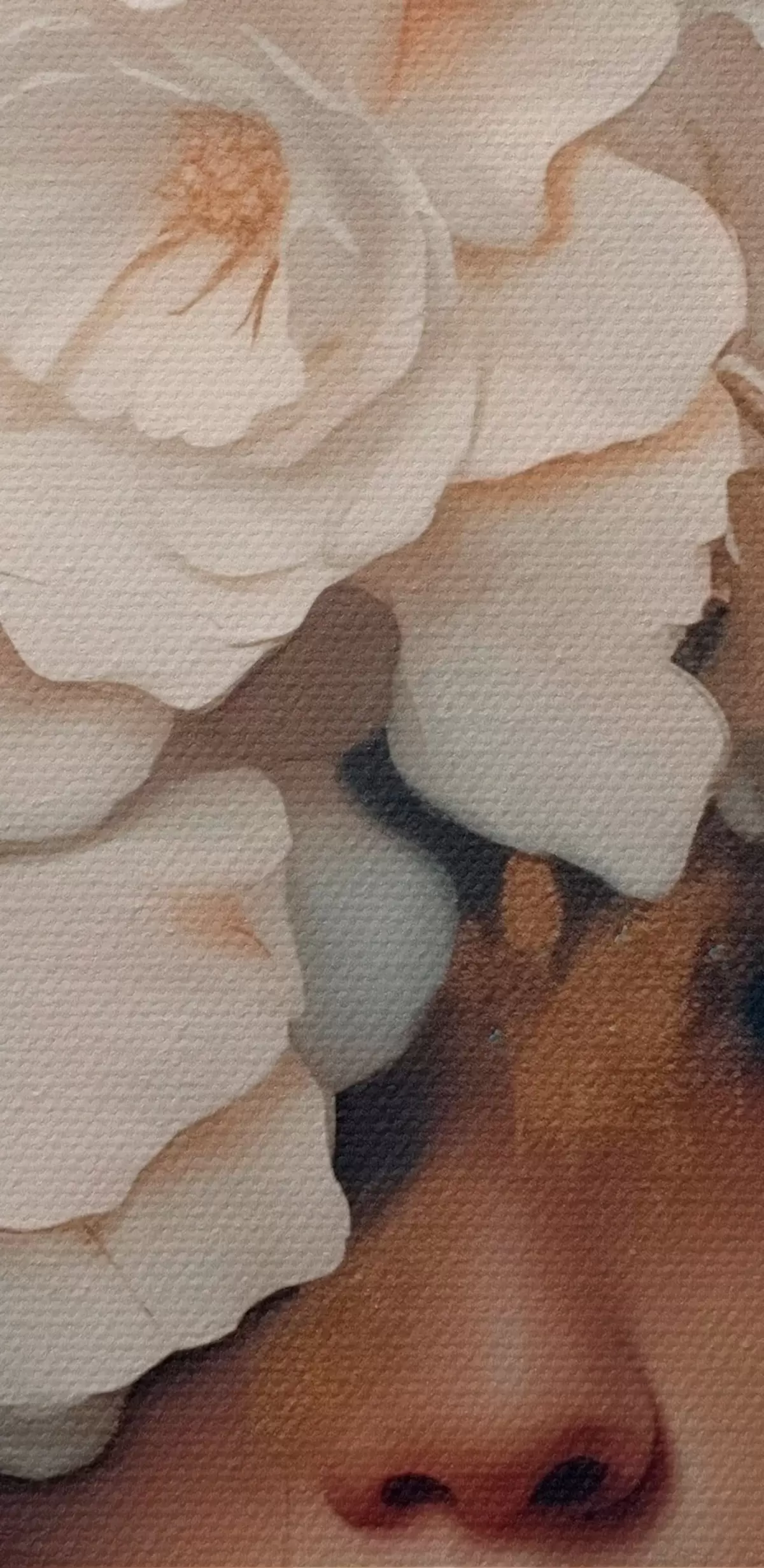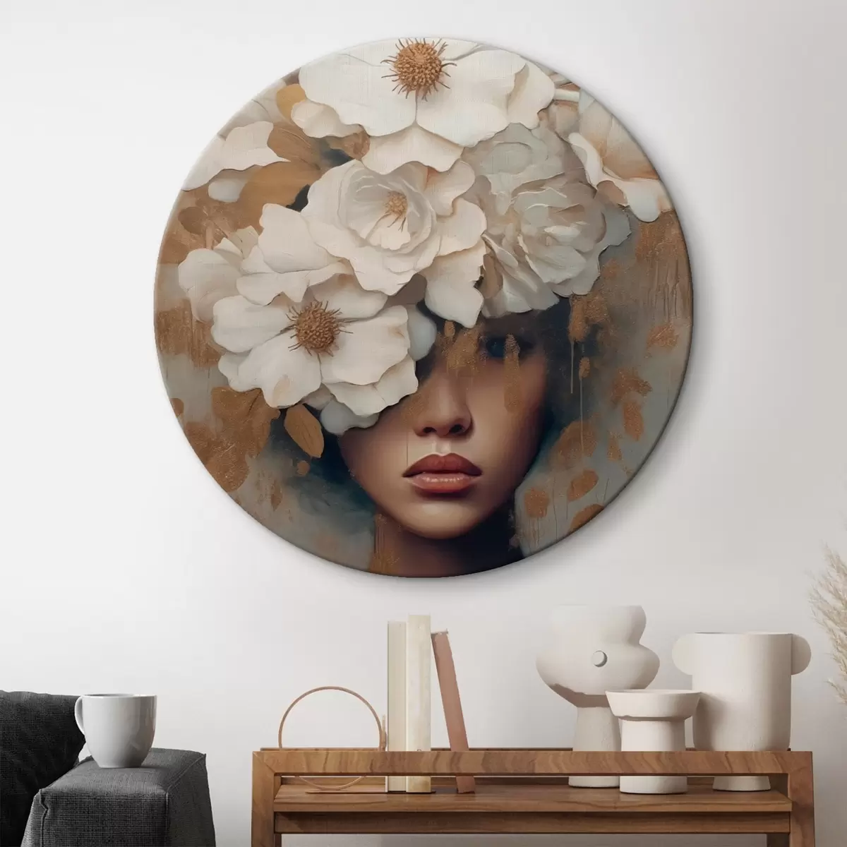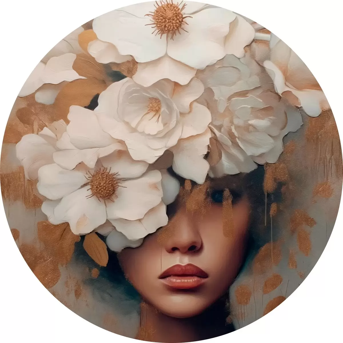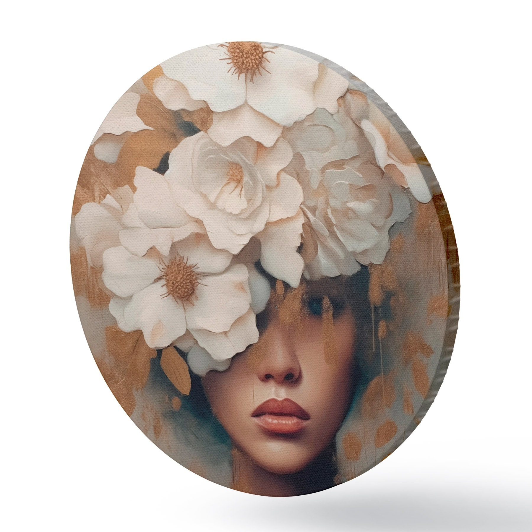 Runde Gemälde Porträt mit weißen Blumen r42664