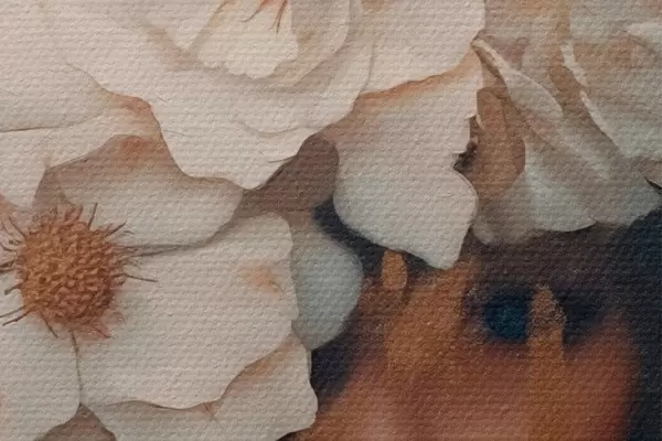 Das feine Fadengeflecht auf dieser Leinwand ähnelt der Oberfläche von professionellen Künstlerleinwänden.