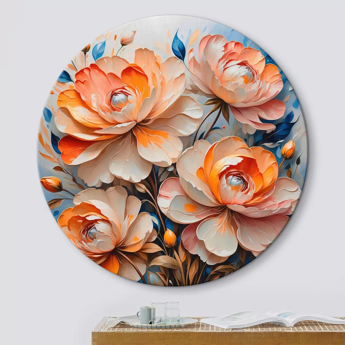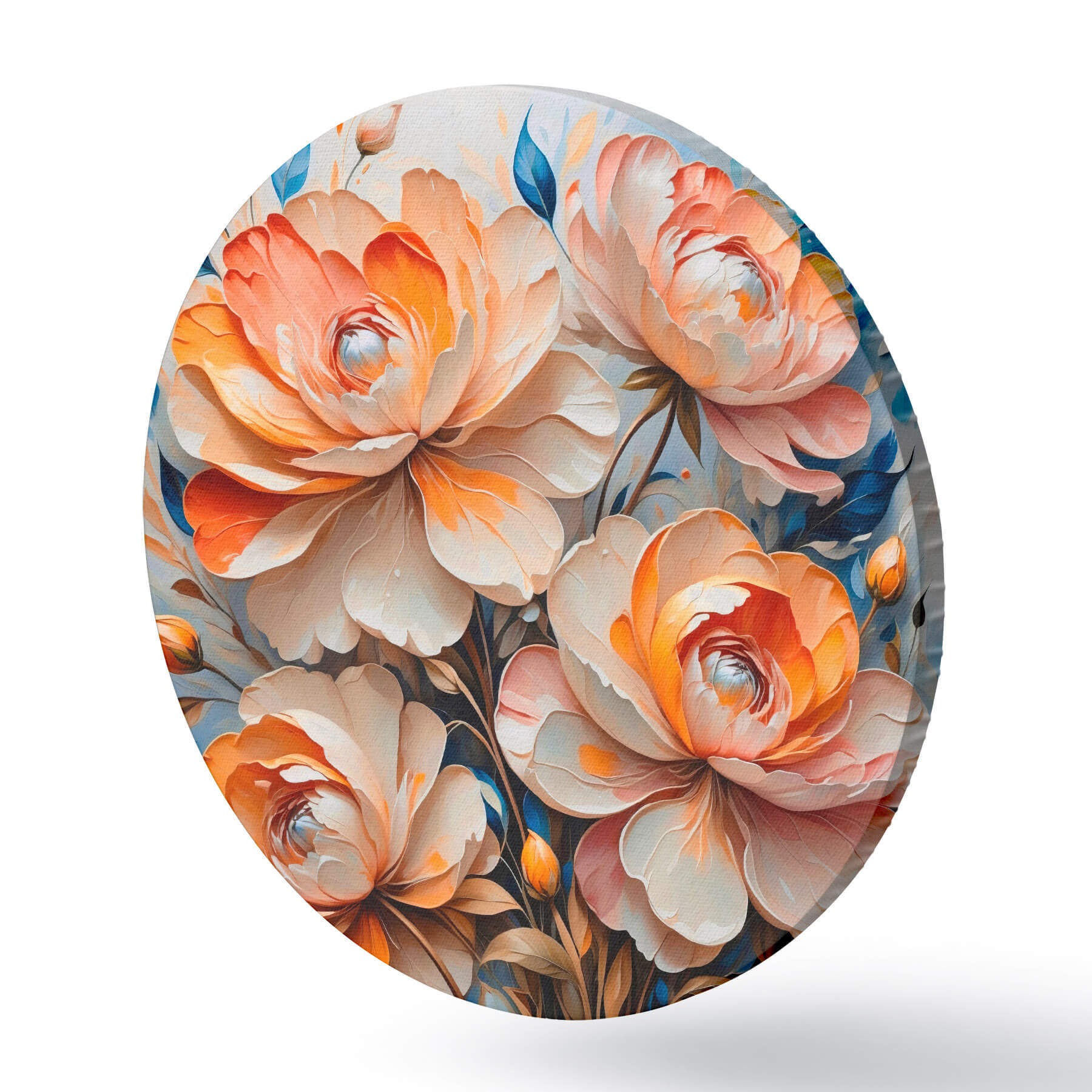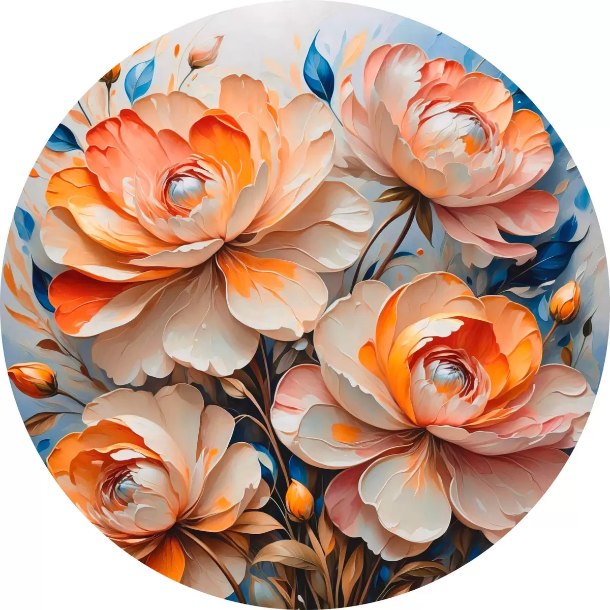 Runde Gemälde Blumen auf blauem Hintergrund r42709