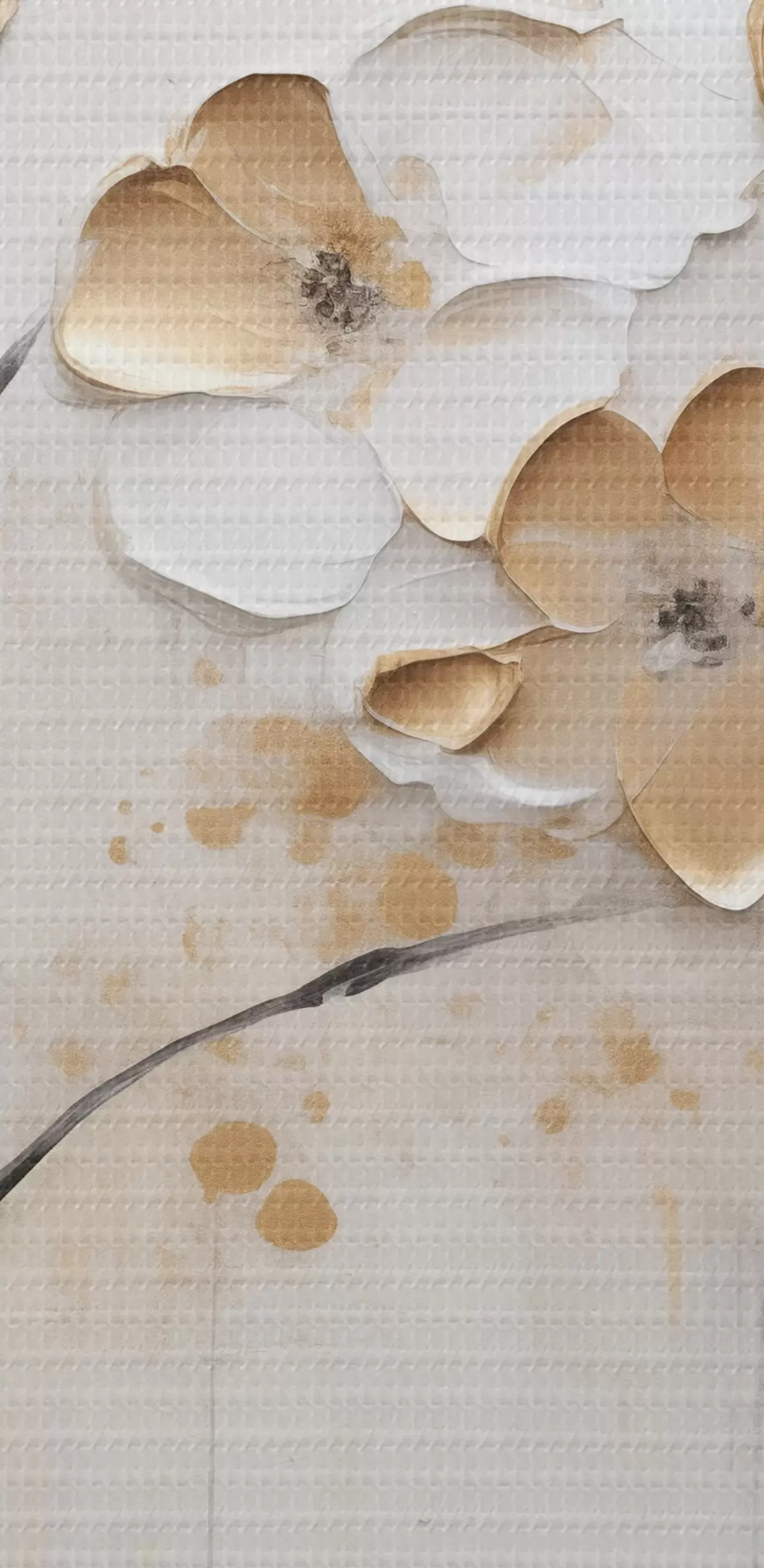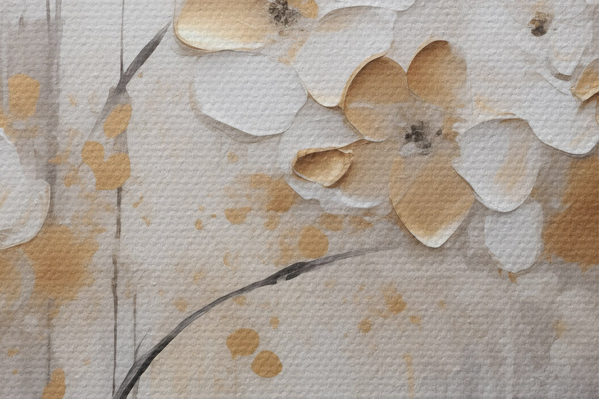 Bild Blumen mit strukturierten Blütenblättern auf einem weichen, gedämpften Hintergrund mit abstrakten Farbspritzern und vertikalen Linien Nr r42713