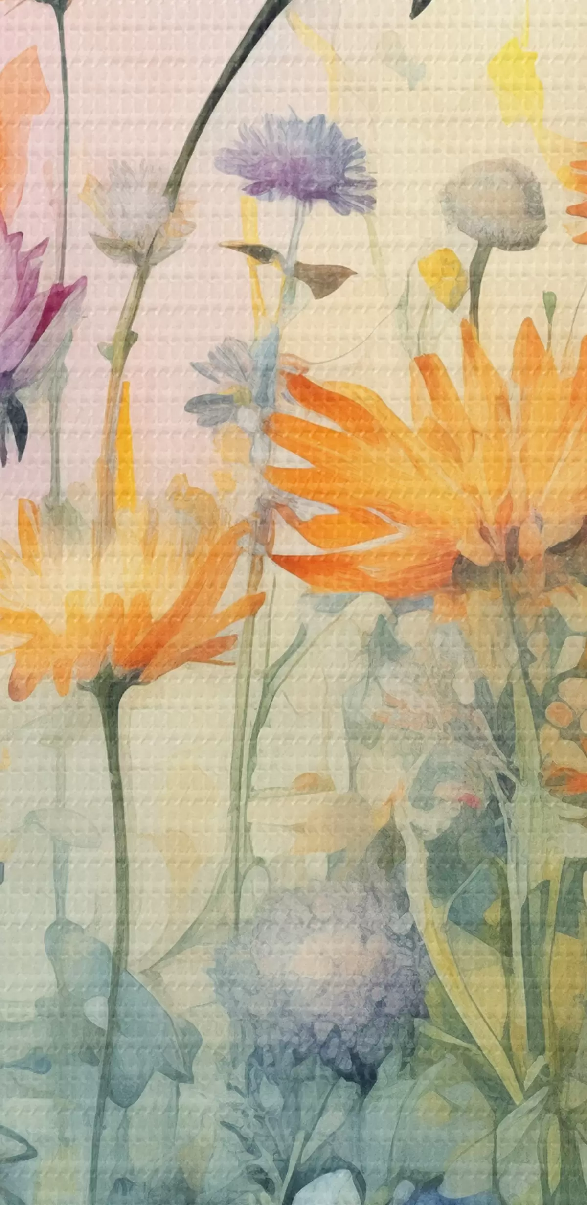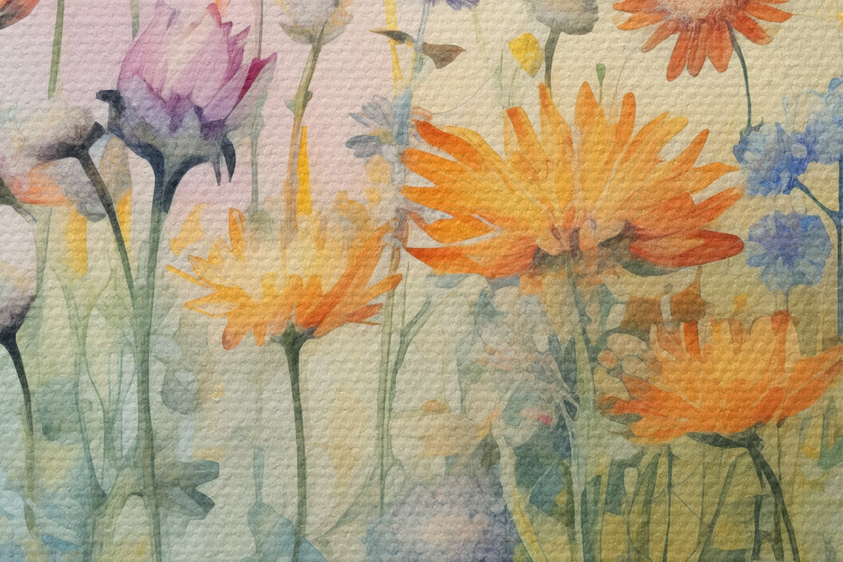 Bild Ein lebhaftes Feld hoher und üppiger Wildblumen vor einem weichen, pastellfarbenen, aquarellartigen Hintergrund Nr r42726