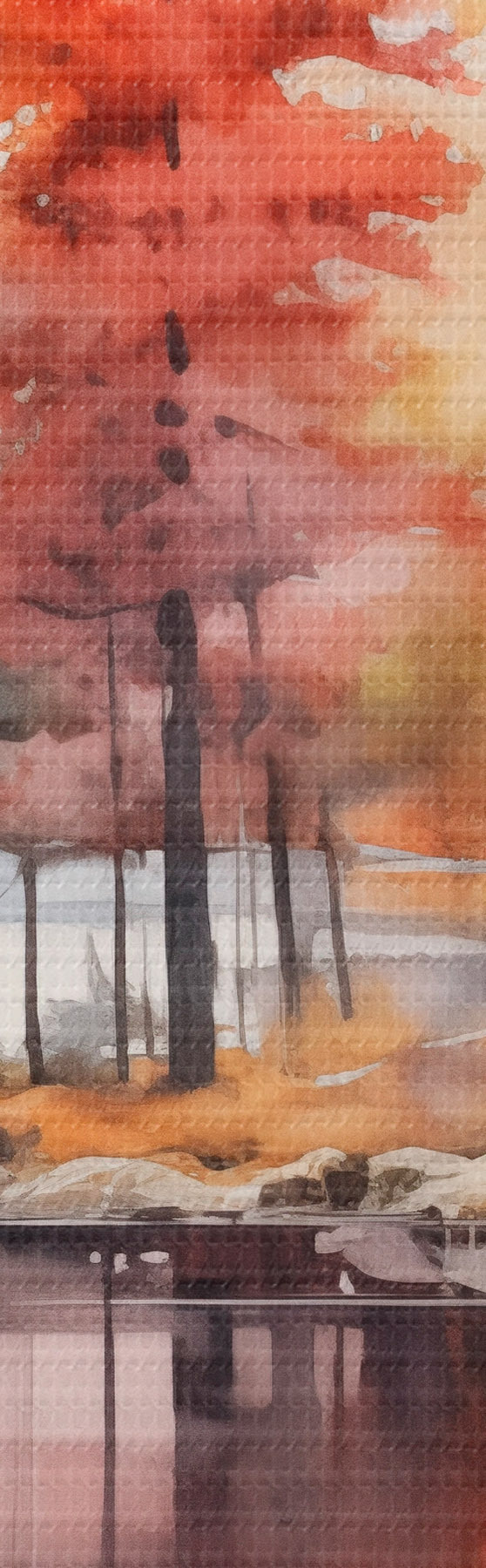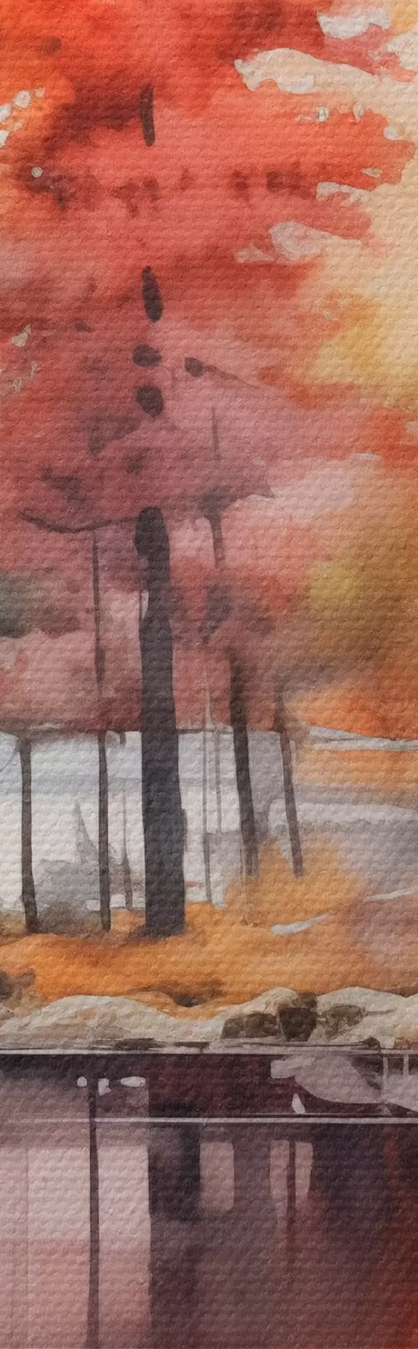 Bild Aquarellartige Landschaft mit einem See, umgeben von Bäumen in leuchtenden Herbstfarben Nr r42727