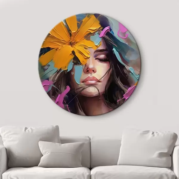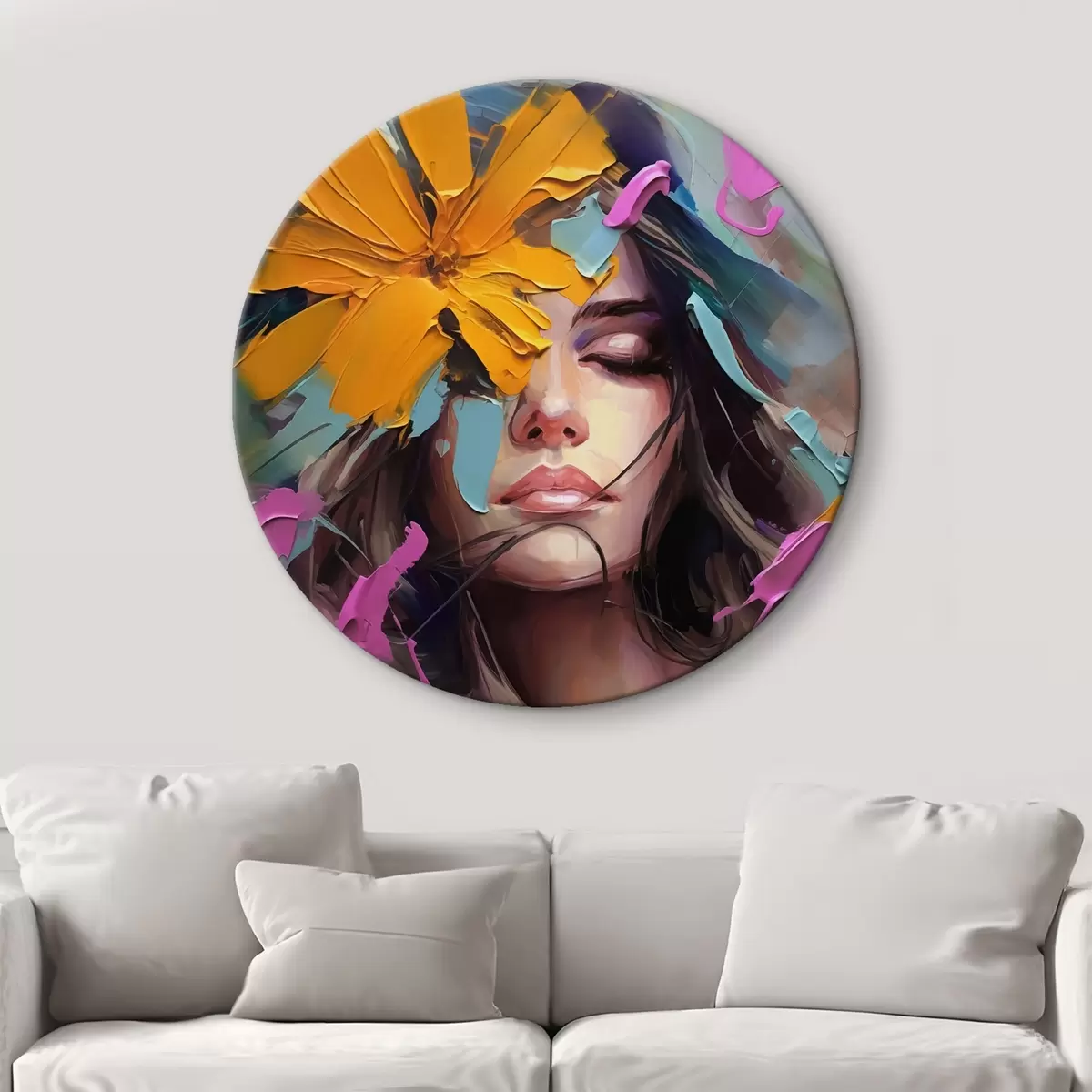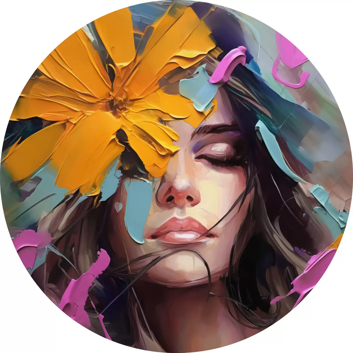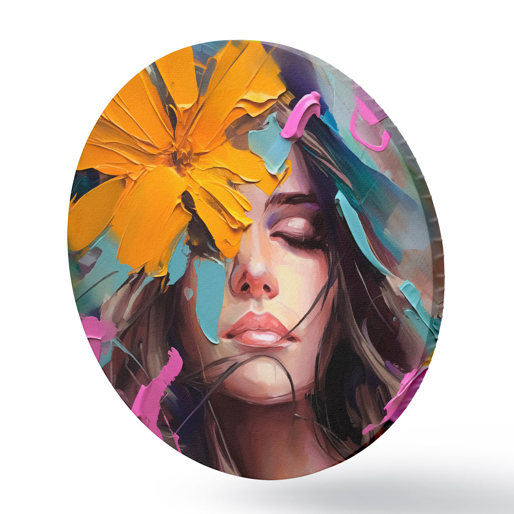 Runde Gemälde Abstraktes Porträt eines Mädchens mit einer Blume r42748