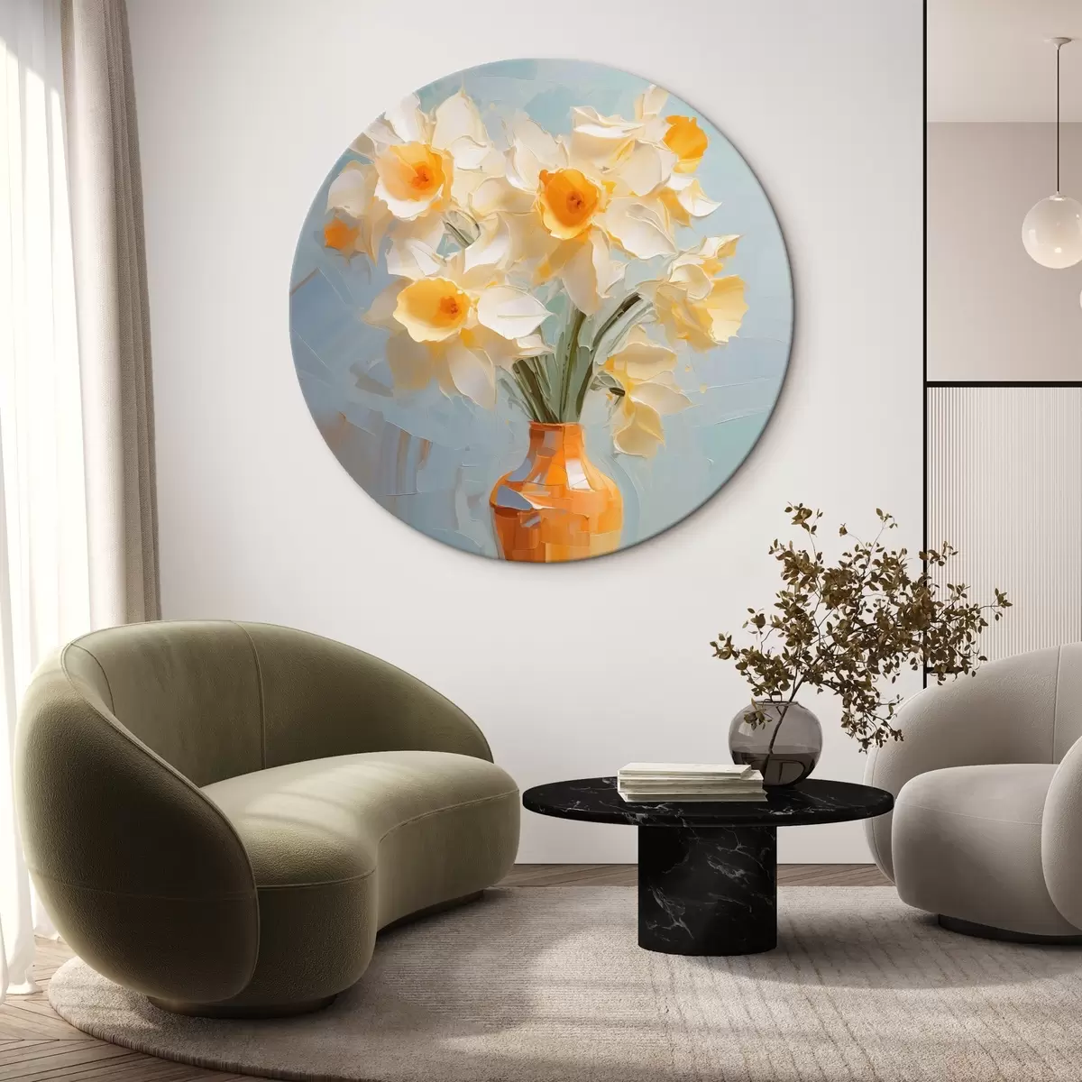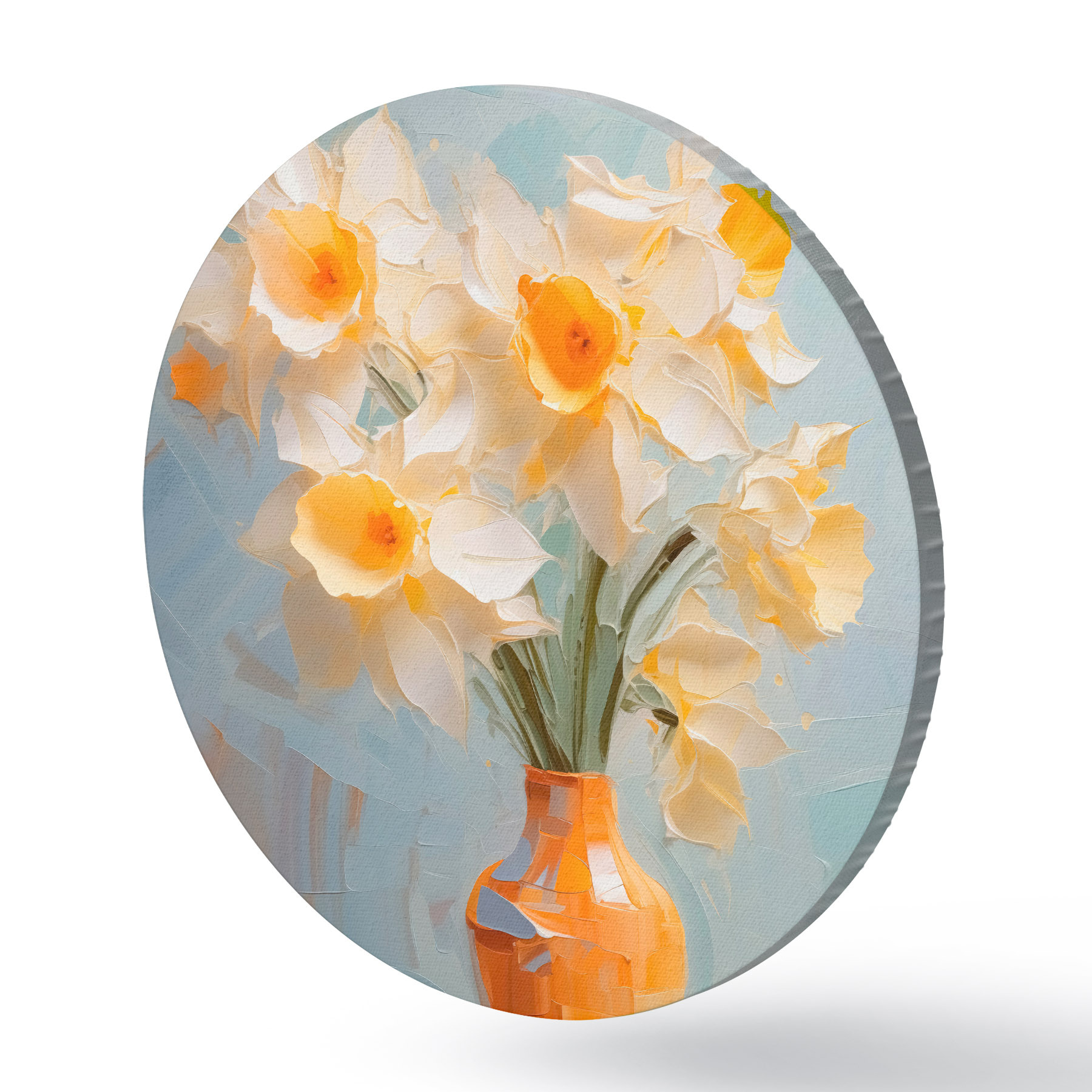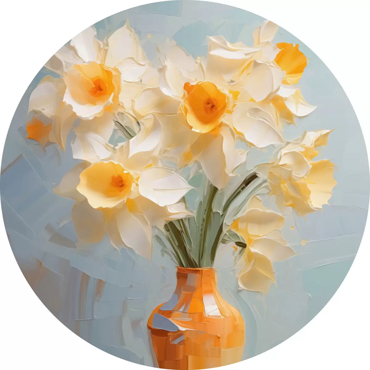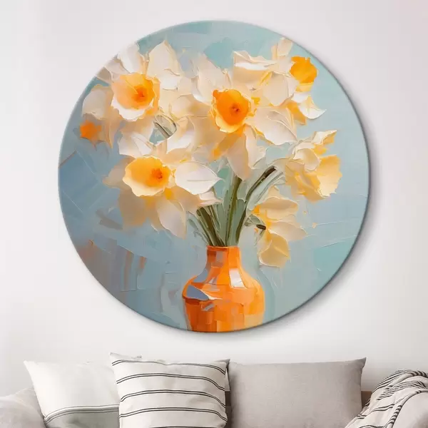 Runde Gemälde Blumenstrauß von Narzissen in einer Vase Nachahmung der Malerei r42749