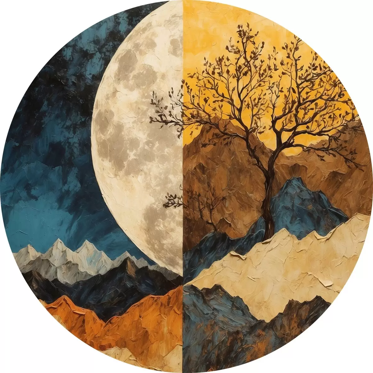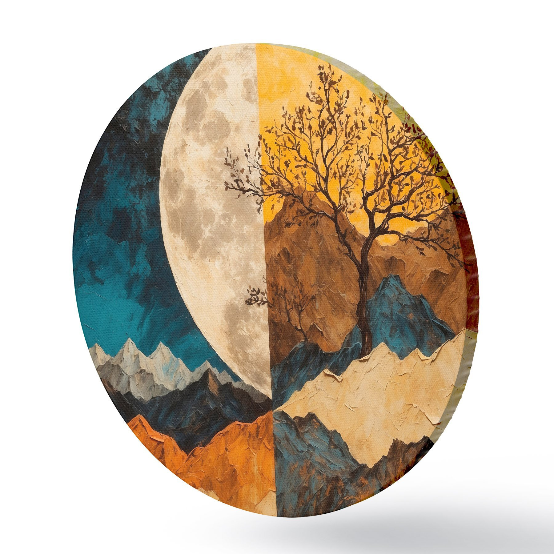 Runde Gemälde Buntes Gebirge auf Mondhintergrund in Acrylmalerei rtyle r42770