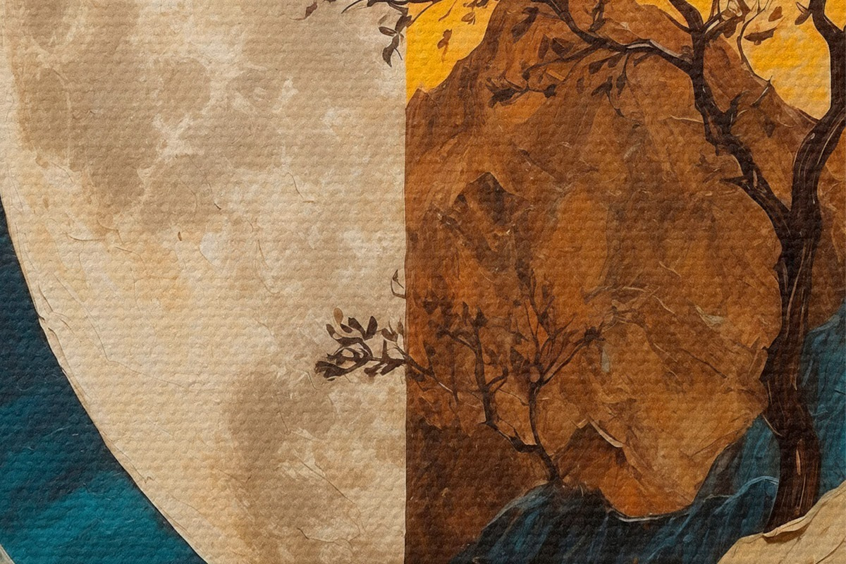 Bild Buntes Gebirge auf Mondhintergrund in Acrylmalerei rtyle Nr r42770