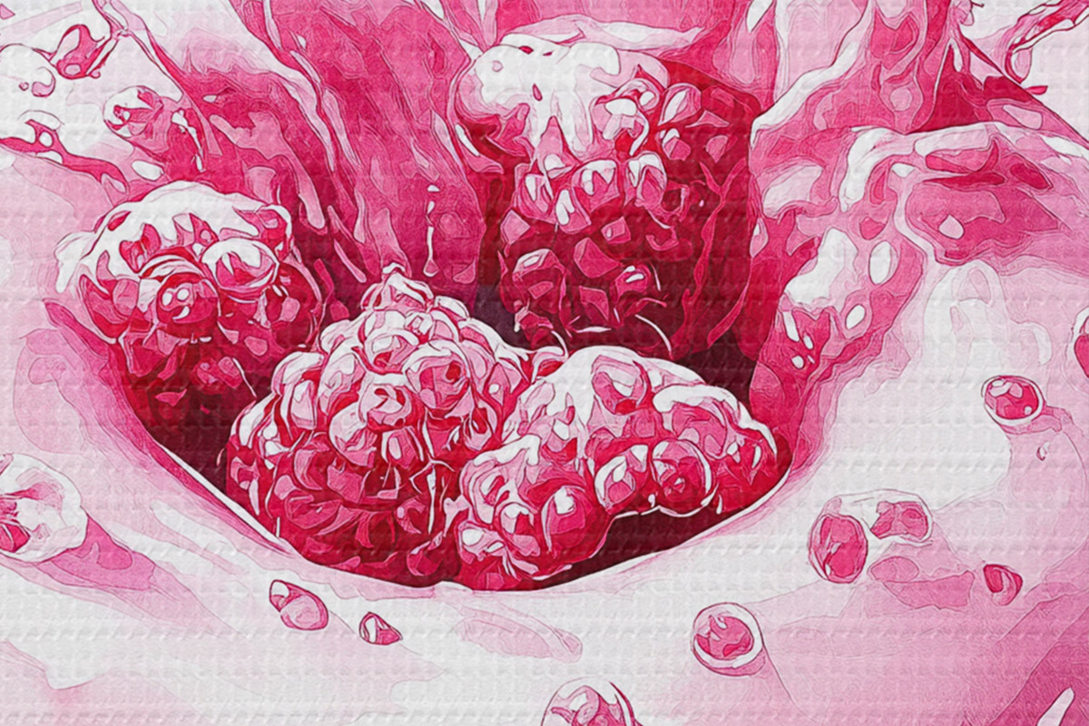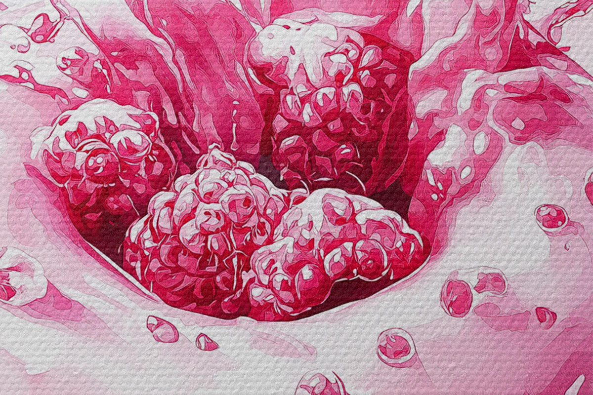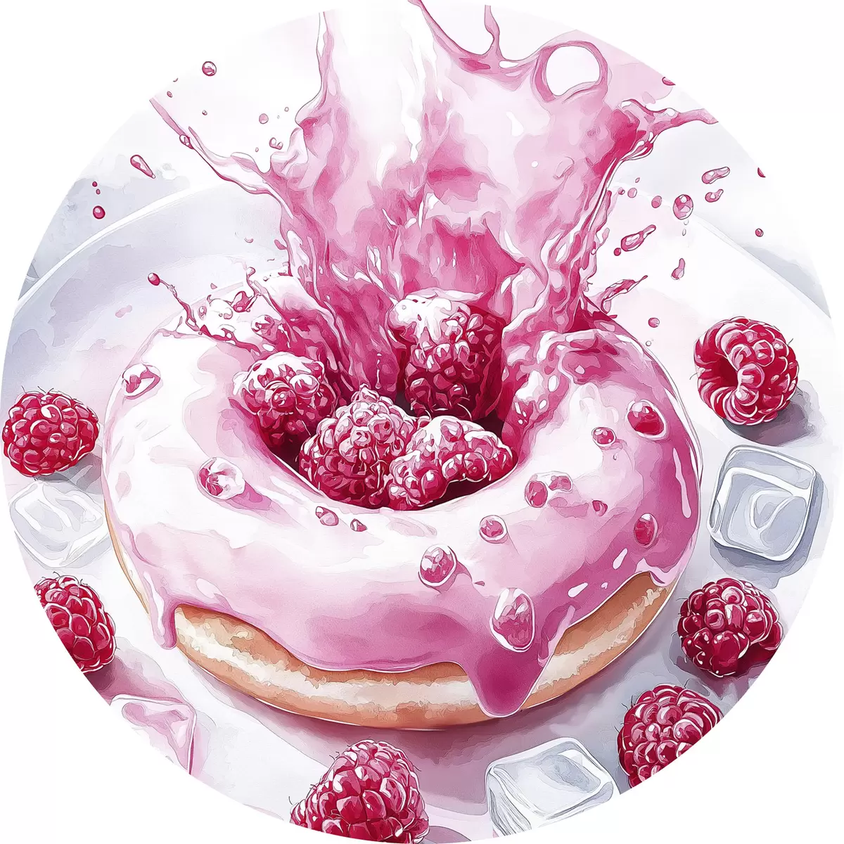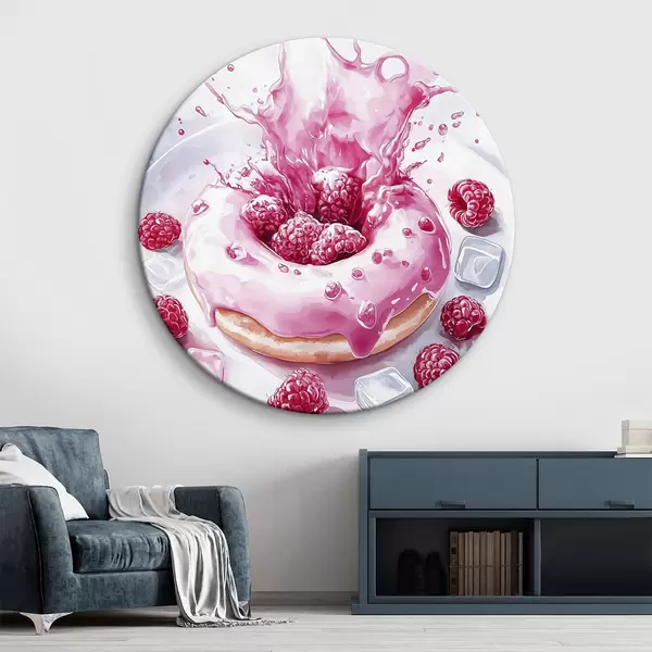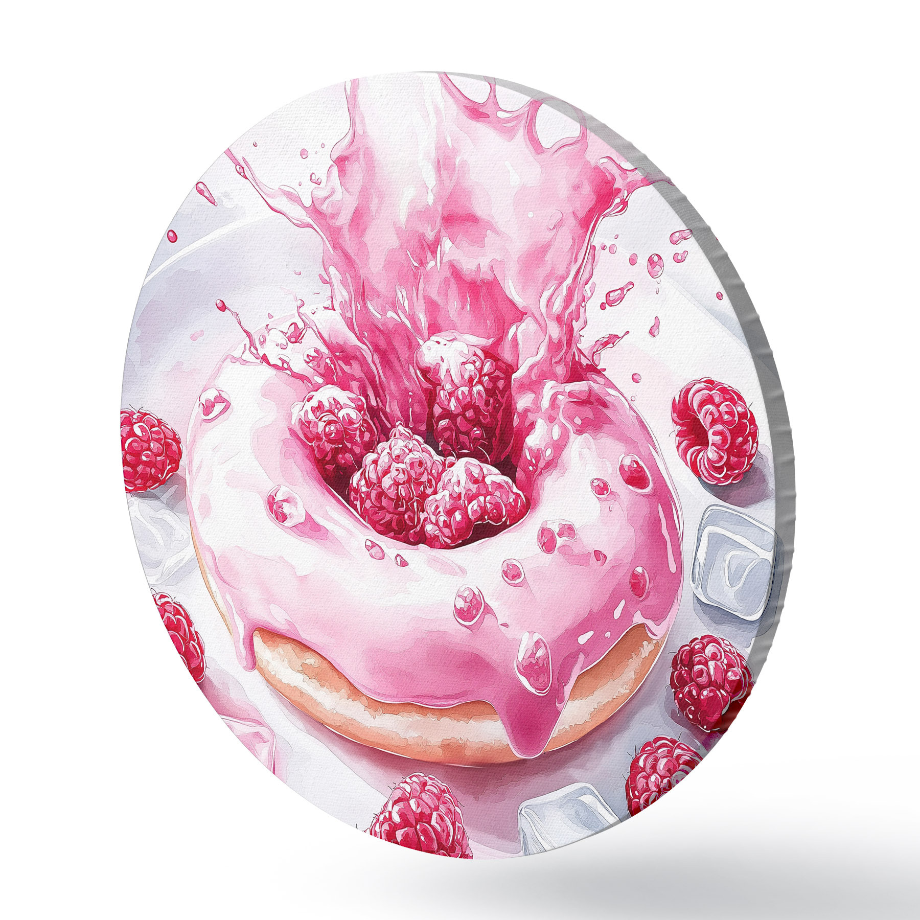 Runde Gemälde Leckerer Donut auf dem Teller, prickelnde Sahne, Himbeeren, Eis r42788