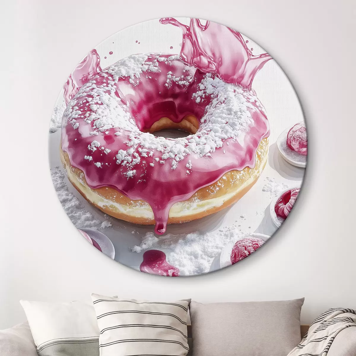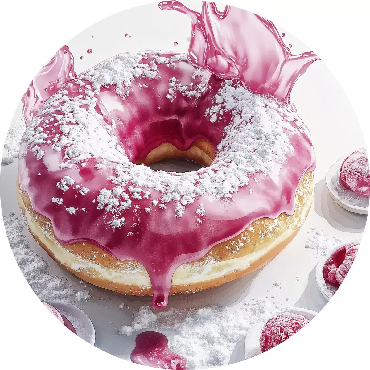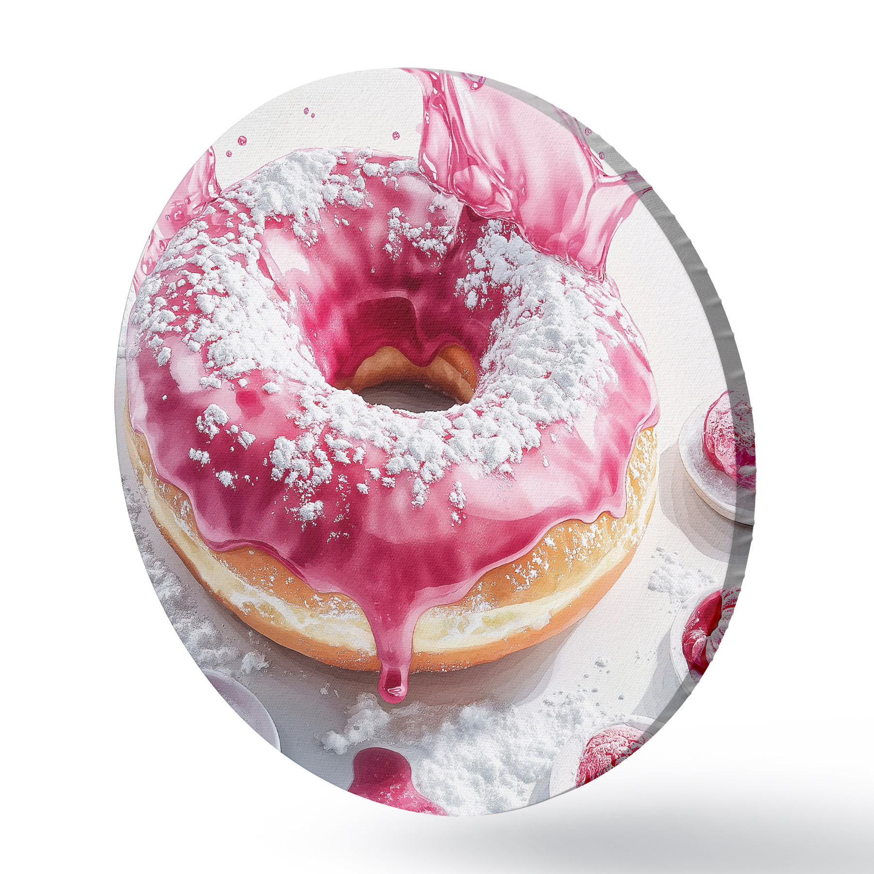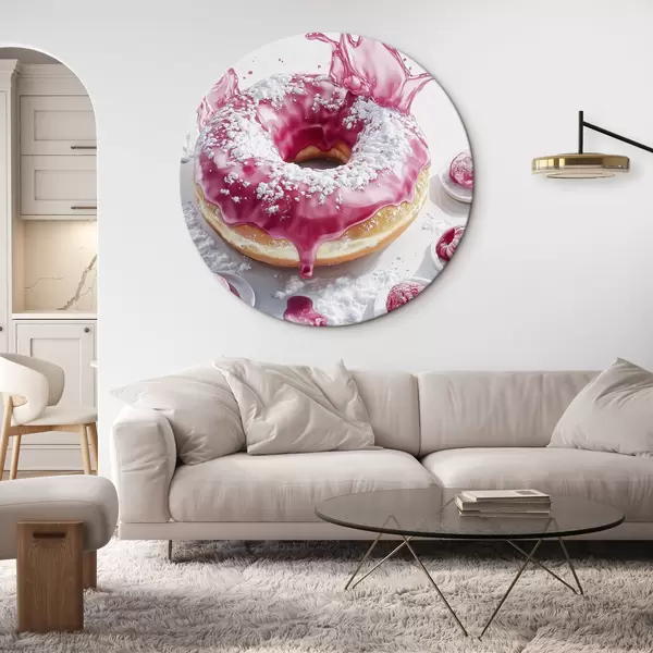 Runde Gemälde Realistischer Donut mit Beeren und rosa Glasur r42790