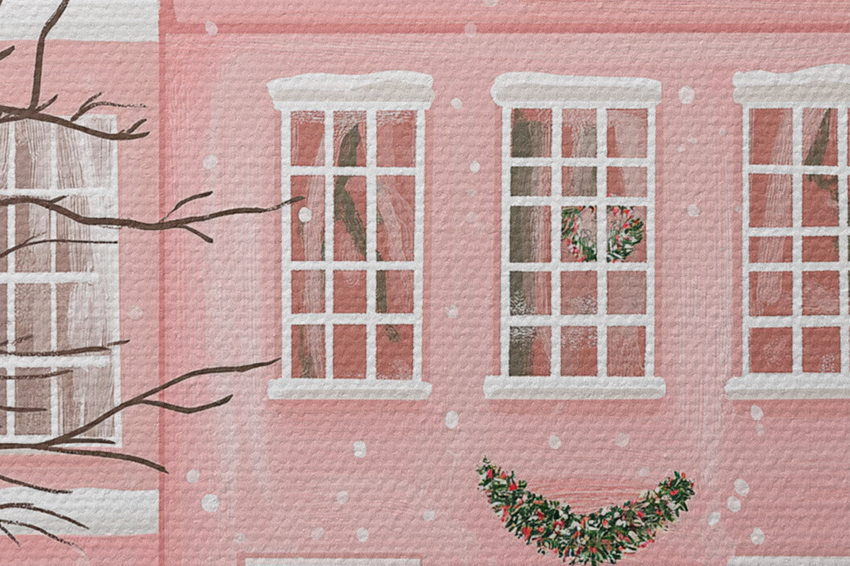 Bild Hübsche rosa Häuser, Kiefern, Winterlandschaften Nr r42791
