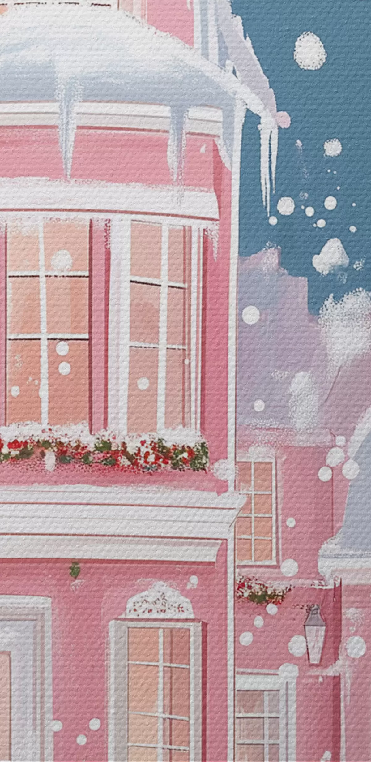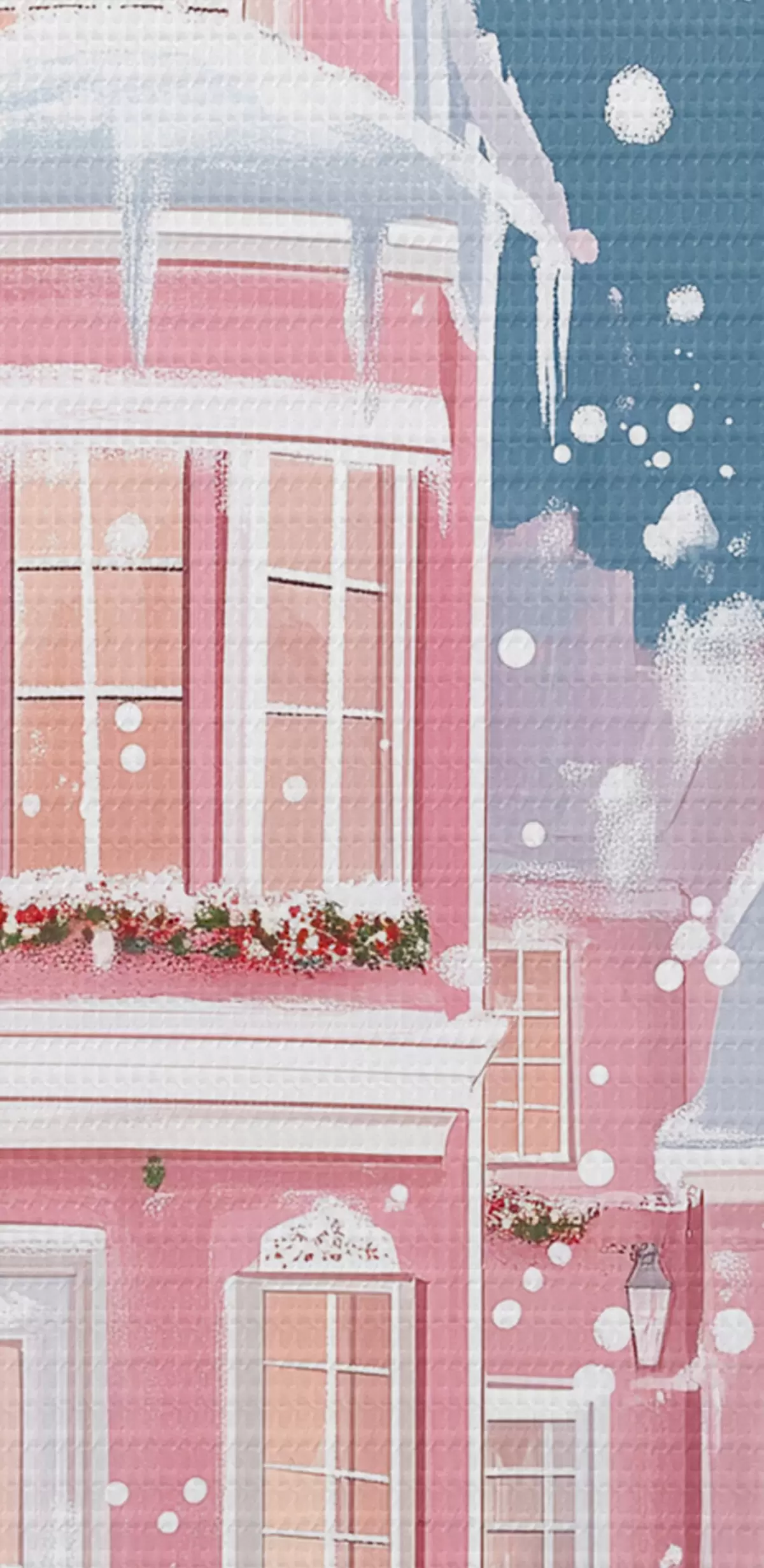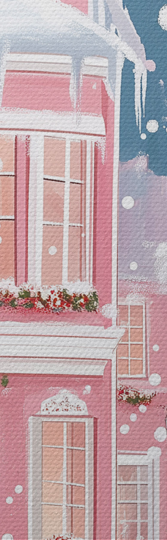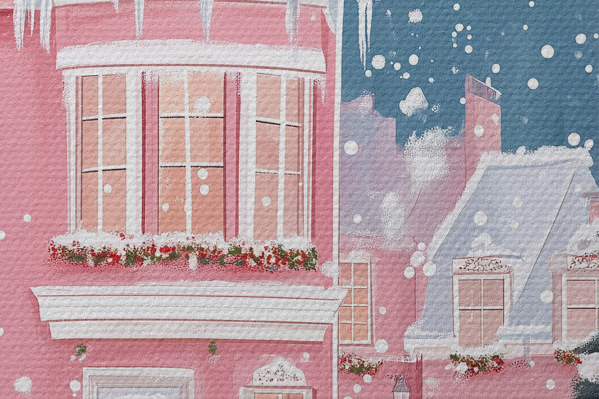 Bild Winterstadt mit rosa Häusern, Weihnachtsbäumen und Schneeflocken Nr r42792