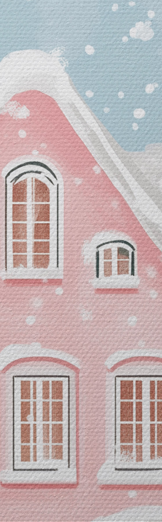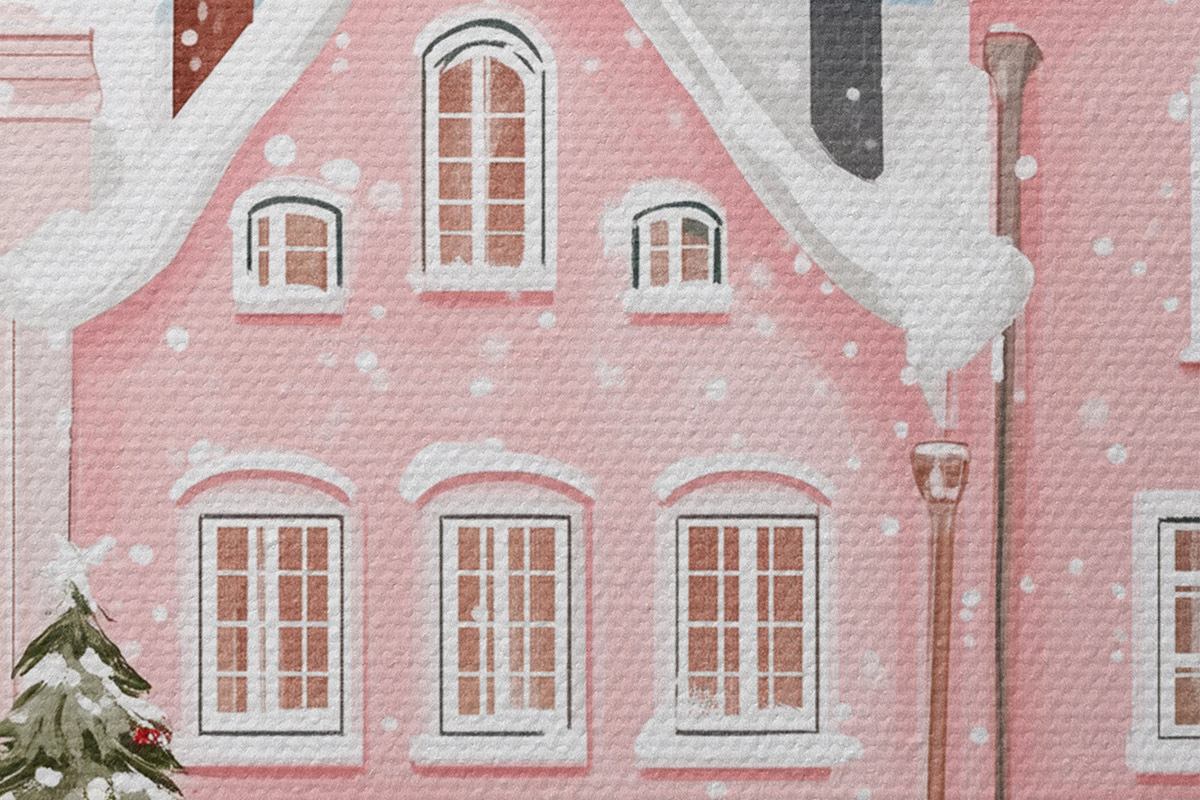 Bild Schöne Stadt mit niedlichen rosa Häusern, Winterästhetik, Schneeflocken Nr r42793