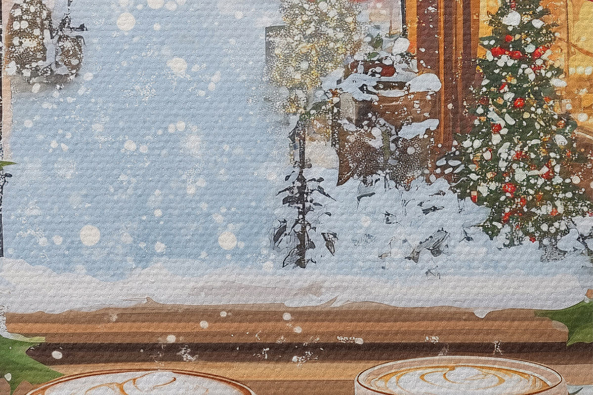 Bild Gemütliches Wintercafé, Tassen Kaffee, Acryl-Stil, alte Stadtarchitektur Nr r42795