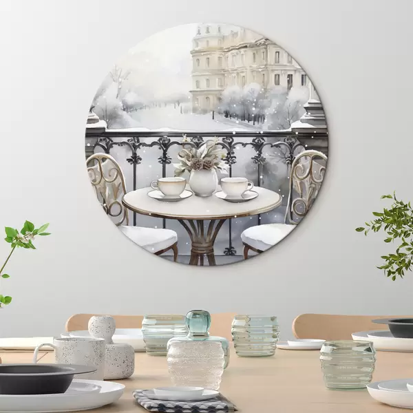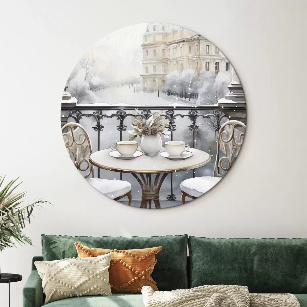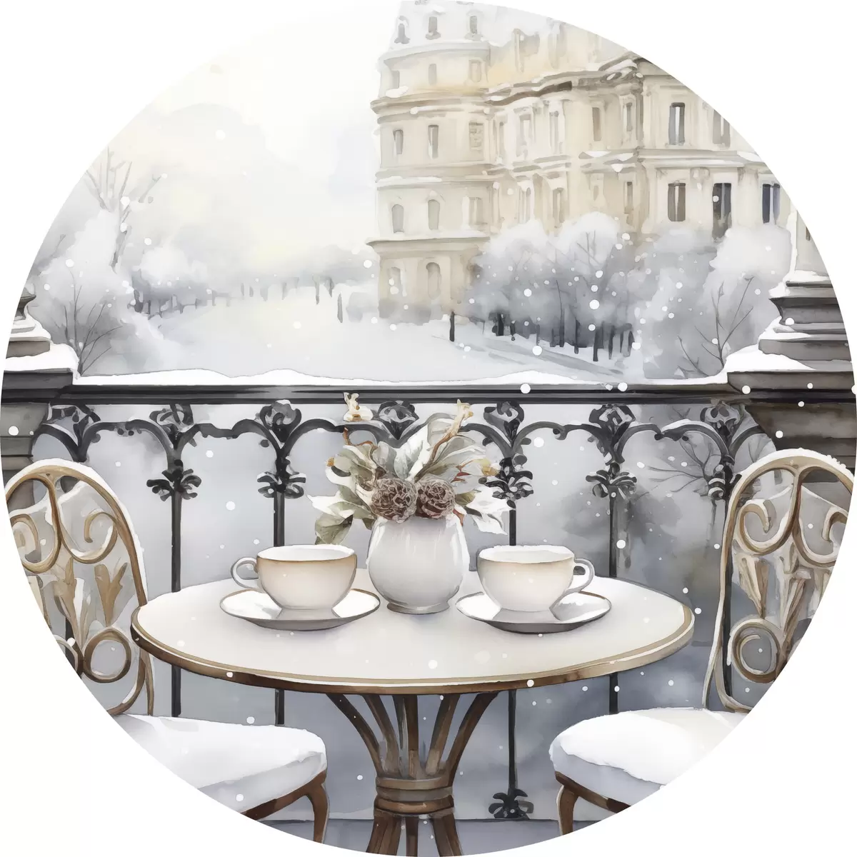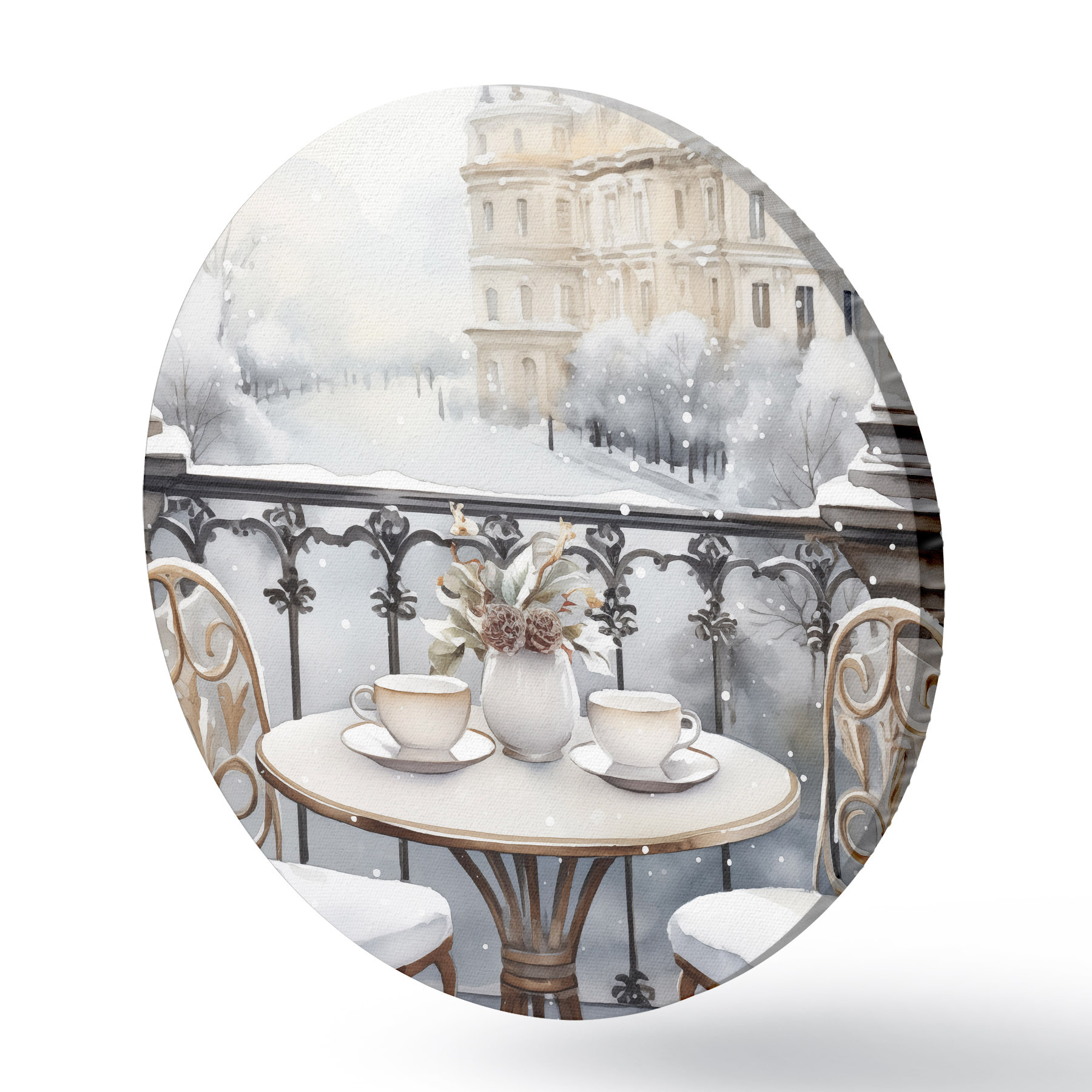 Runde Gemälde Schönes Café, Tassen Tee, böhmischer Stil, Aquarell, Winterästhetik r42796